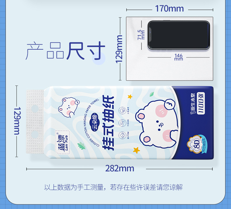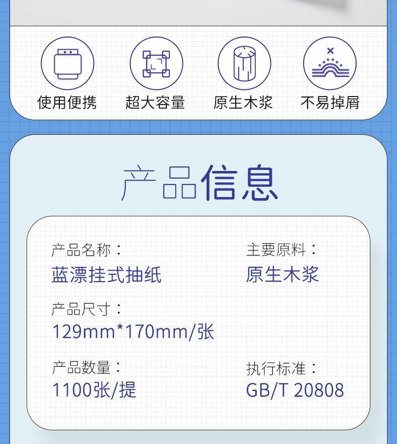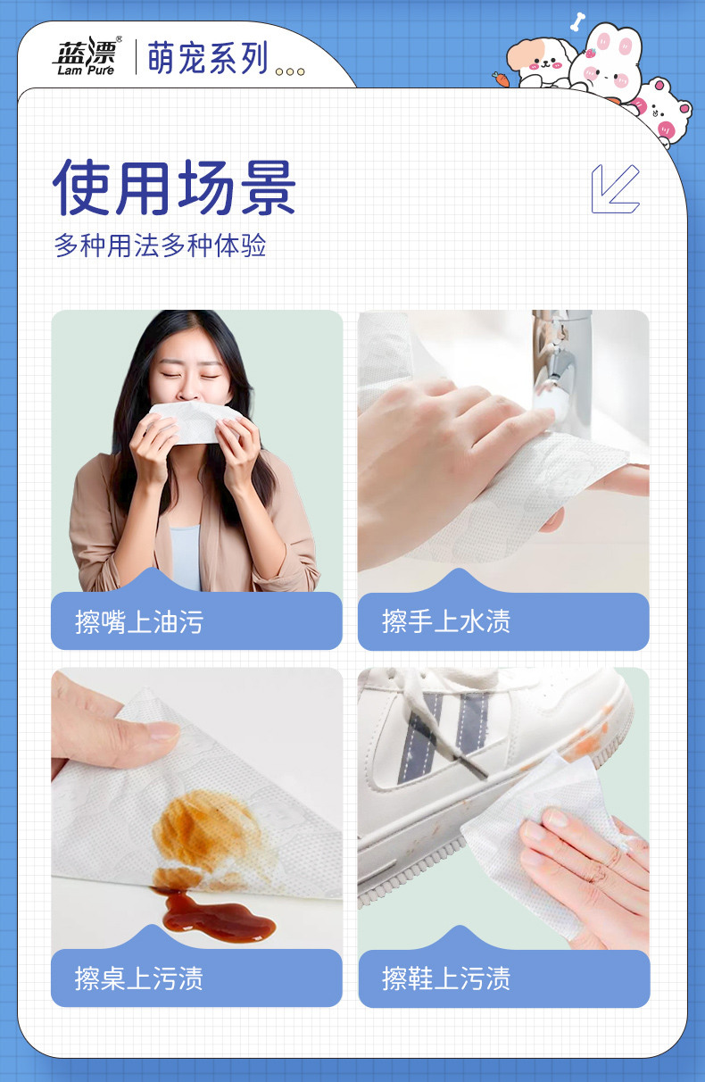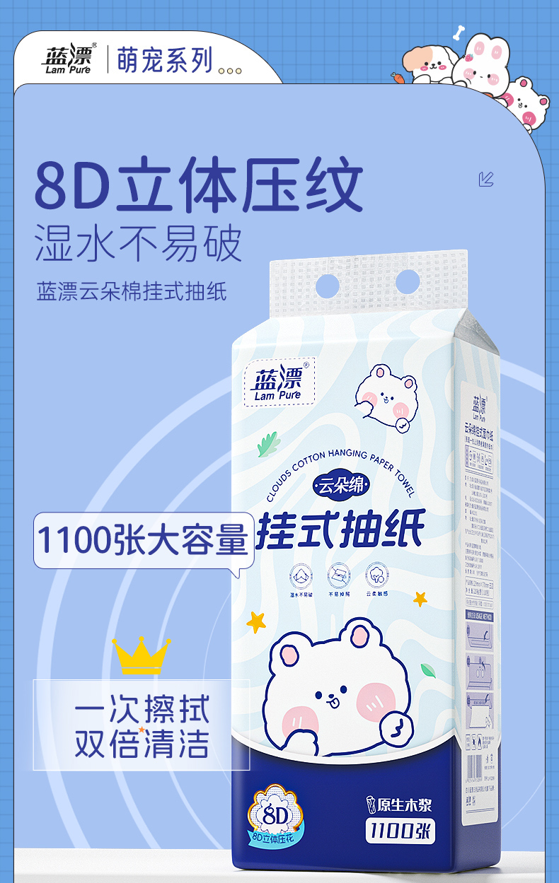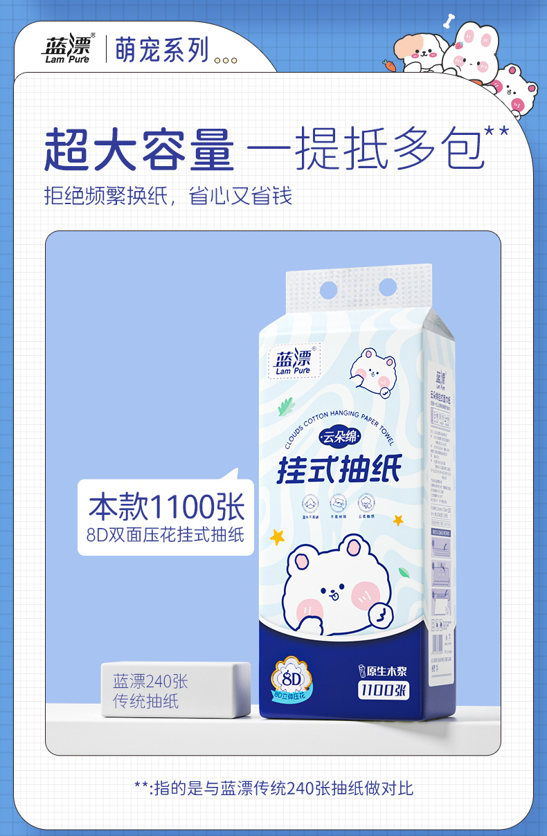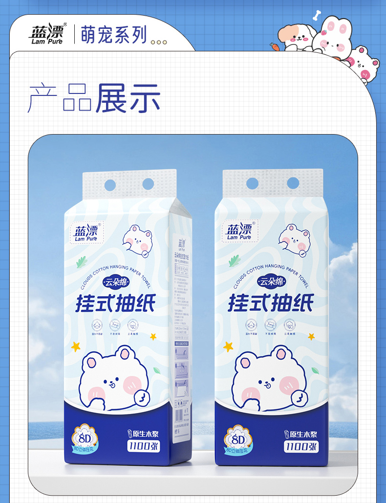 【自营】蓝漂萌宠系列白色悬挂式纸巾抽纸底部挂抽纸餐巾纸卫生纸巾3提 LP-52099