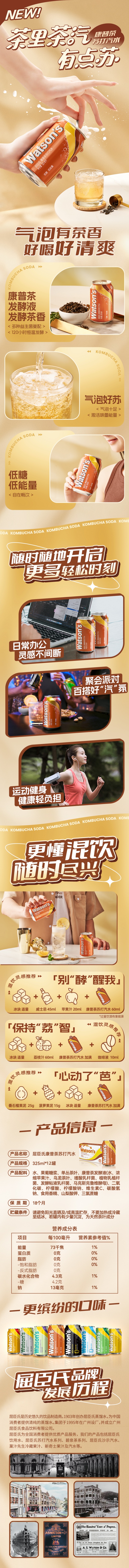 屈臣氏苏打汽水康普茶味气泡水325ml*8罐