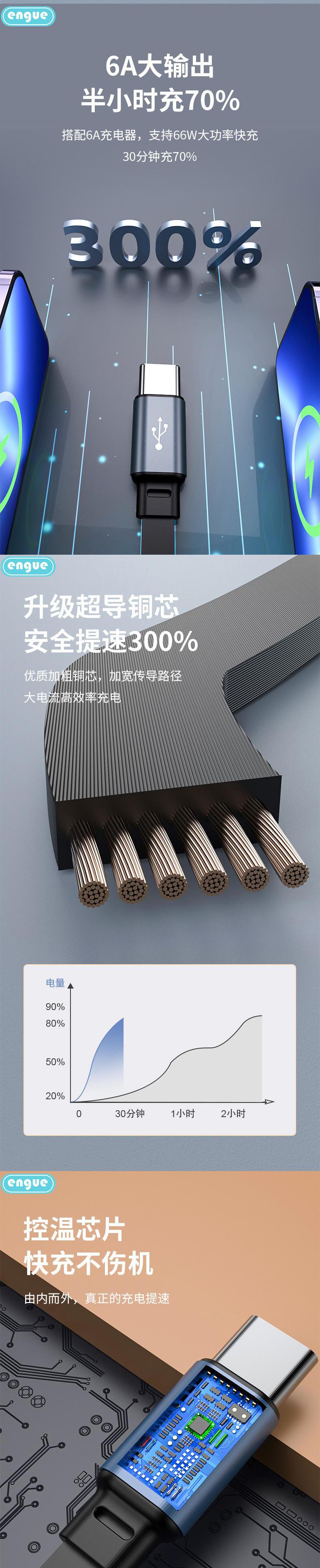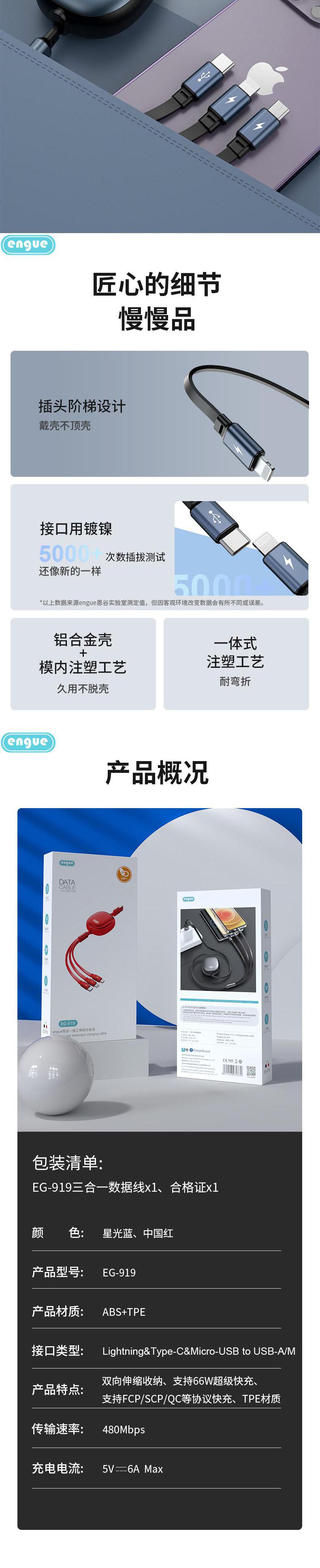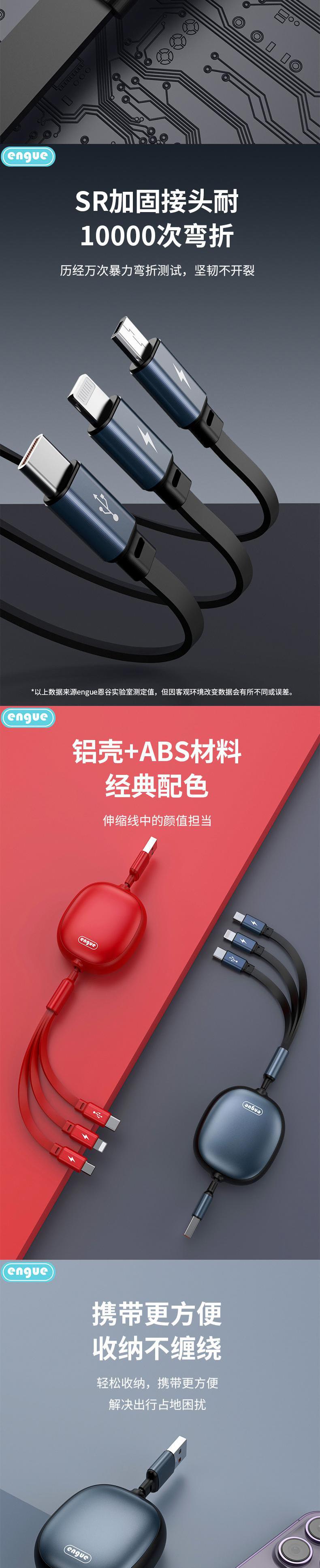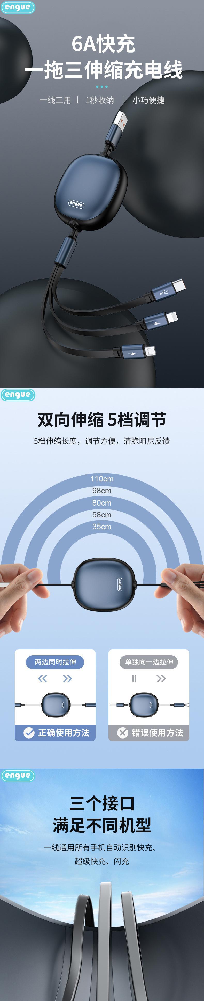【自营】engue恩谷 66W一拖三快充伸缩充电线EG-919自由伸缩收纳不乱防缠绕
