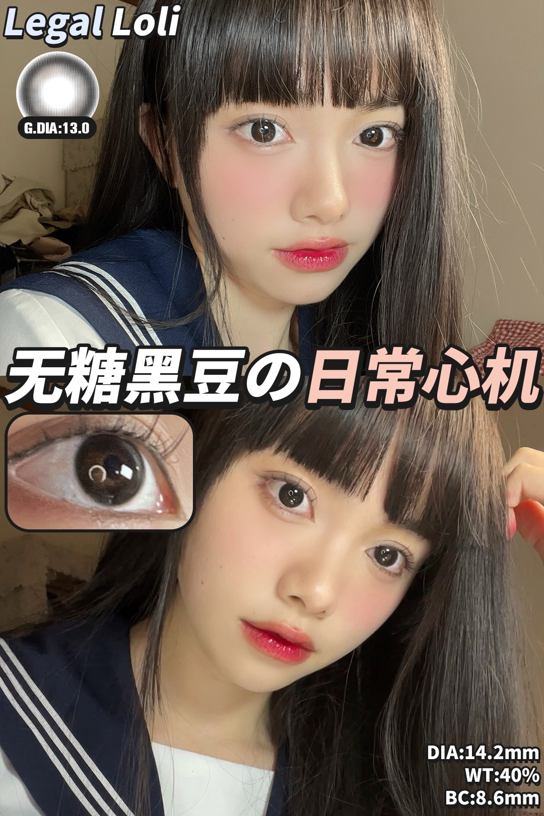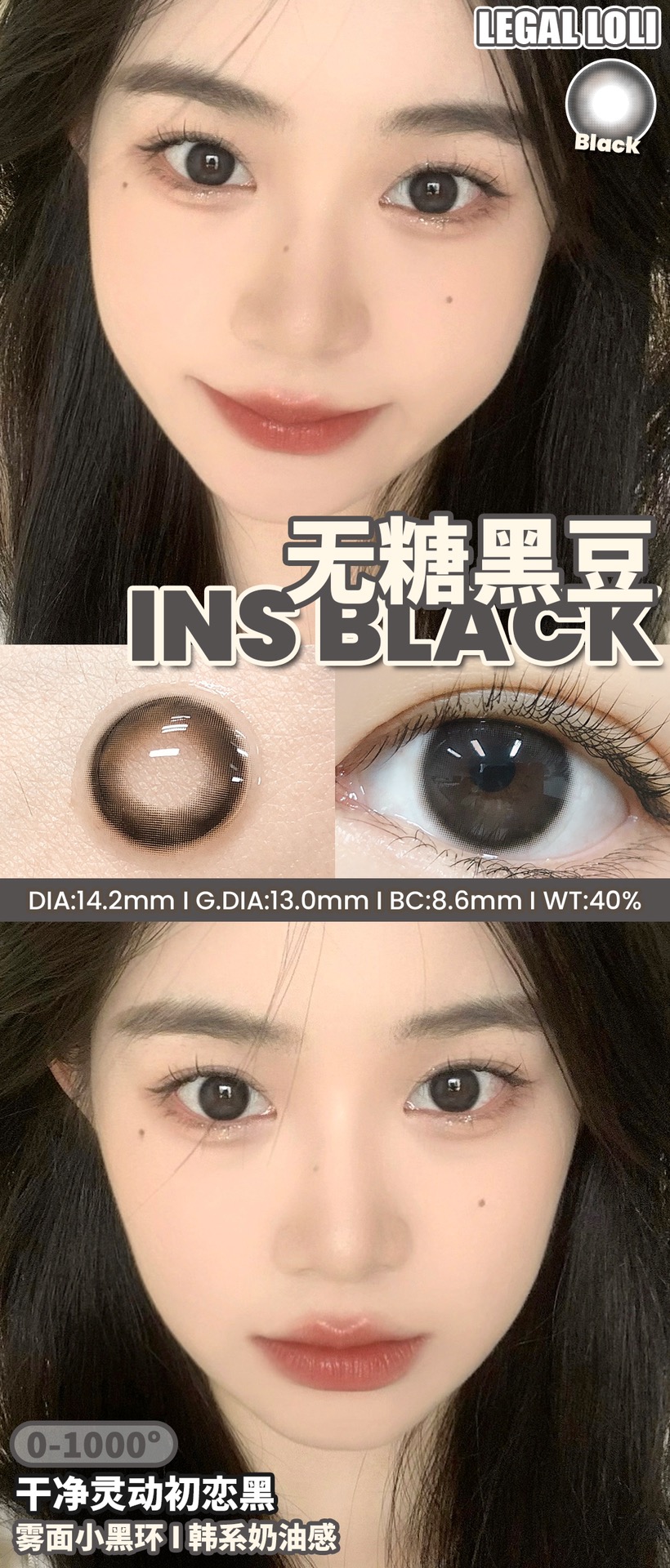 【平价年抛】无糖黑豆Legal loli | 中直径14.2 着色13.0 | 【同品牌多副美瞳更划算,选款色板在详情页内】 | 黑色美瞳