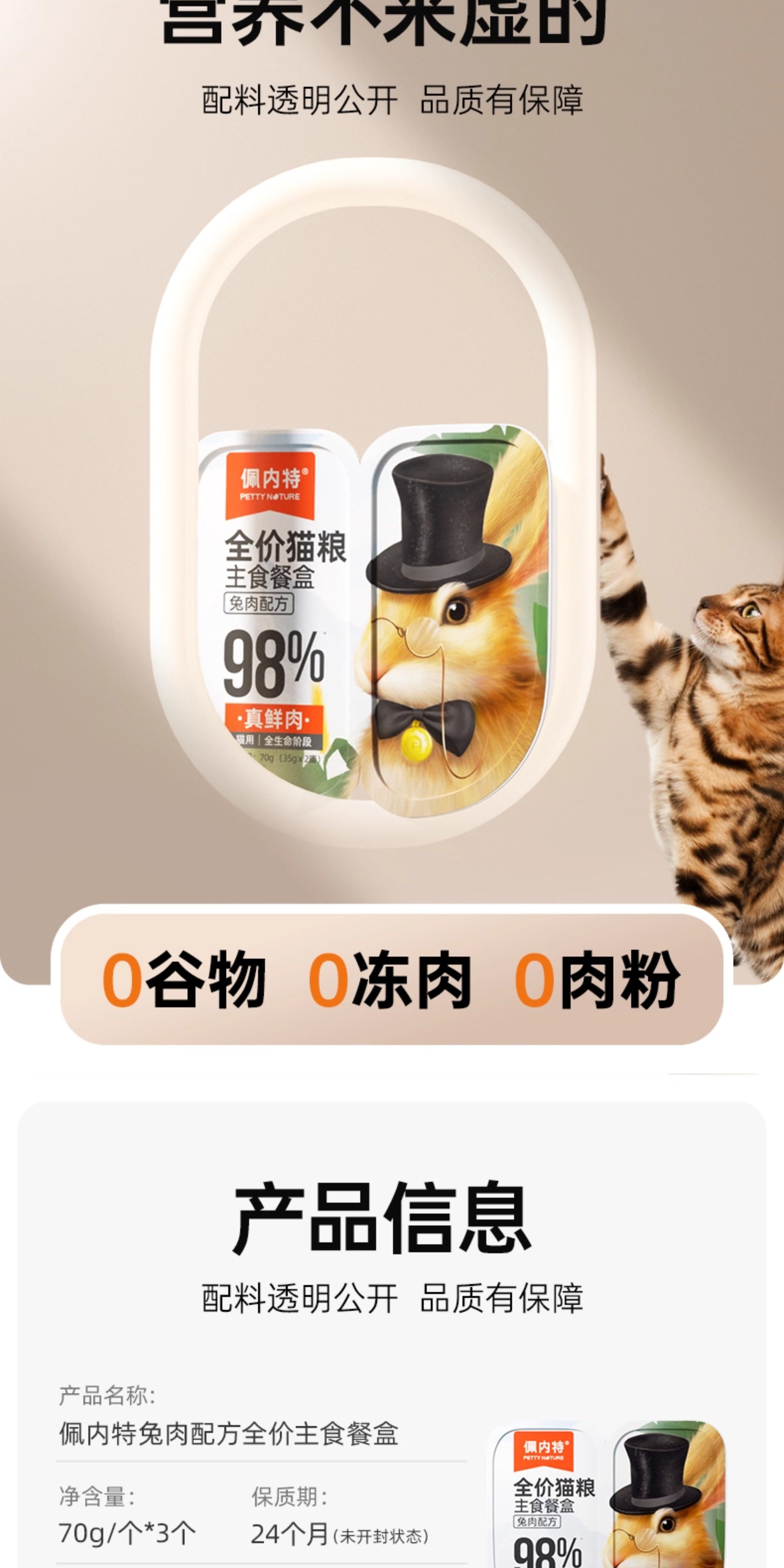 佩内特 全价猫粮主食餐盒 兔肉配方70g*3 宠物食品