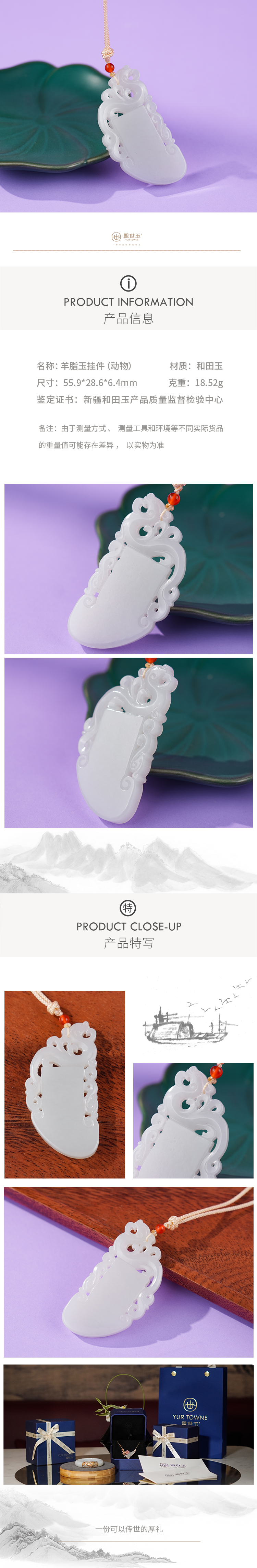 新疆国玉盟世玉羊脂玉挂件(动物)【带证书·顺丰物流】