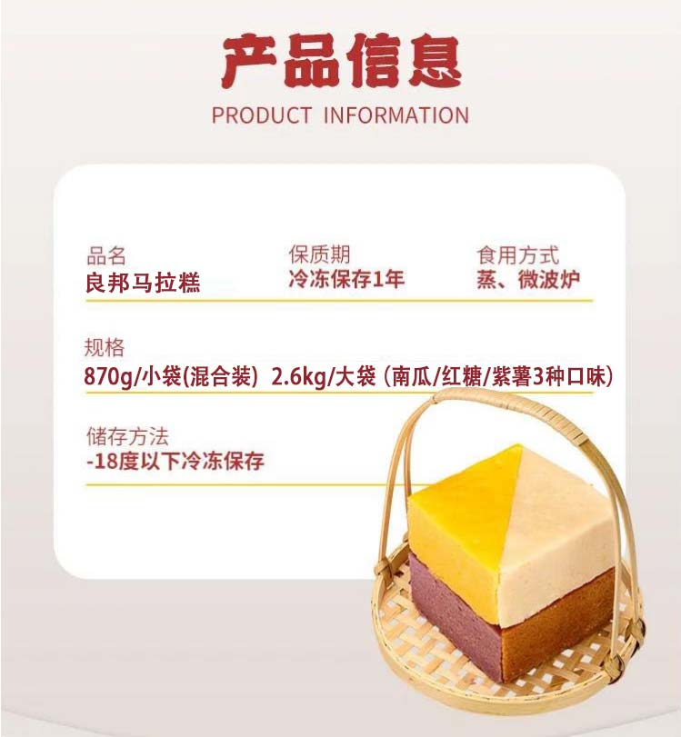 良邦马拉糕(红糖发糕/南瓜发糕/紫薯发糕)2.6kg/袋 4袋/件