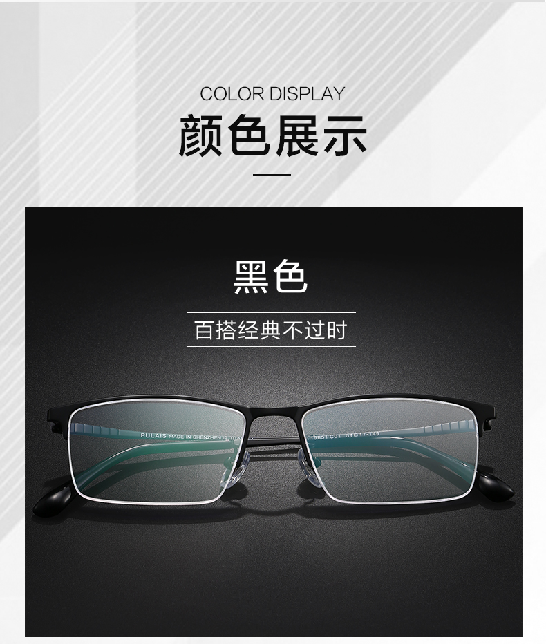 普莱斯光学镜框PT19651 商务经典 超轻钛架 经典半框 双色可选