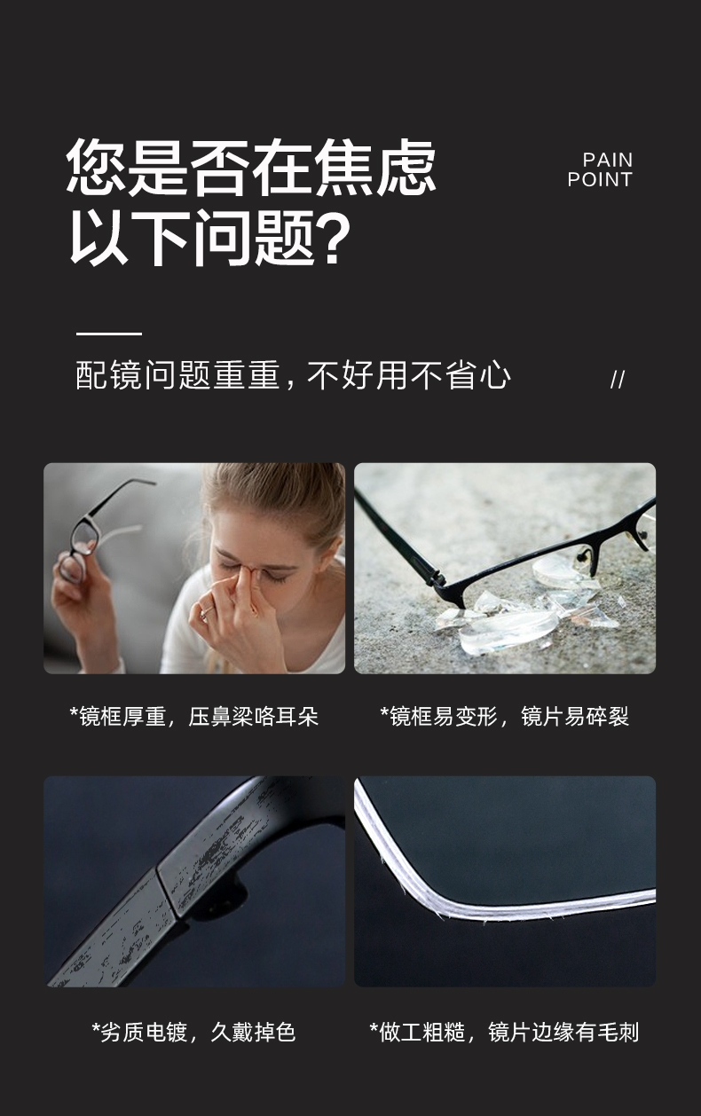 普莱斯PT11076 无框纯钛+板材 精细切割 时尚百搭不挑脸