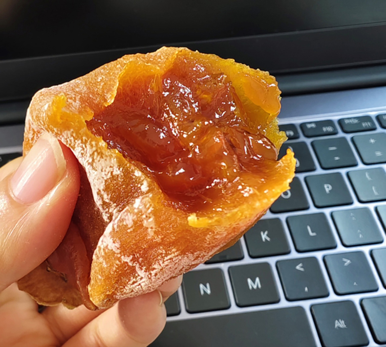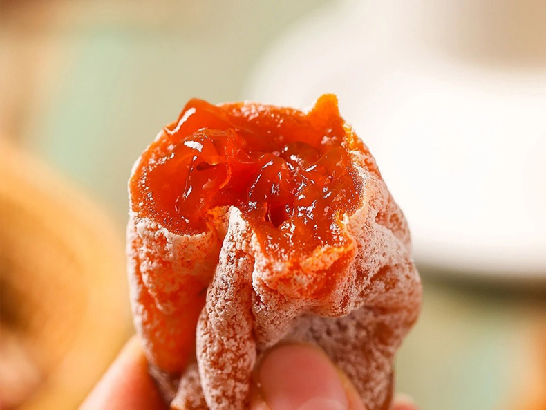 它融合了气候的馈赠与人的匠心,经慢晒糖化,外韧内软,溏心饱满却不流溢,口感层次丰富——初嚼如糯,细品如蜜,软韧交织,甜润入心。