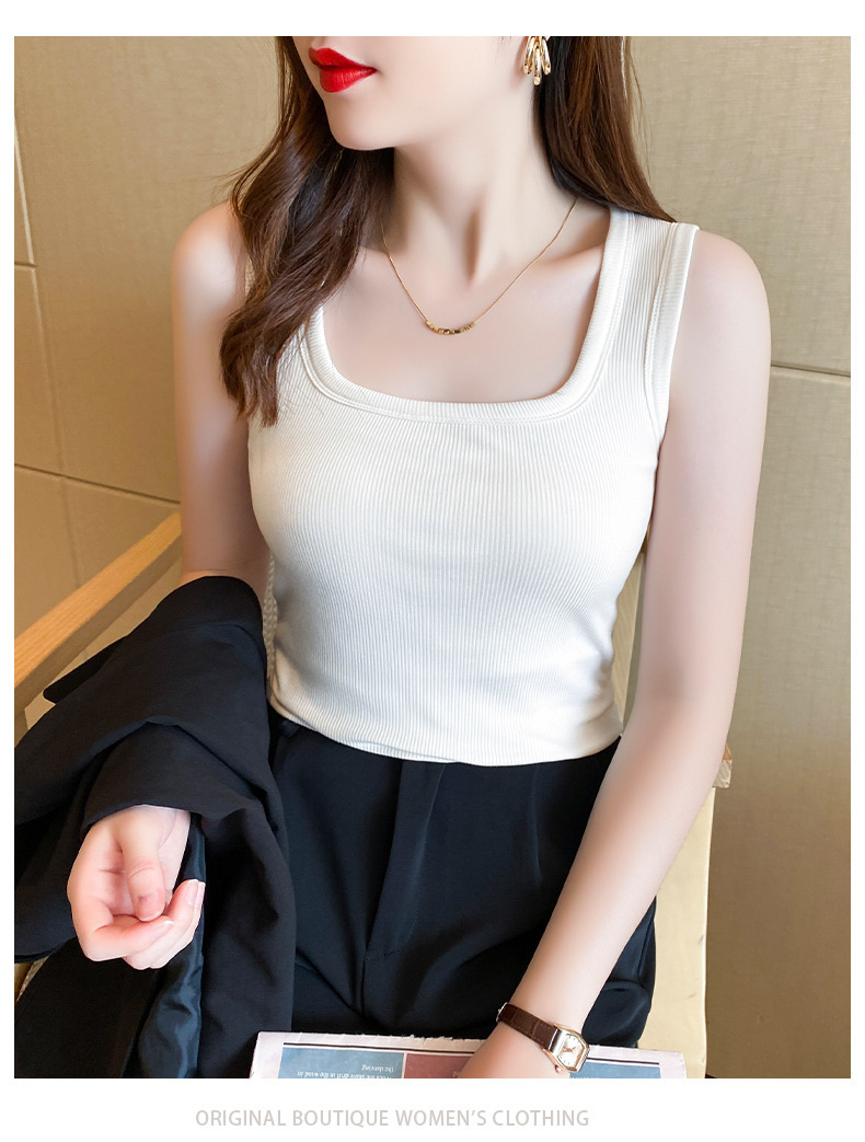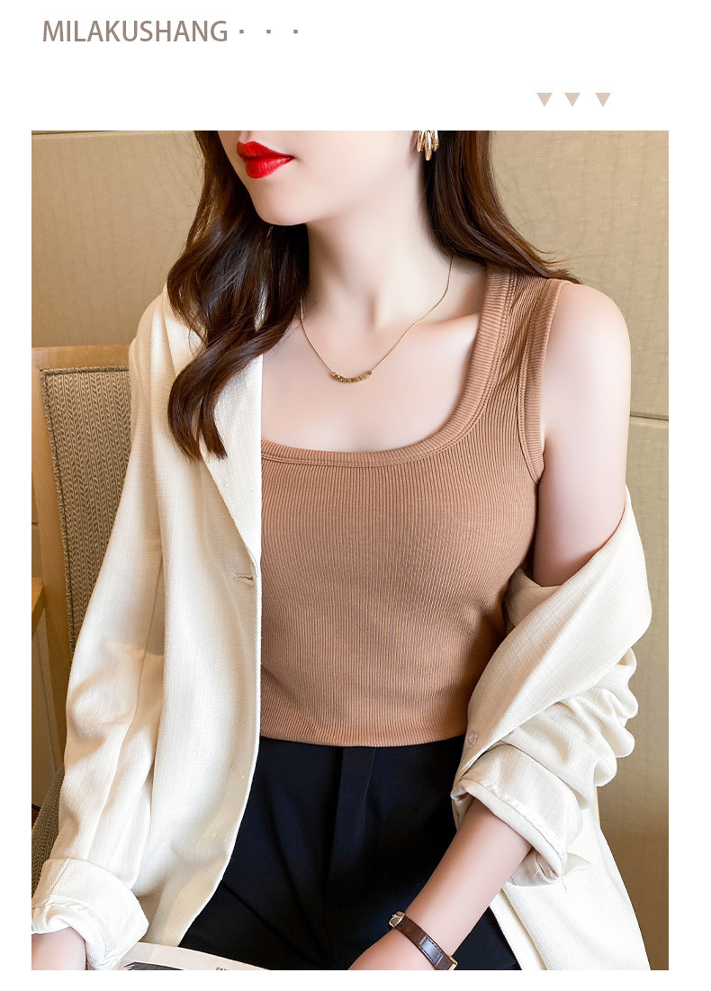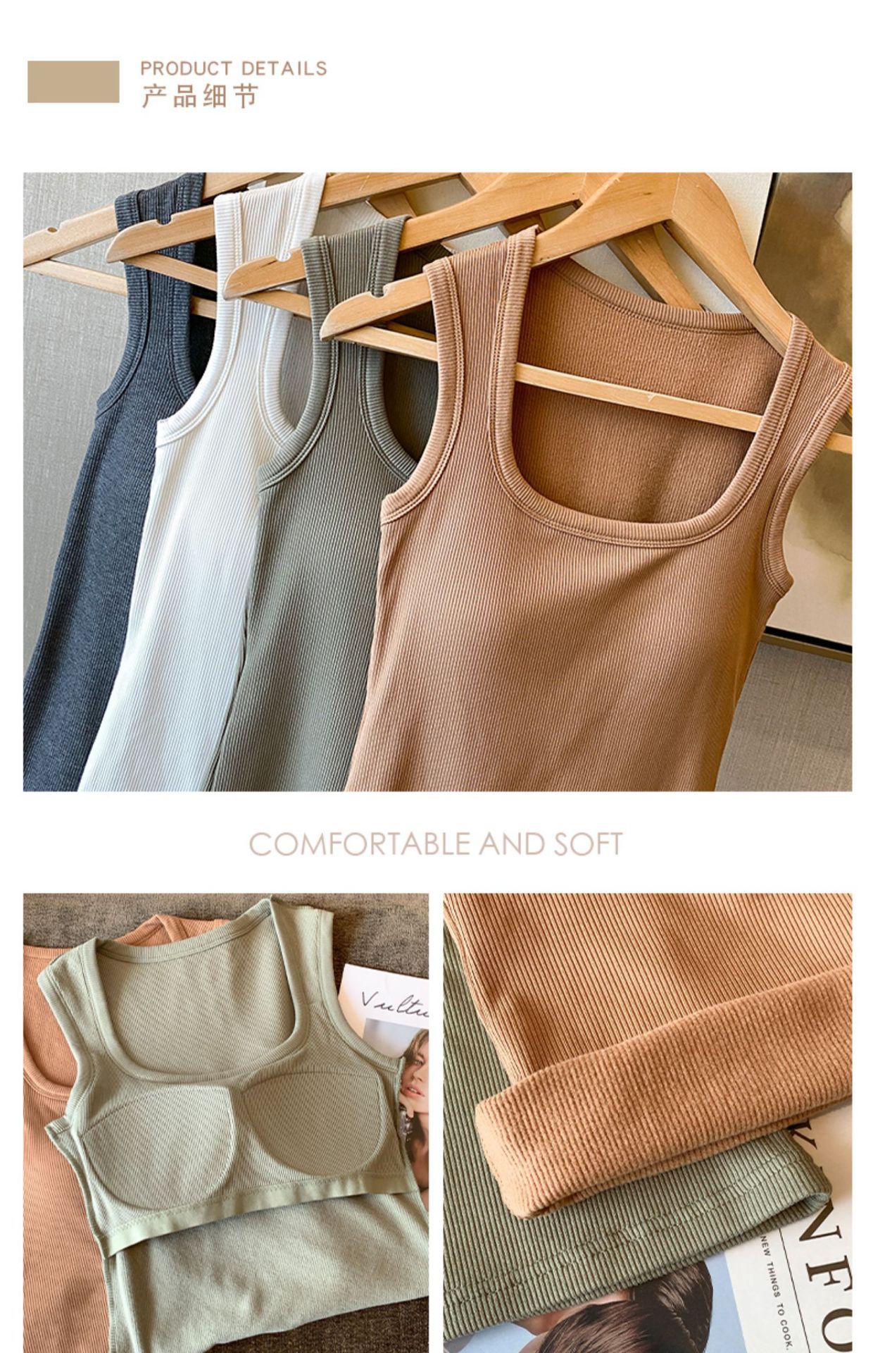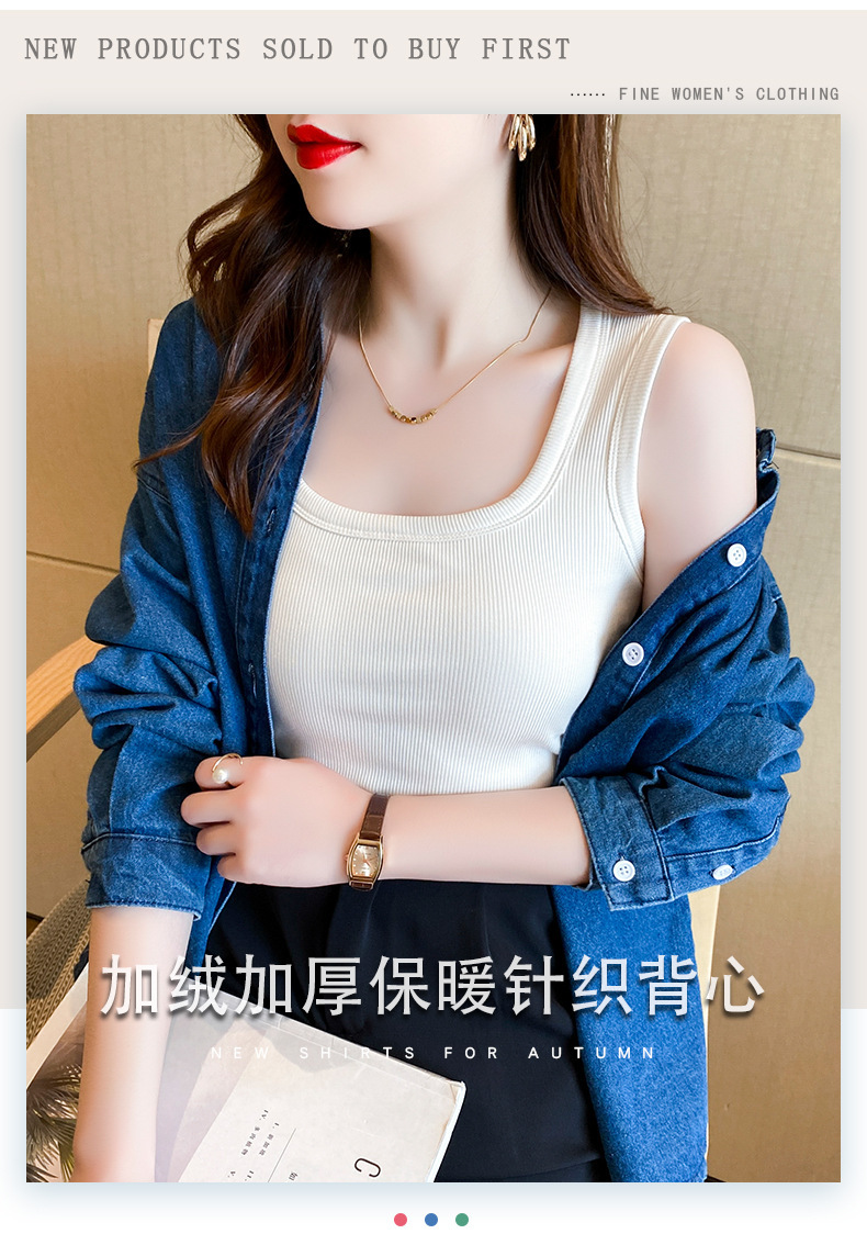 【暖心亲肤,舒适无束缚!】新款自带胸垫背心,无钢圈内衣,给你无束缚体验;穿出自信与性感,让你的胸部自带加厚一体胸垫,舒适而又保暖。复古大U领设计,百搭时尚,女士秋冬必备!