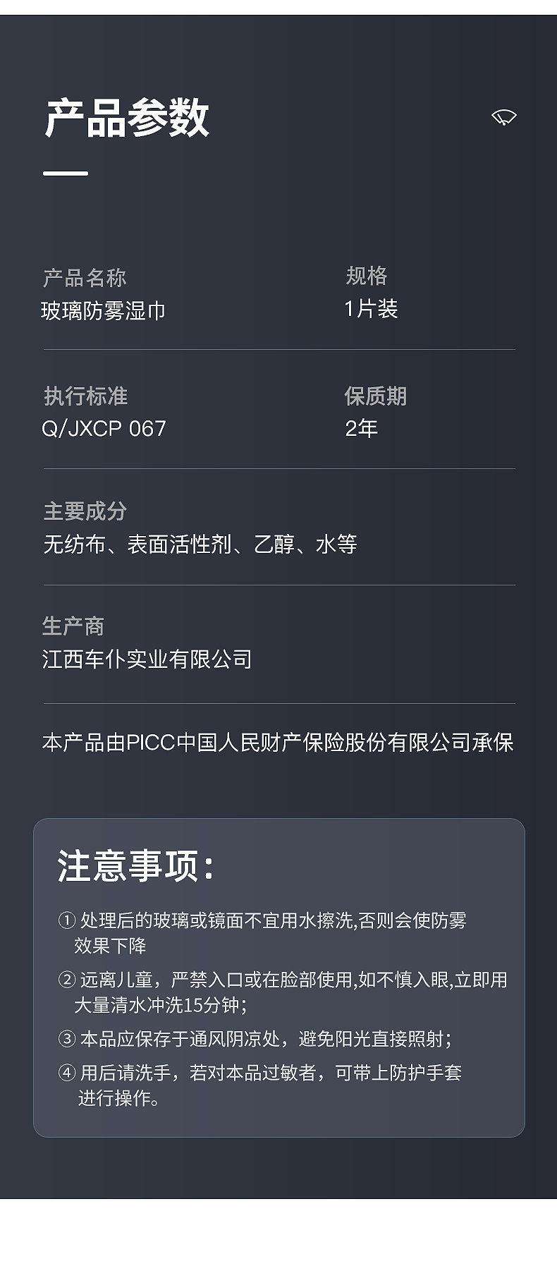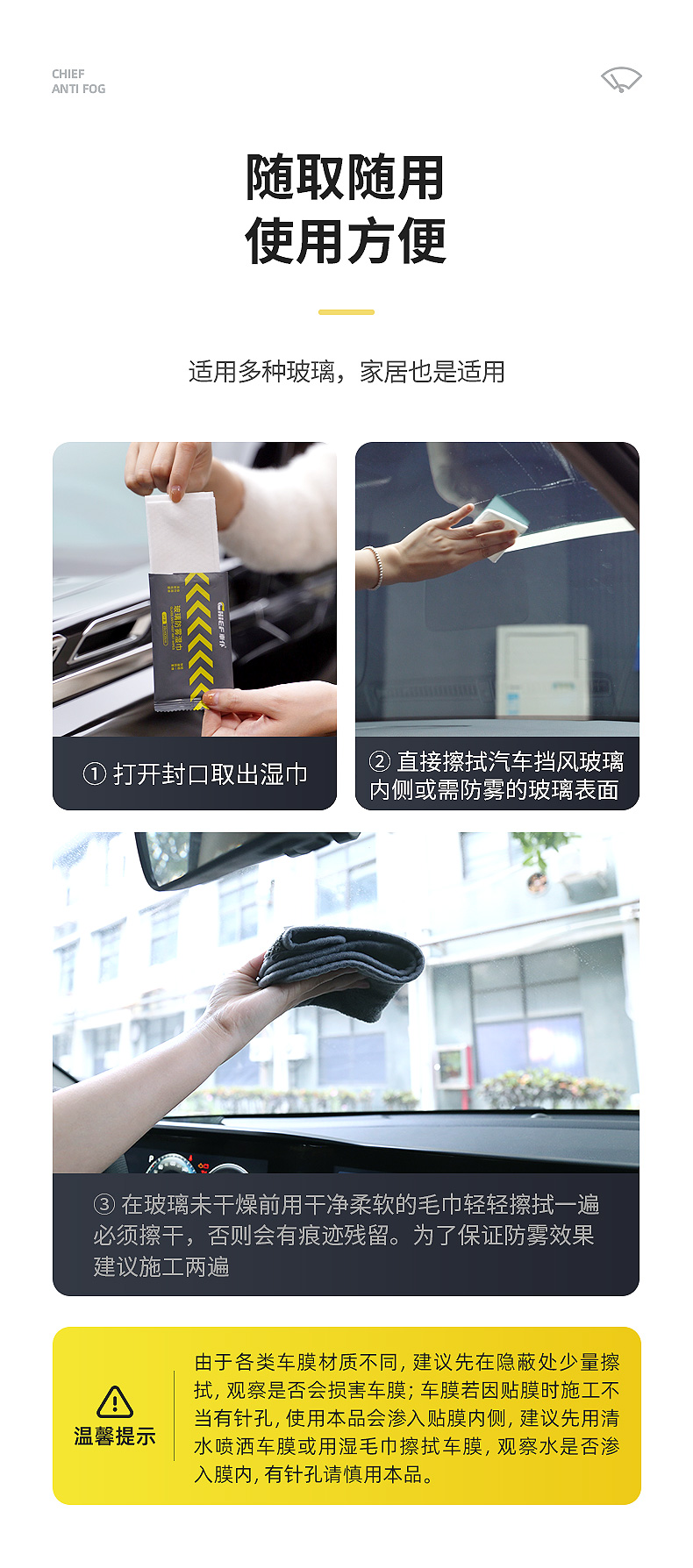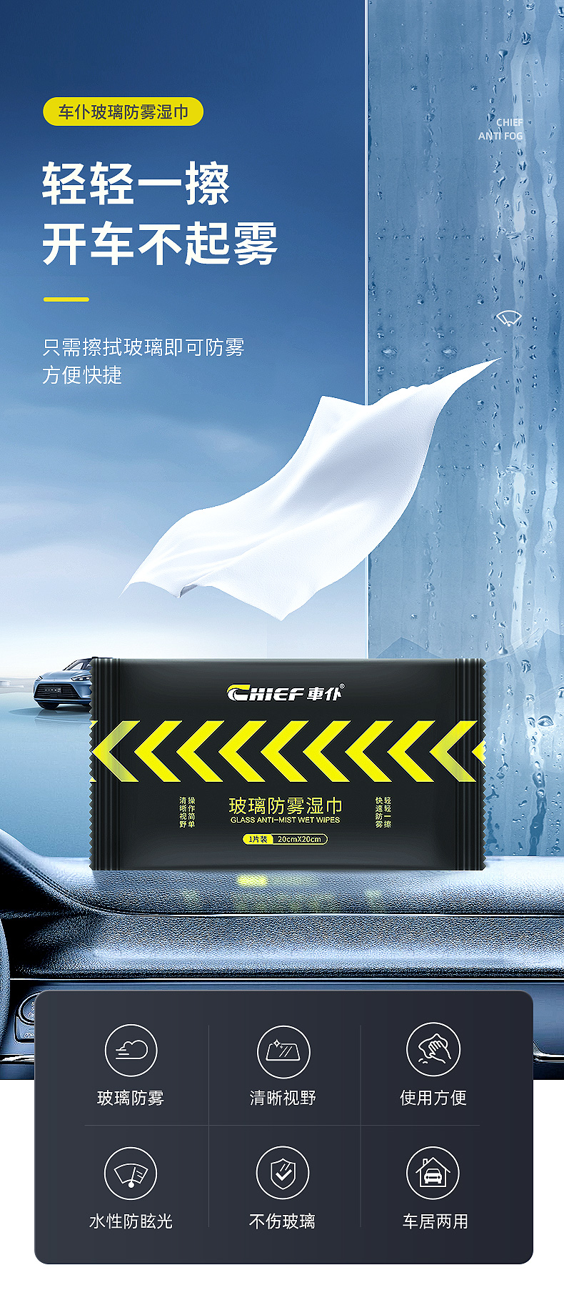 车仆汽车玻璃防雾湿巾车内起雾车窗前挡风后视镜防雨防雾剂除雾剂