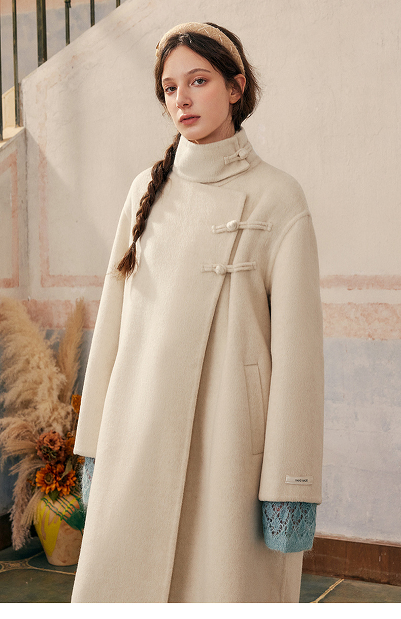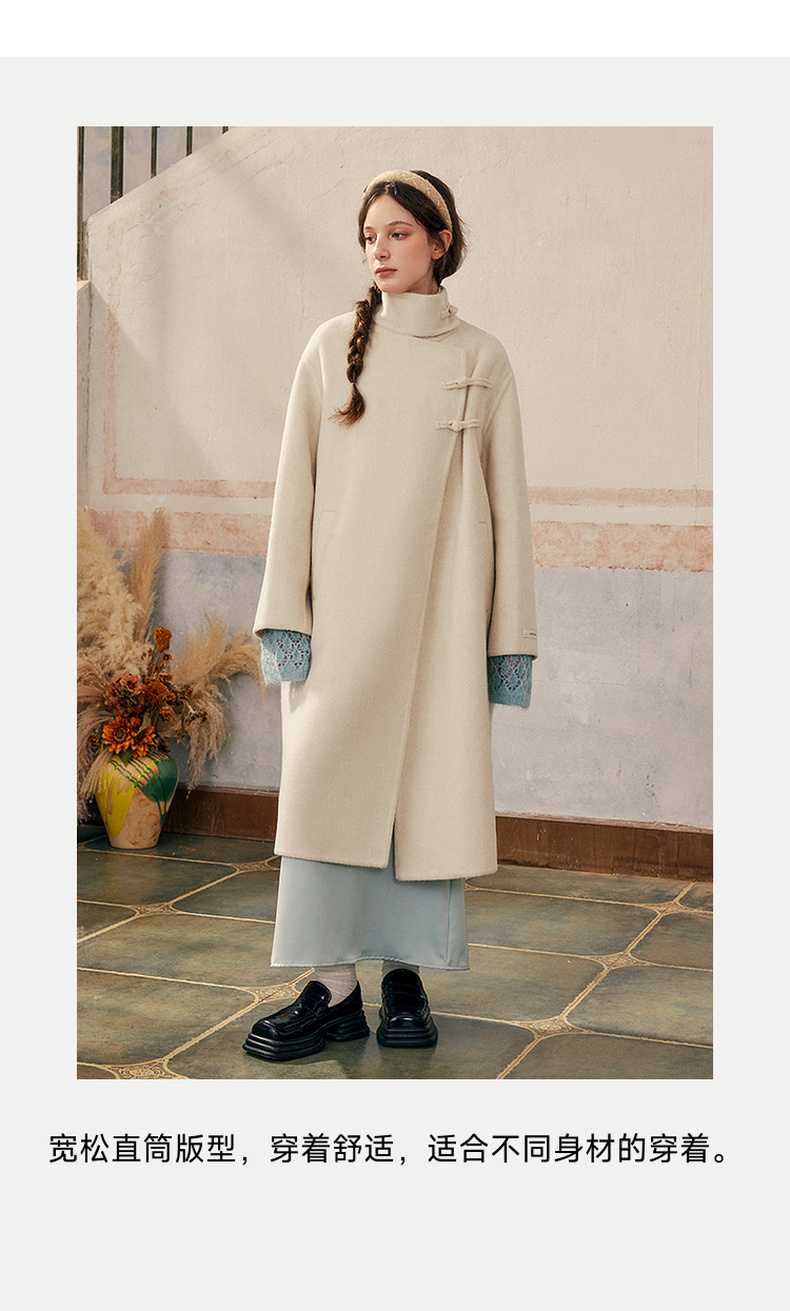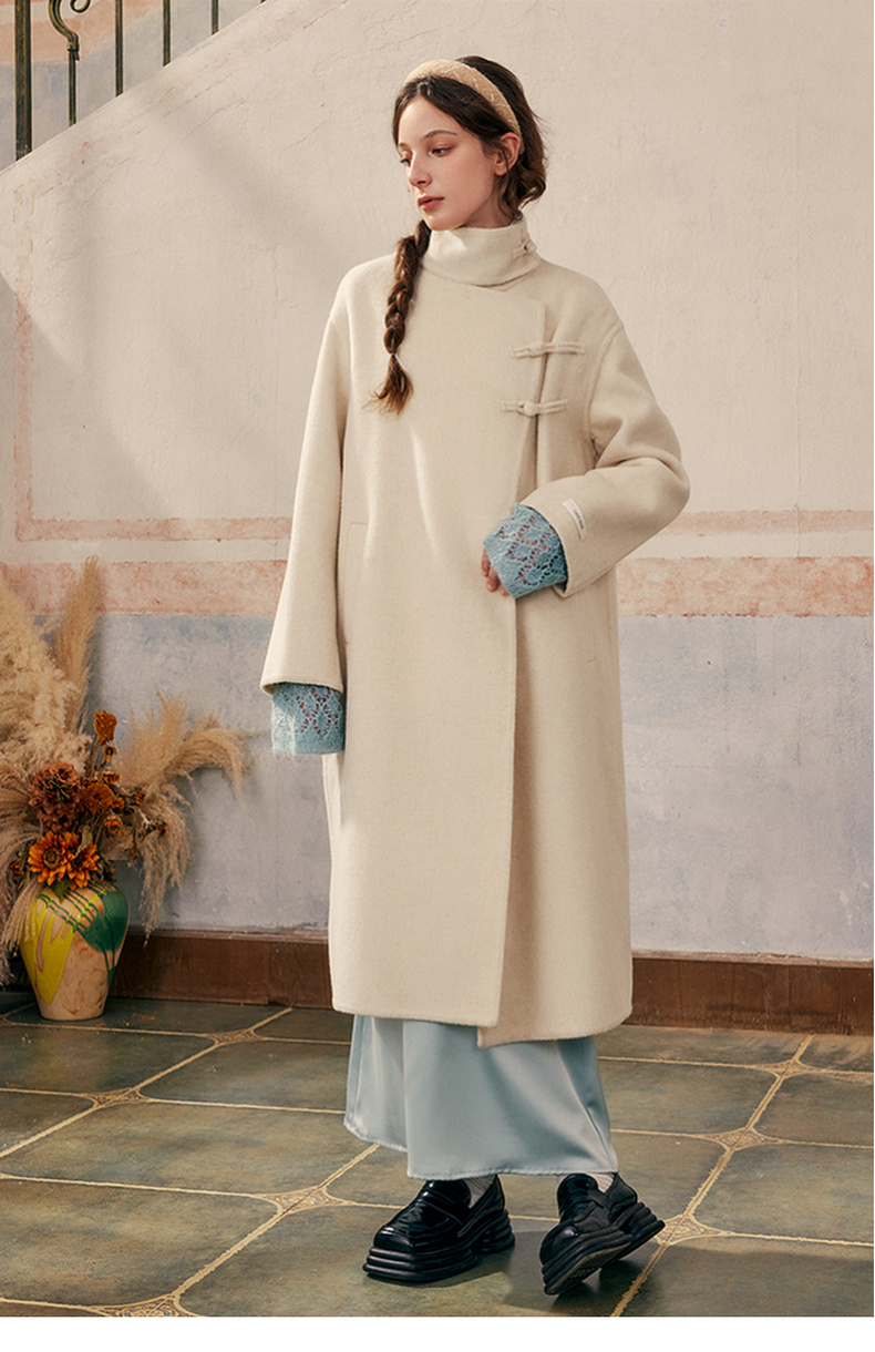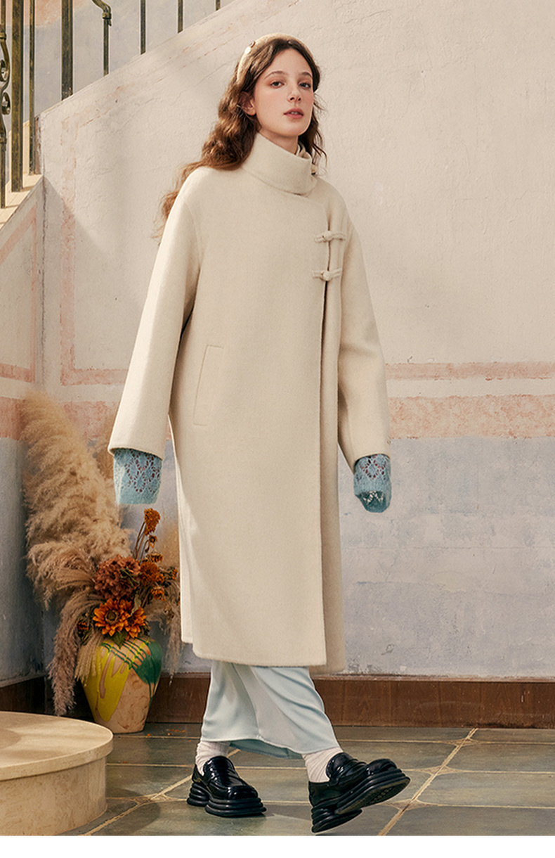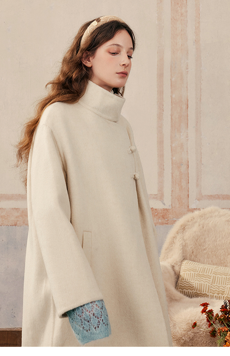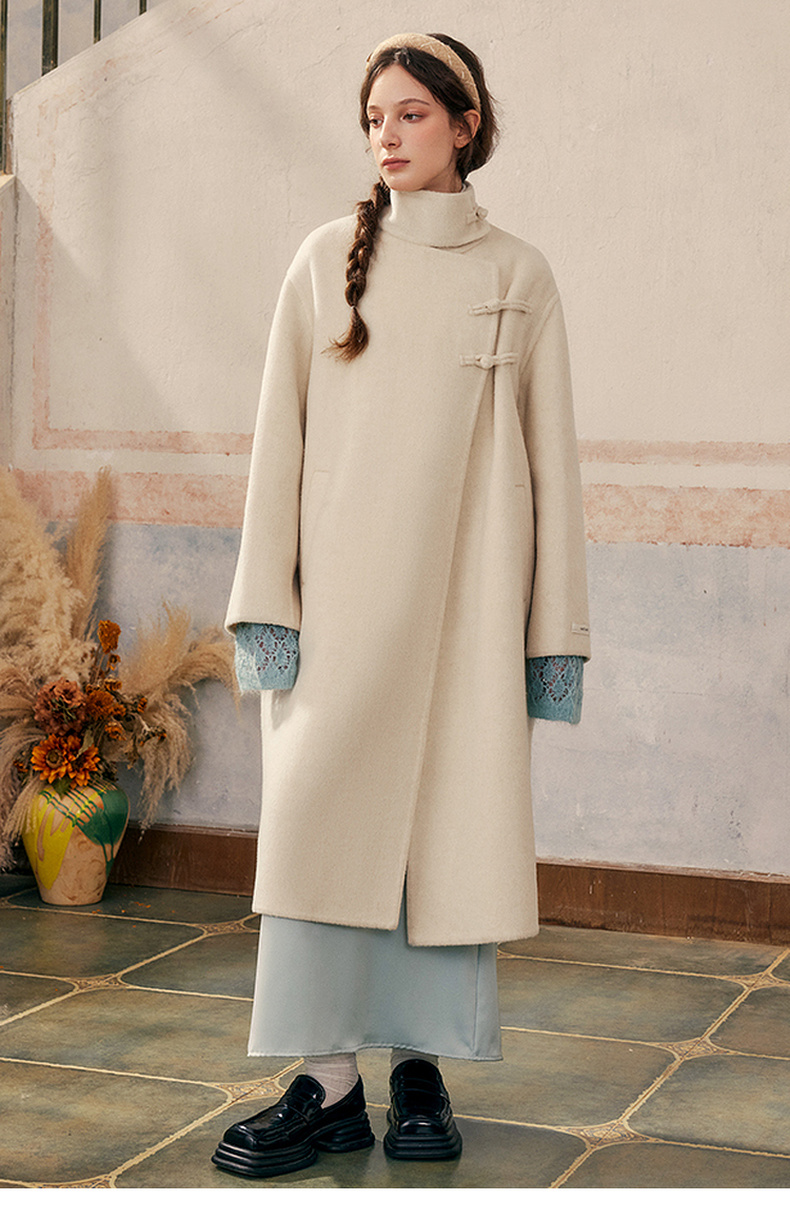【暖冬内购】两三事庭下玉立2024冬季新款复古盘扣立领羊毛呢外套女呢大衣