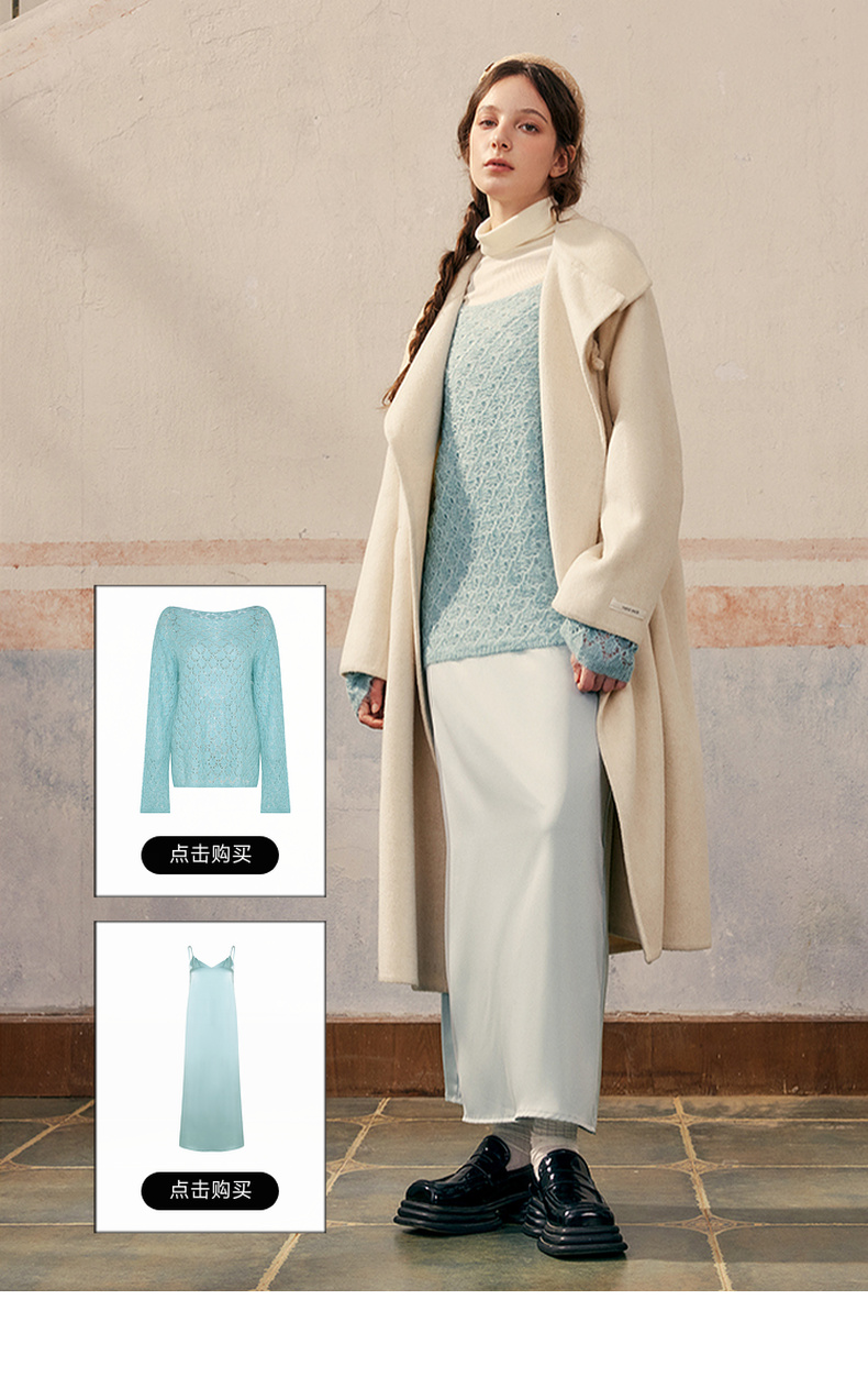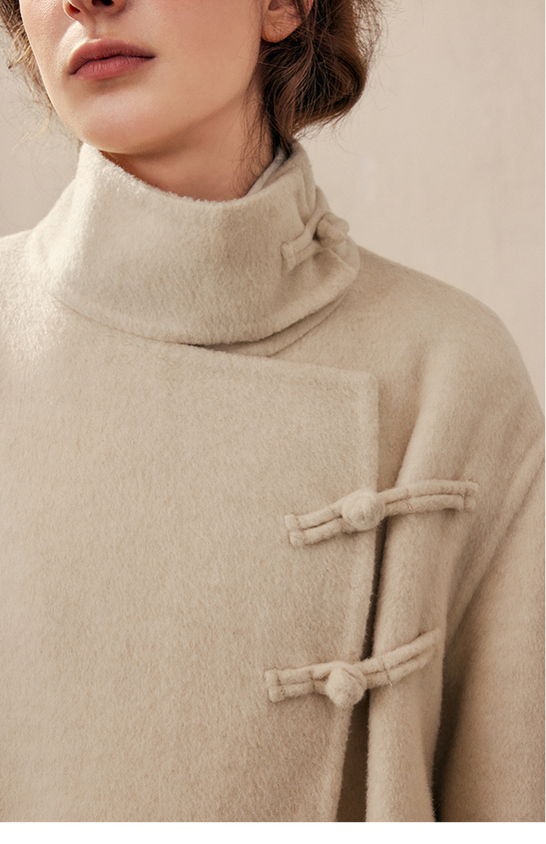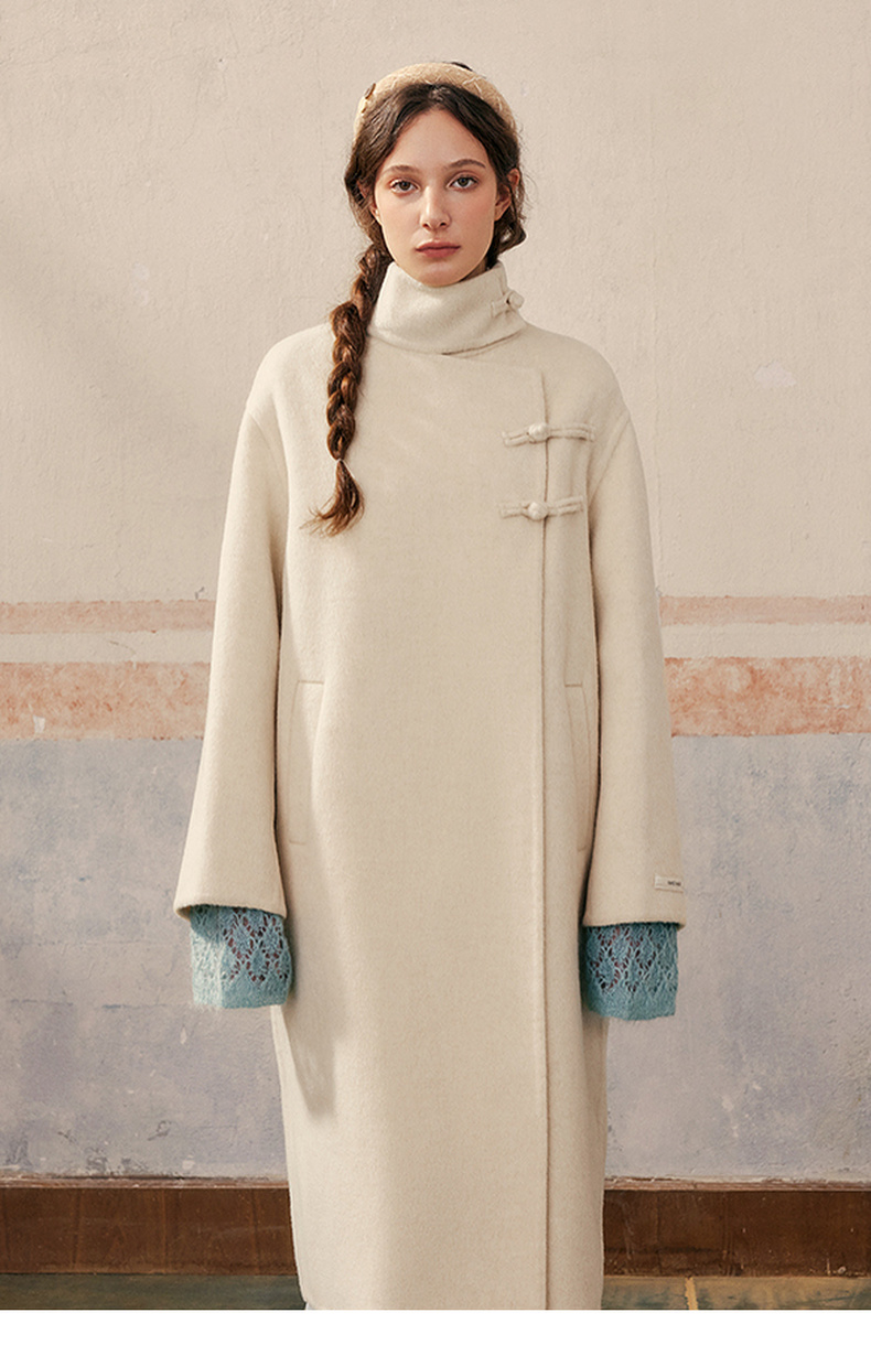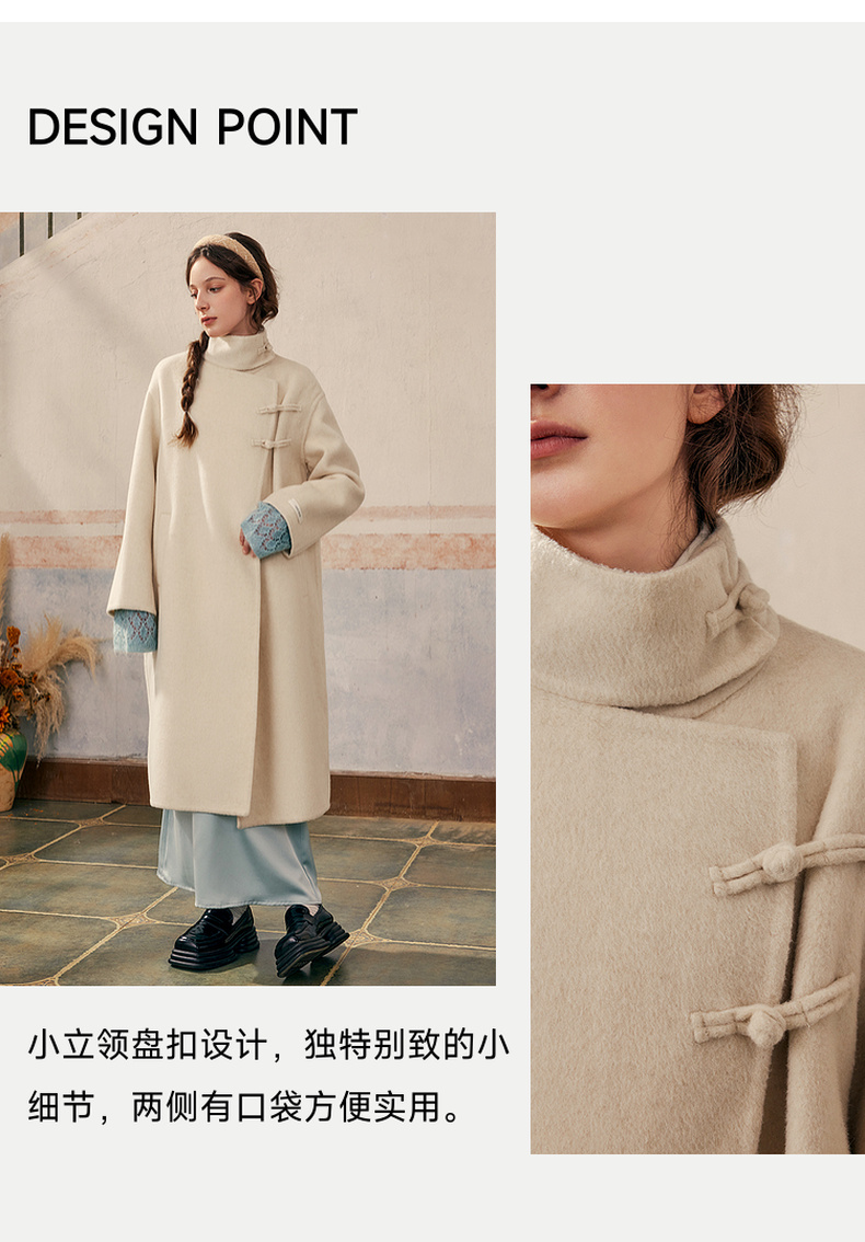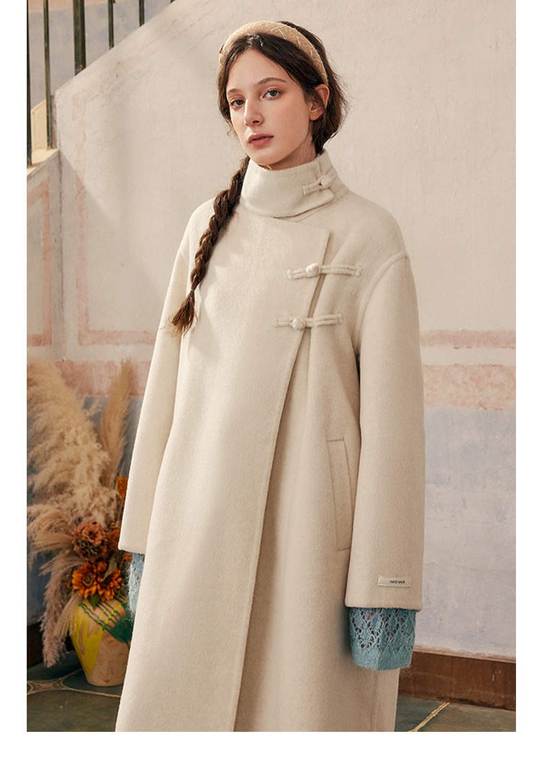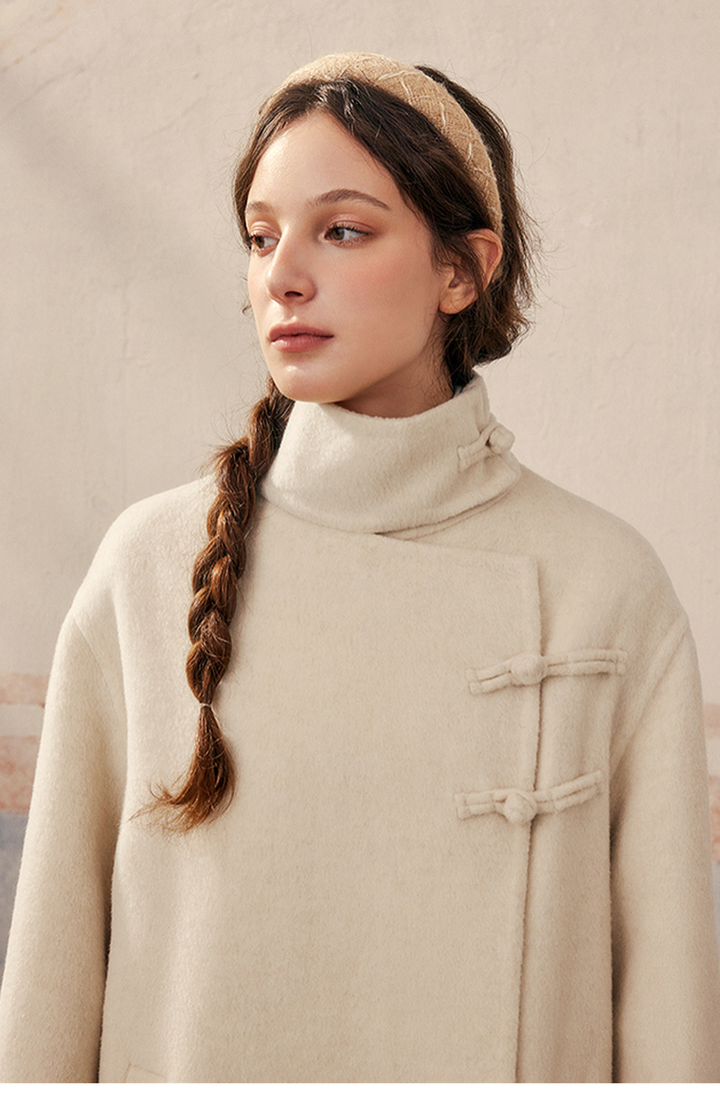 【暖冬内购】两三事庭下玉立2024冬季新款复古盘扣立领羊毛呢外套女呢大衣