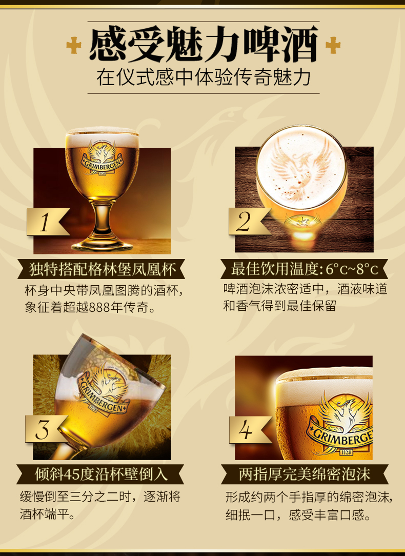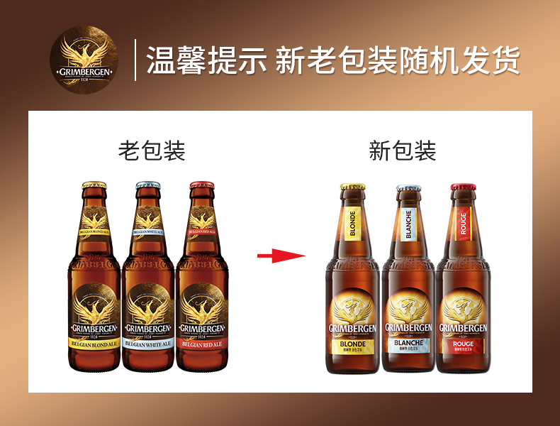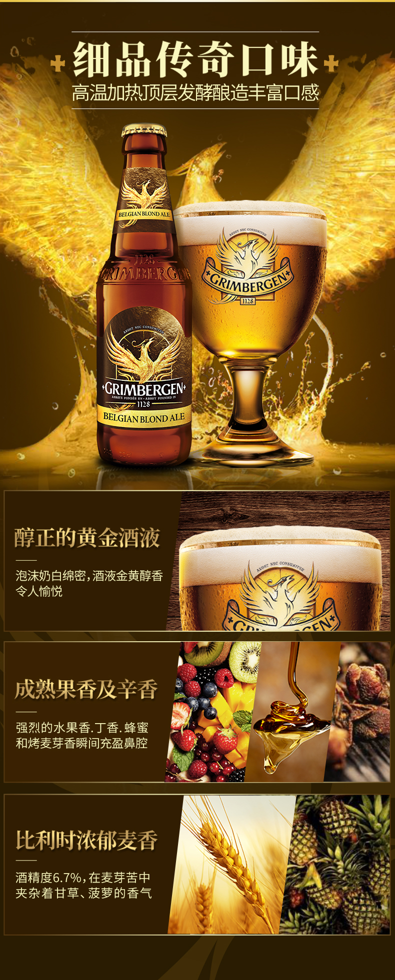 【部分地区预售,现货48h发货】Grimbergen格林堡金艾尔精酿啤酒330ml*6瓶小麦酒