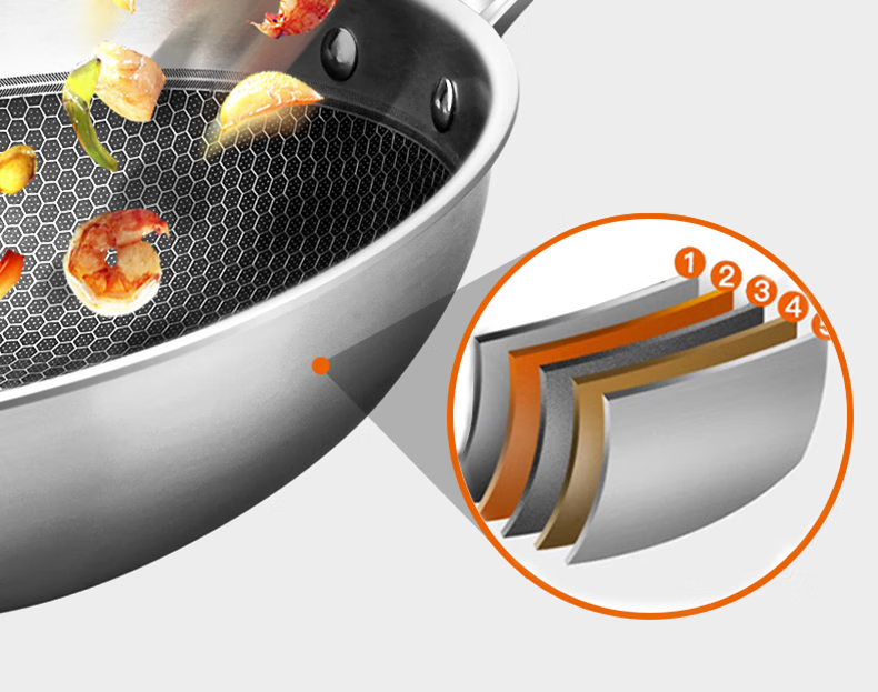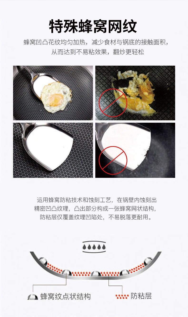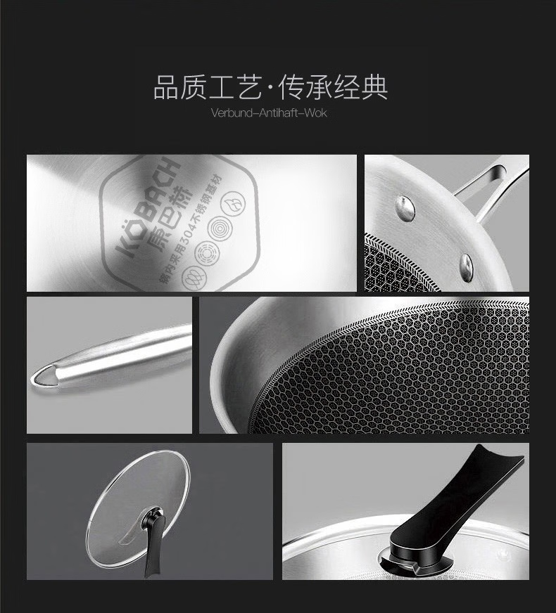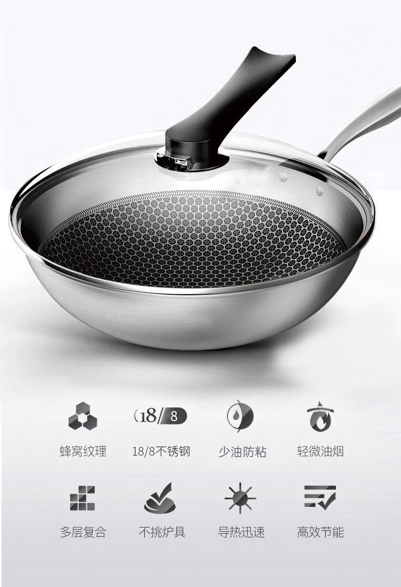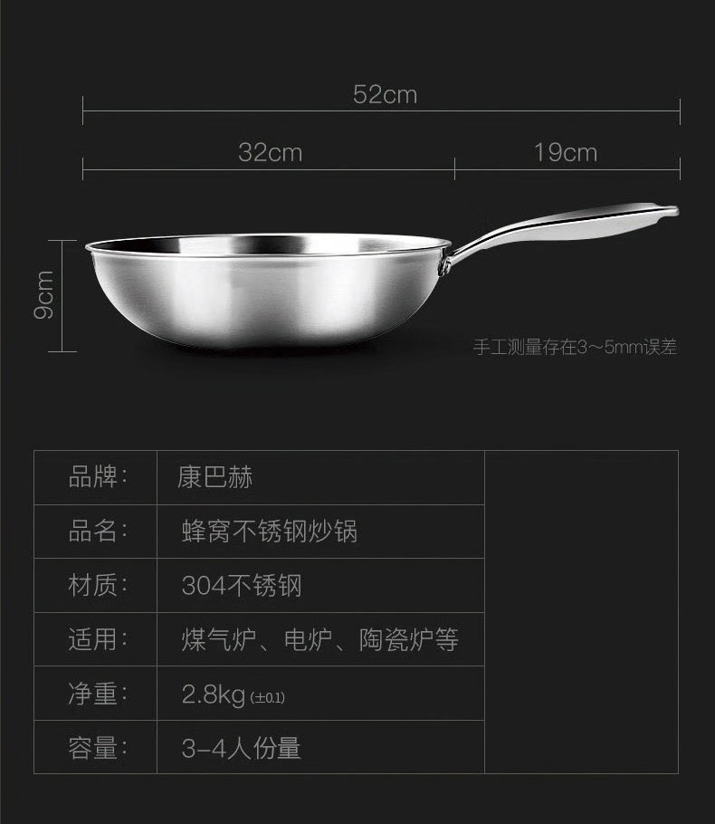 【小家电】康巴赫304不锈钢蜂窝炒锅CFC32A1 HF
