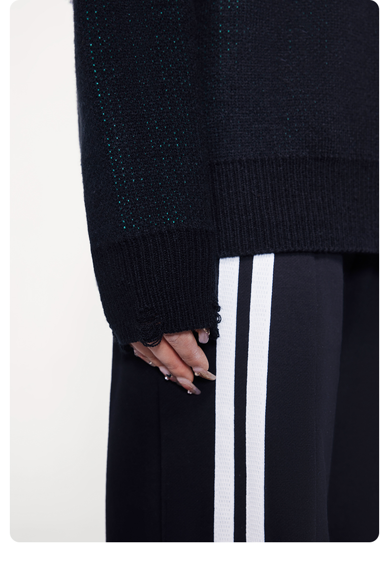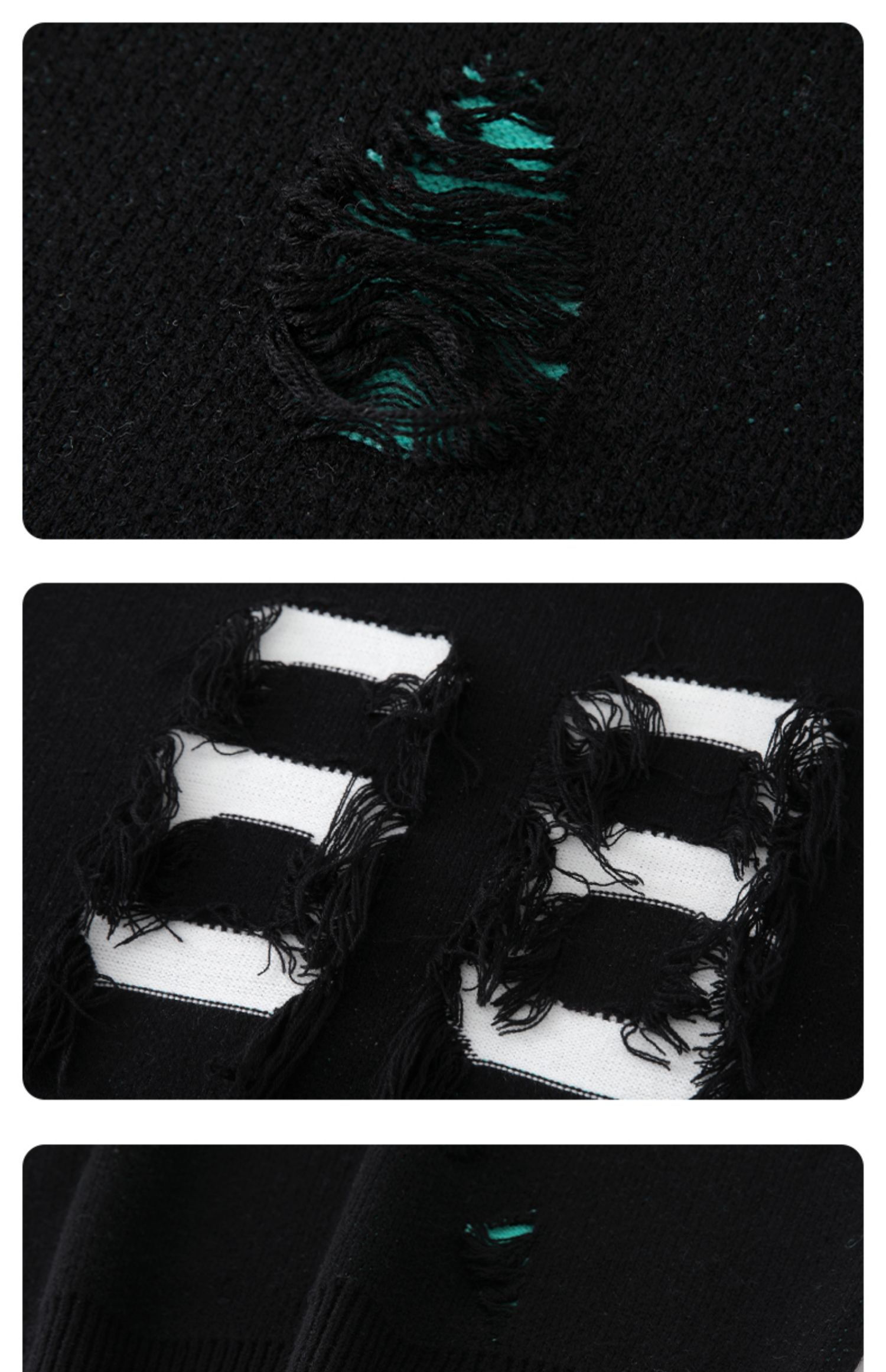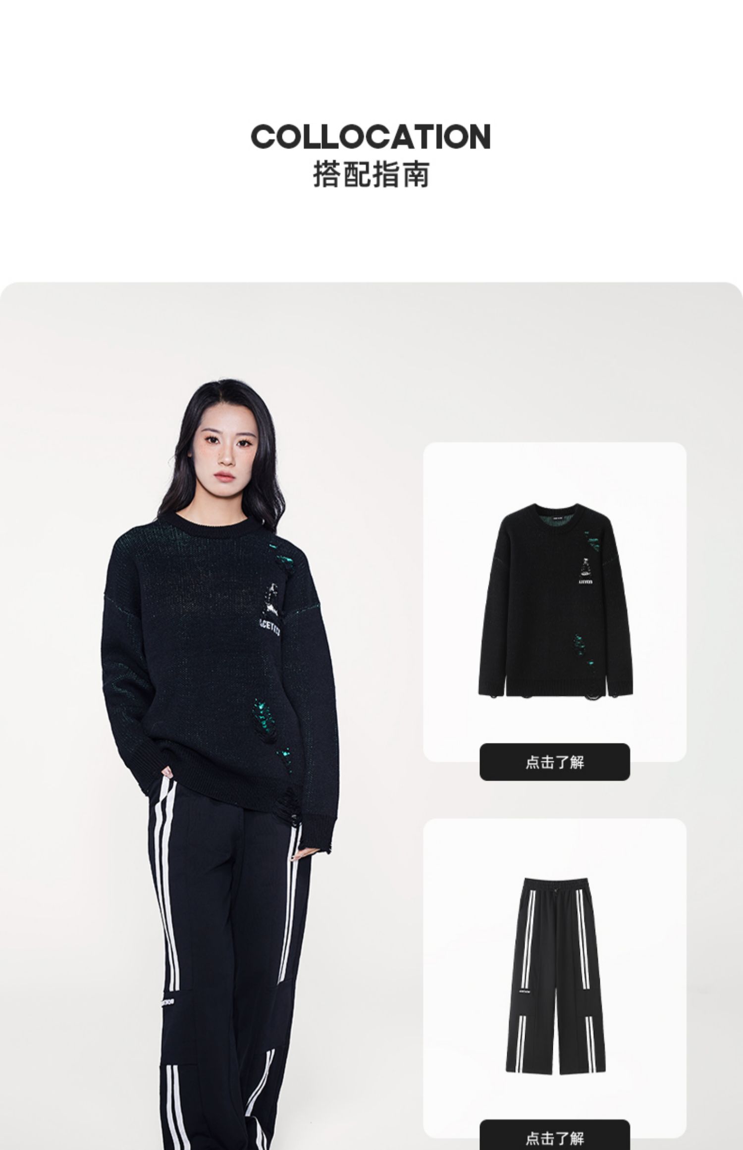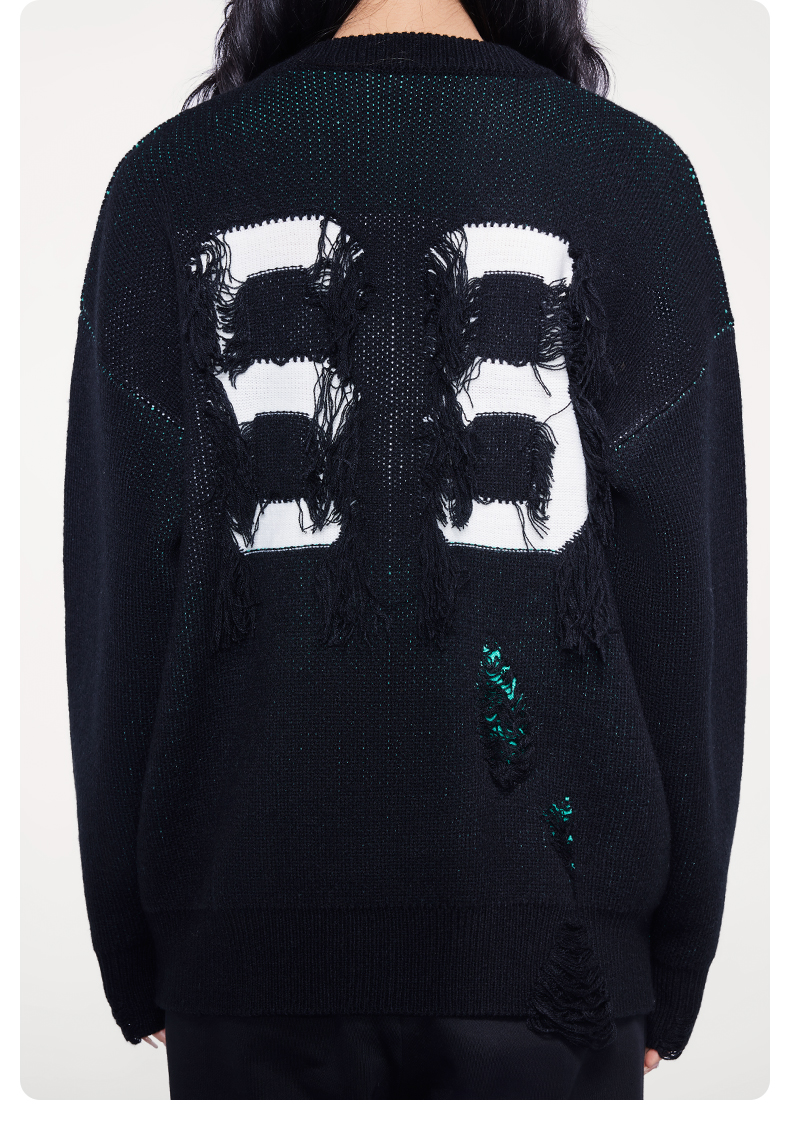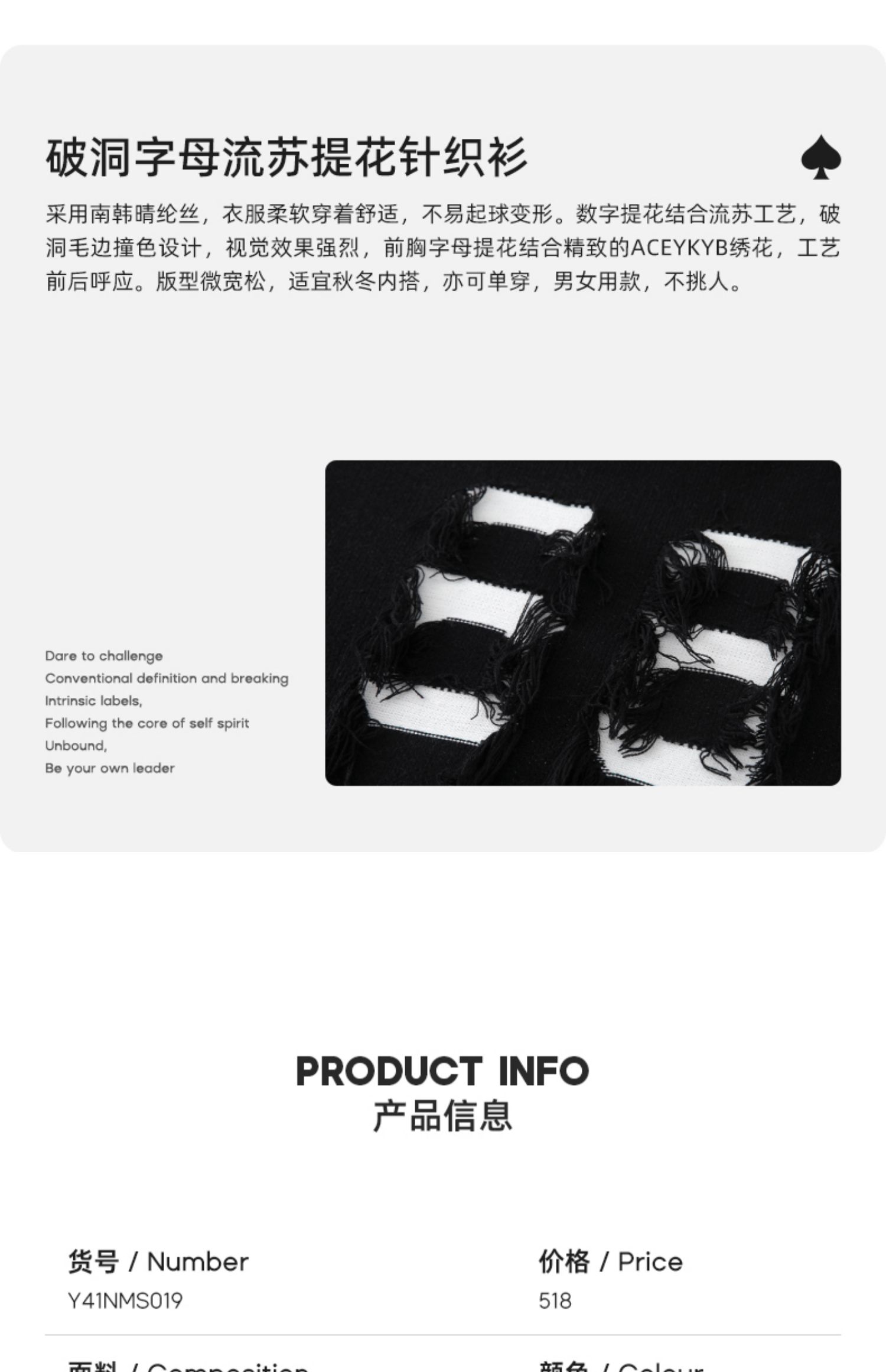 YKYB破坏毛边针织衫2025春新款宽松落肩圆领中性美式街头破洞毛衣