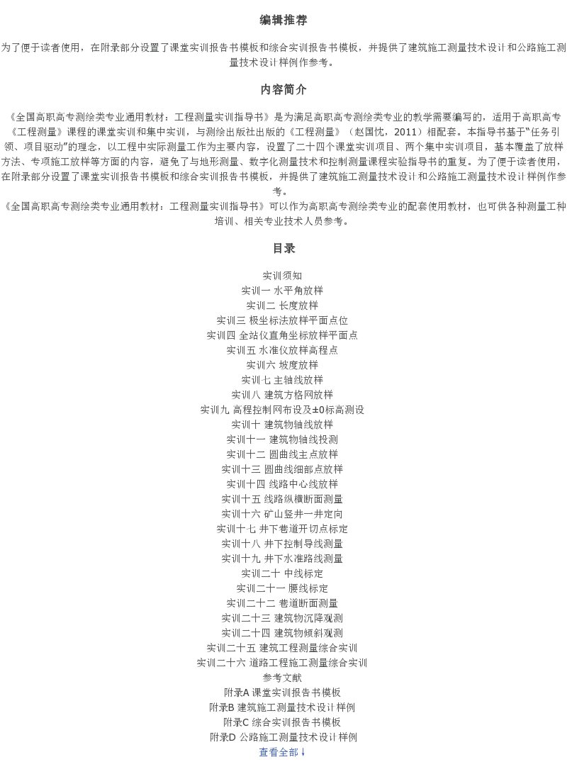 《全国高职高专测绘类专业通用教材:工程测量实训指导书》