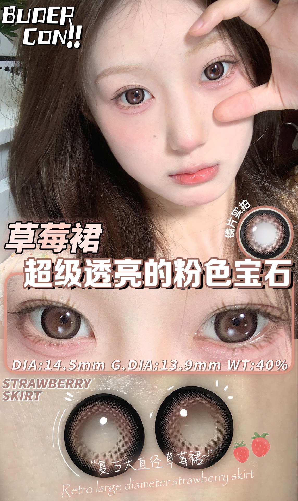 PAPADOX 草莓裙 日抛 10片 14.5mm 着色13.9mm 基弧8.6 含水 40% 新锐国货