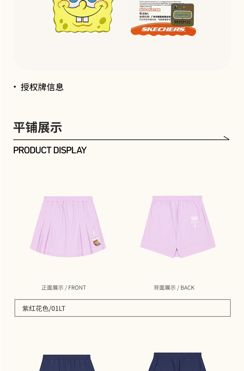 小斯凯奇【海绵宝宝联名】儿童短裤夏季新款女大童百褶裤裙L222G062