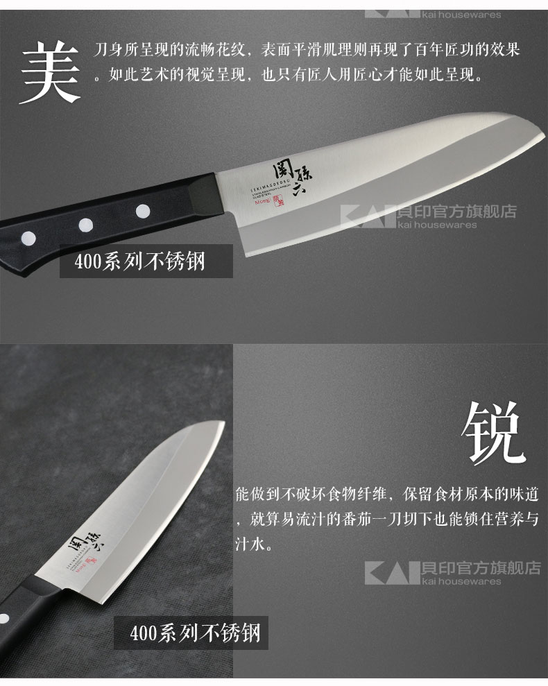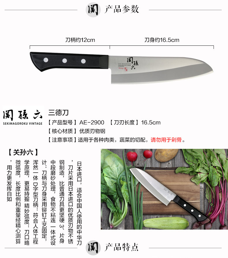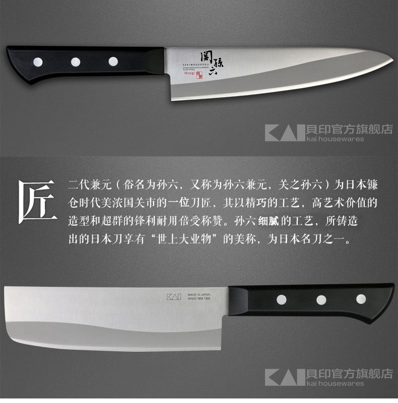 貝印关孙六萌黄系列牛刀AE-2902 /三德刀AE-2900切菜切肉刀菜刀刀具复合钢日本进口