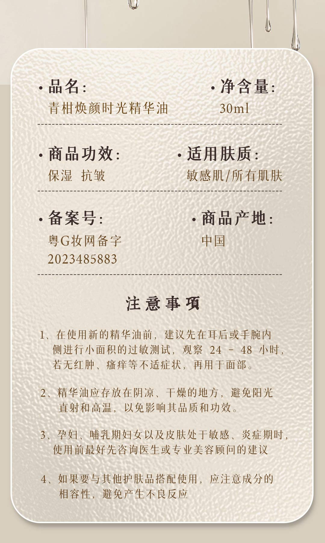 宋雅辰香青柑焕颜时光精华油30ml