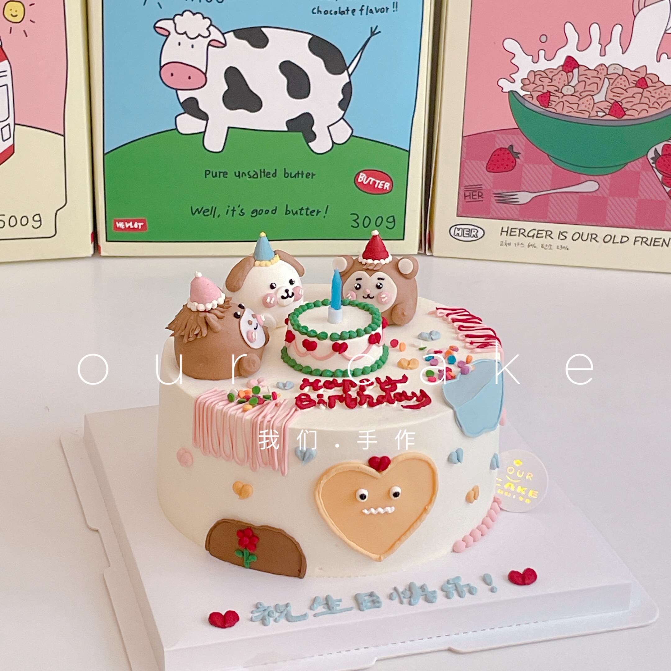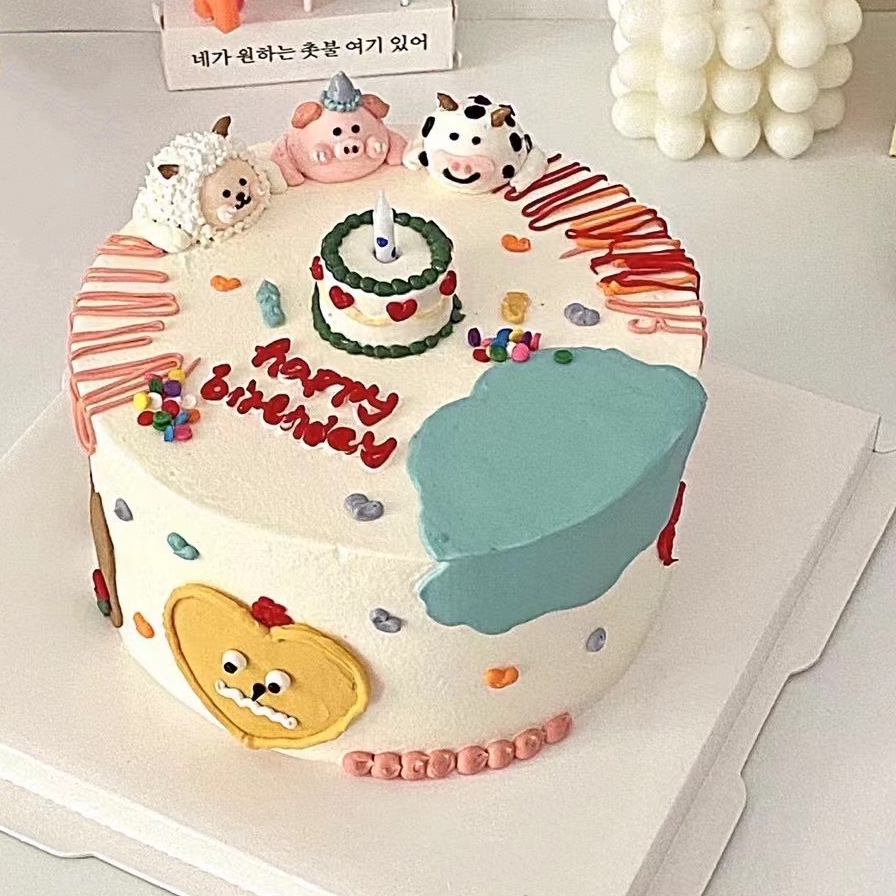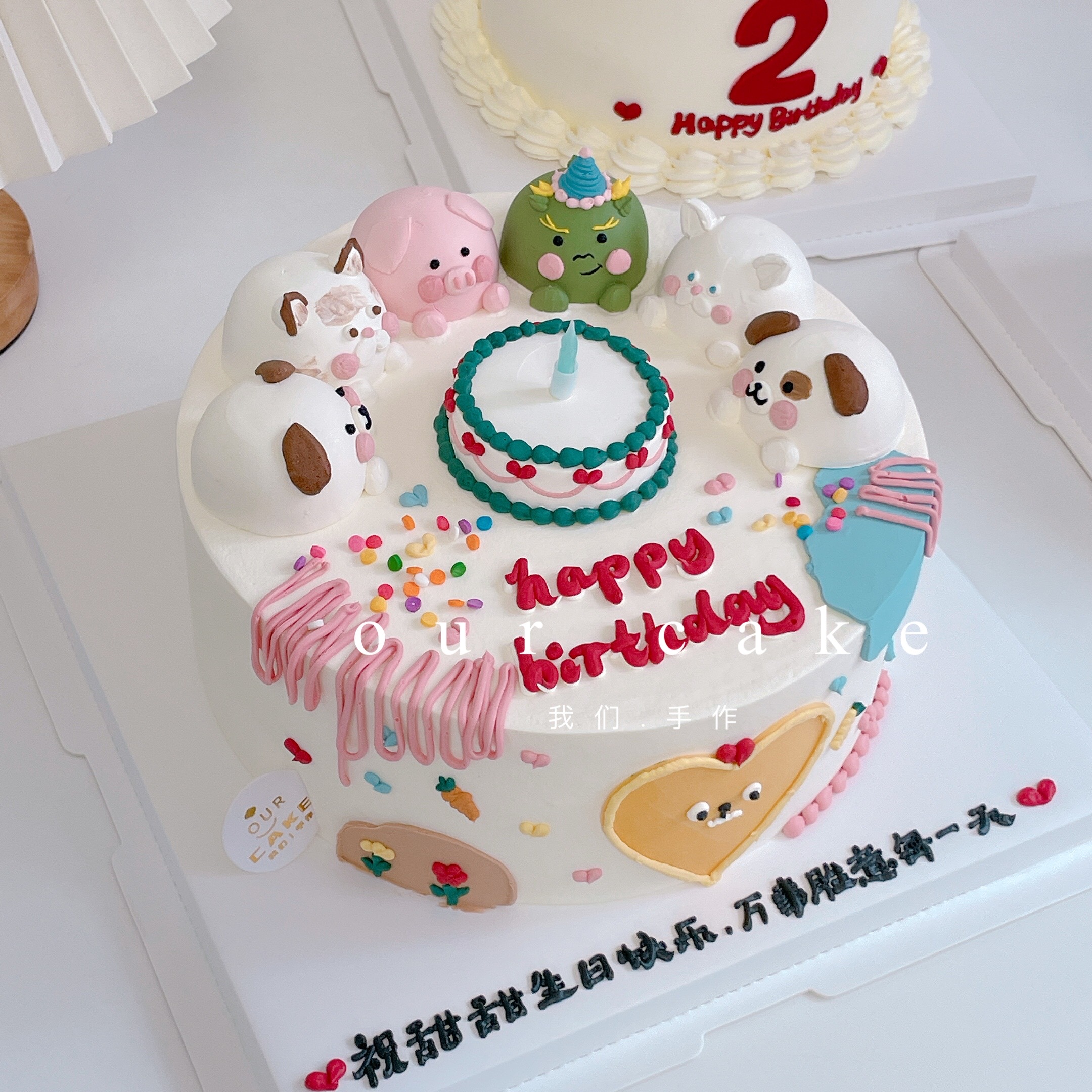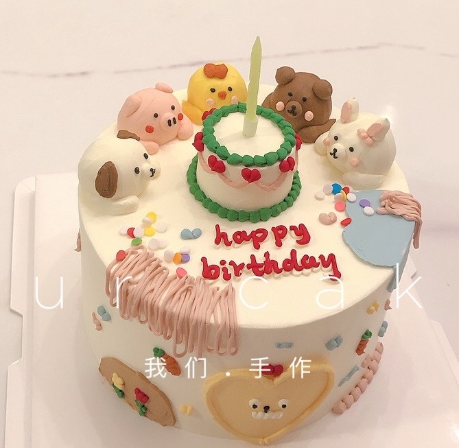 小动物卡通蛋糕(备注要什么小动物以及要画生日帽的小动物,无备注则按原图)-低糖处理无添加