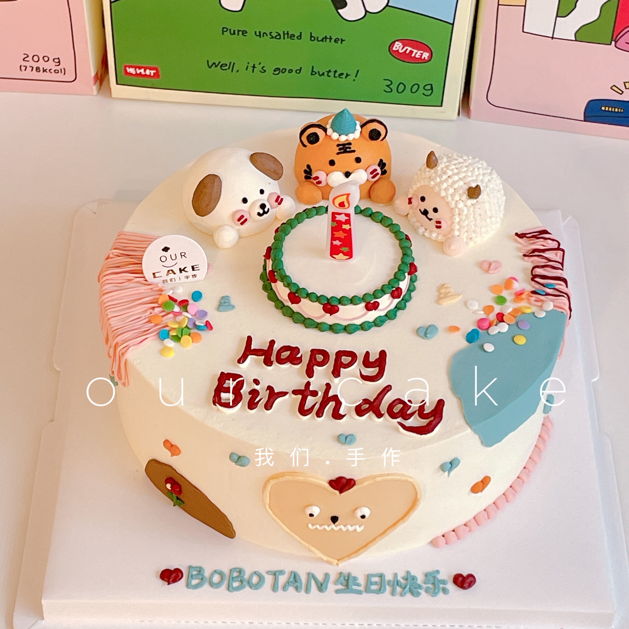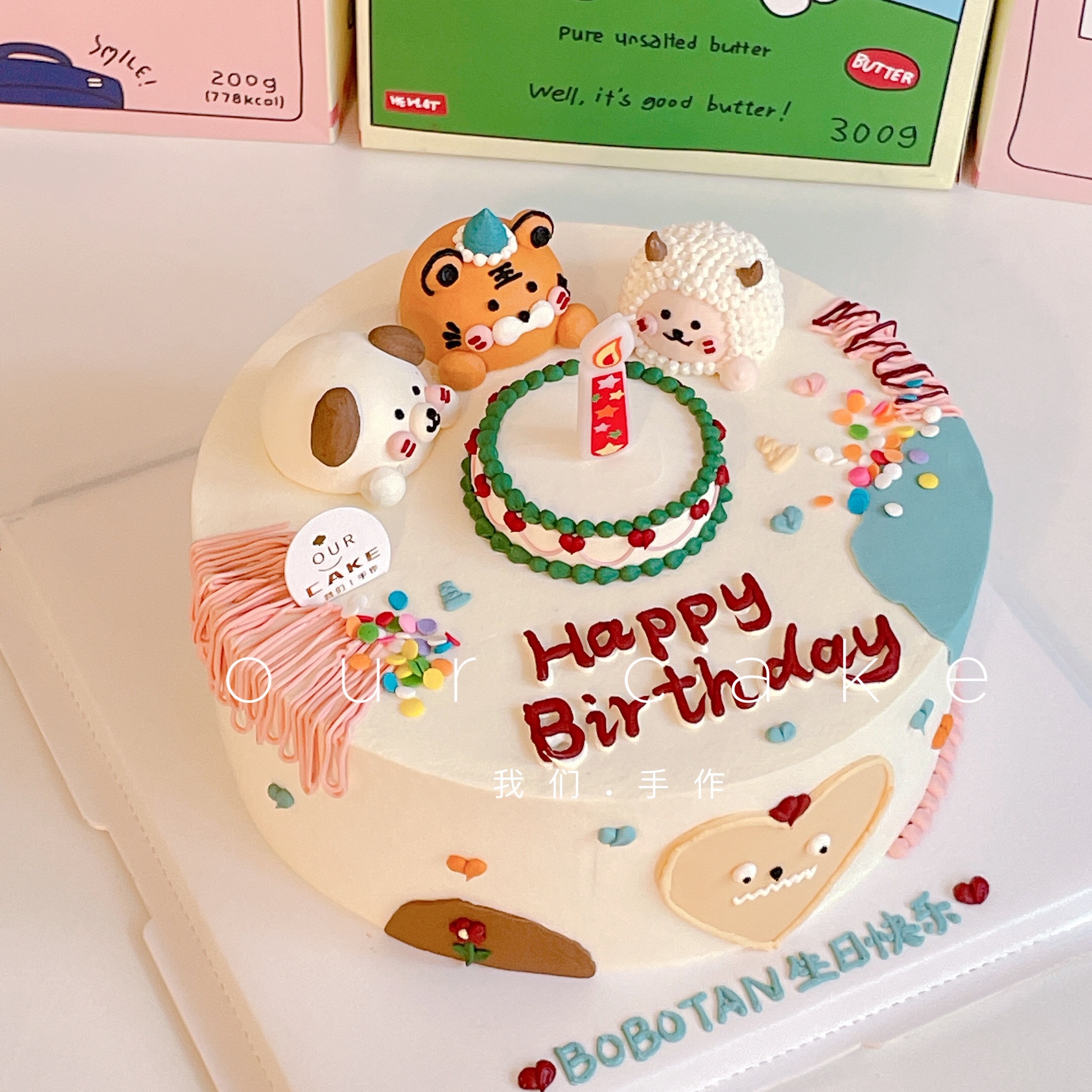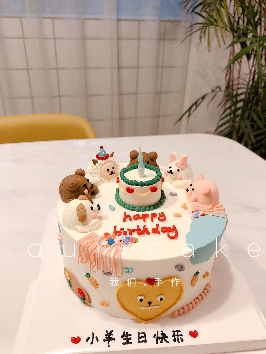 小动物卡通蛋糕(备注要什么小动物以及要画生日帽的小动物,无备注则按原图)-低糖处理无添加