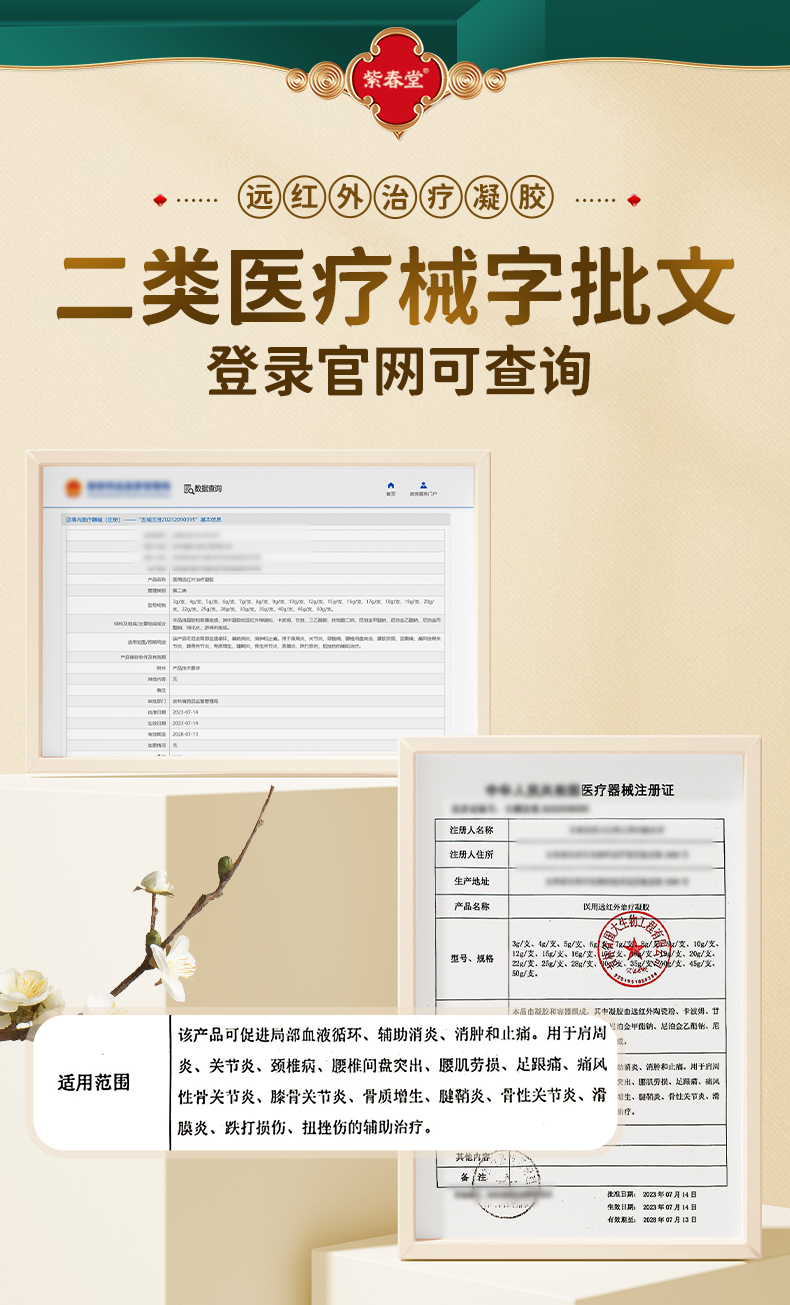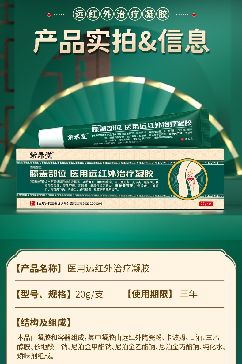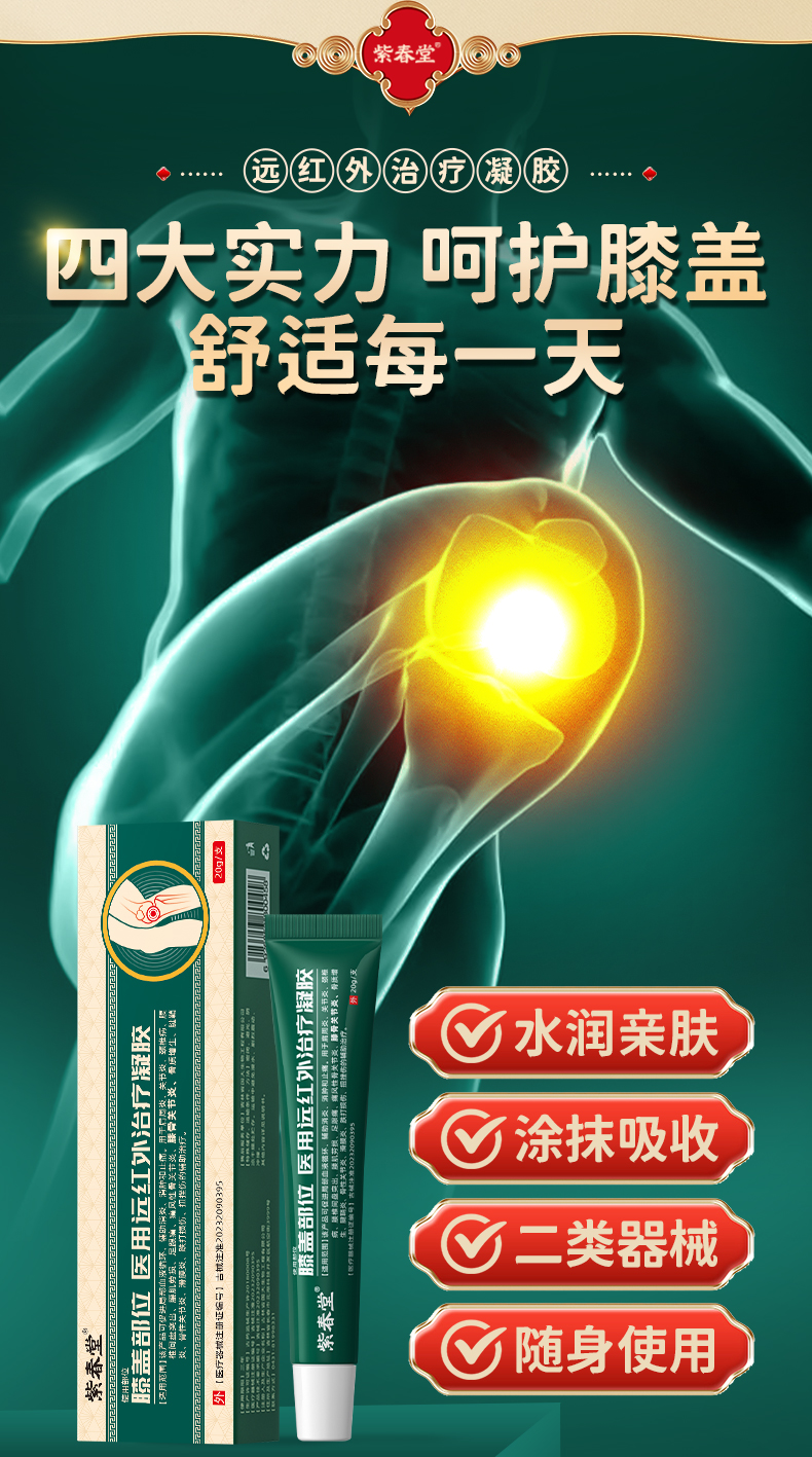 紫春堂膝盖部位医用远红外治疗凝胶用于肩周滑膜炎痛风膝骨关节炎