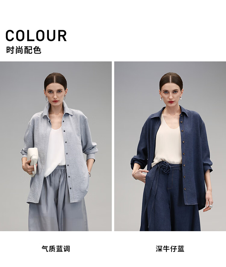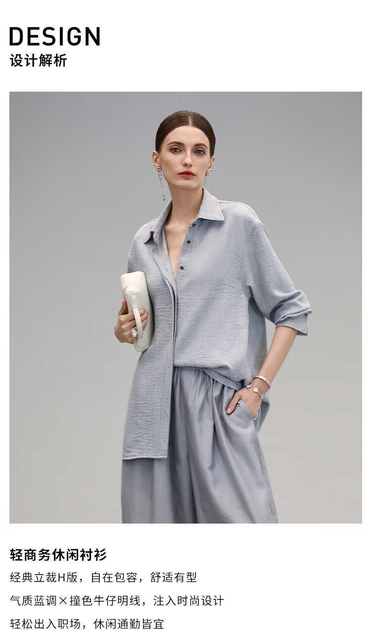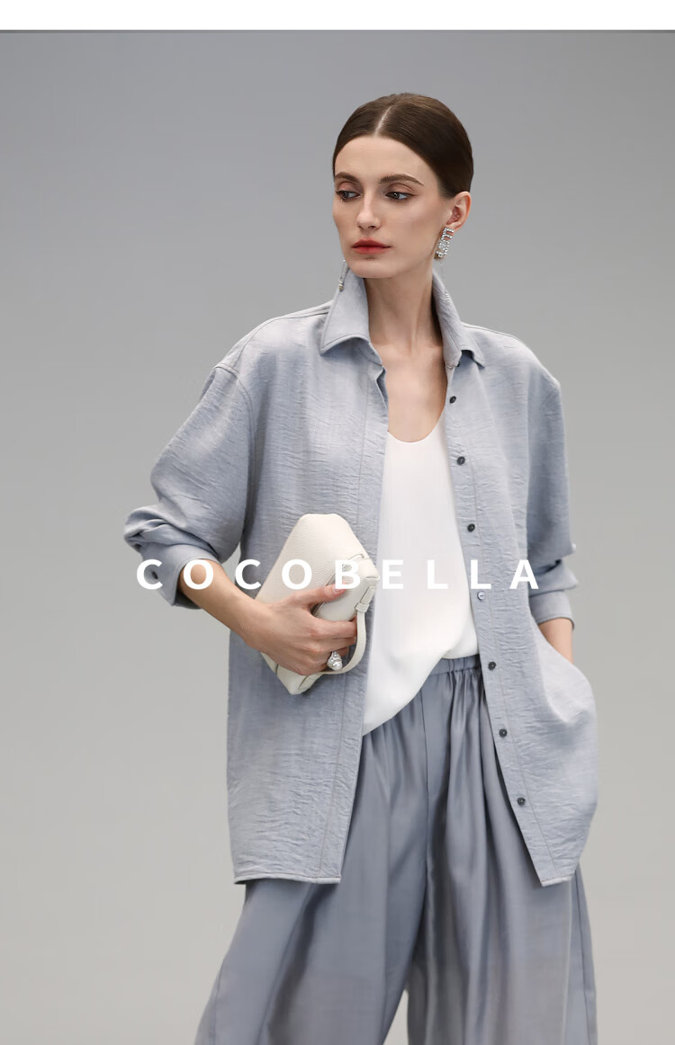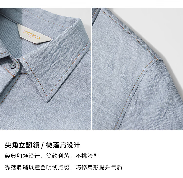 COCOBELLA简约商务休闲衬衫女25春夏舒适翻领遮阳衬衣SR3197