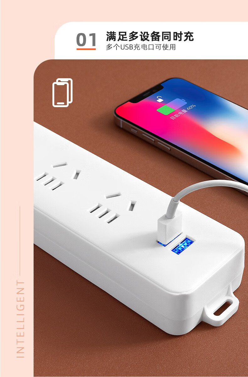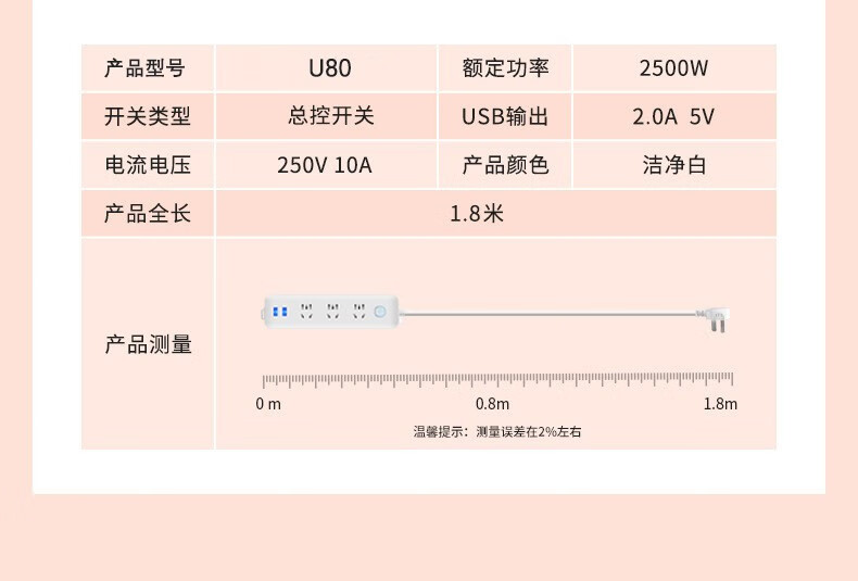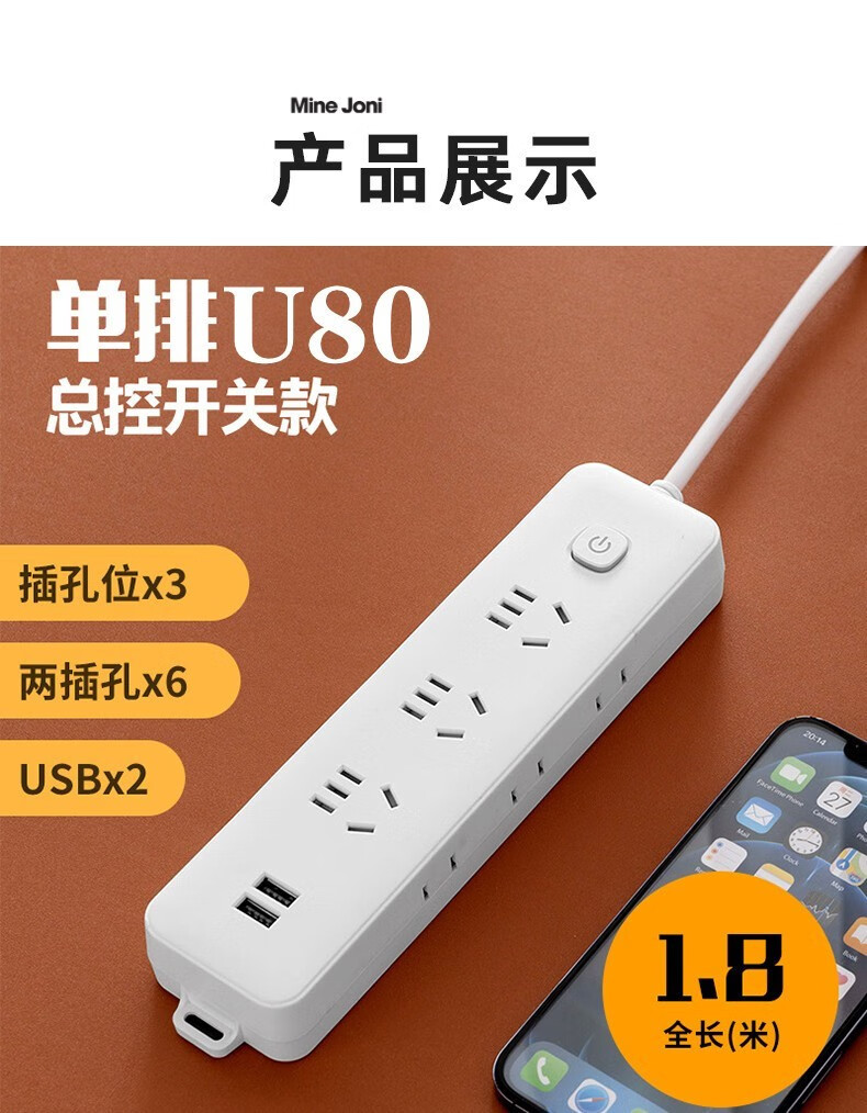 MINEJONI U80U82插座面板多孔插排插长线多用功能家用宿舍拖接线板电插板带线USB充电