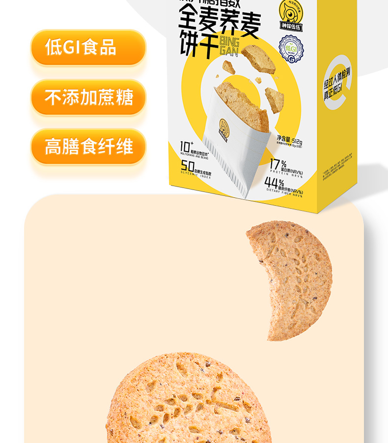 神探伍伍 低升糖指数全麦荞麦饼干512g
