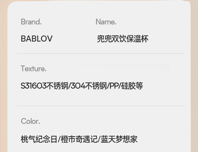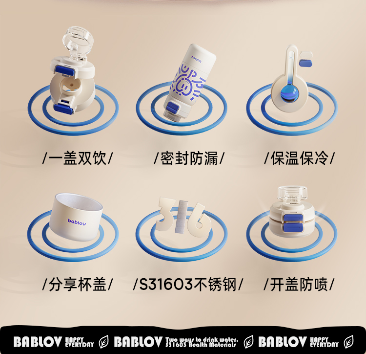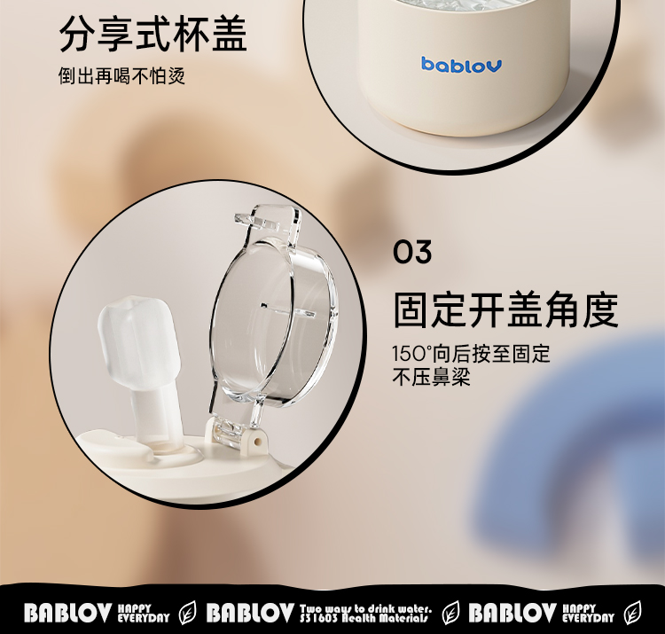 - BABLOV关注中国人的饮水健康,更不断探索未知可能性,专注于新生代自我个性表达,创造玩味新潮的产品体系。希望将水杯带入Z世代年轻人的生活,传递更多“饮”响力。