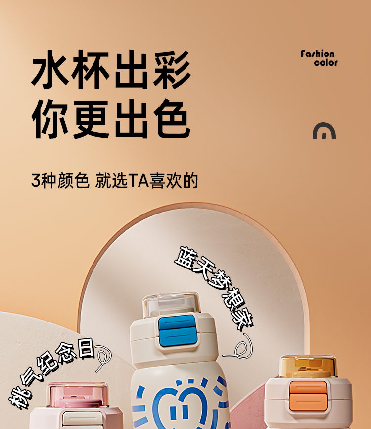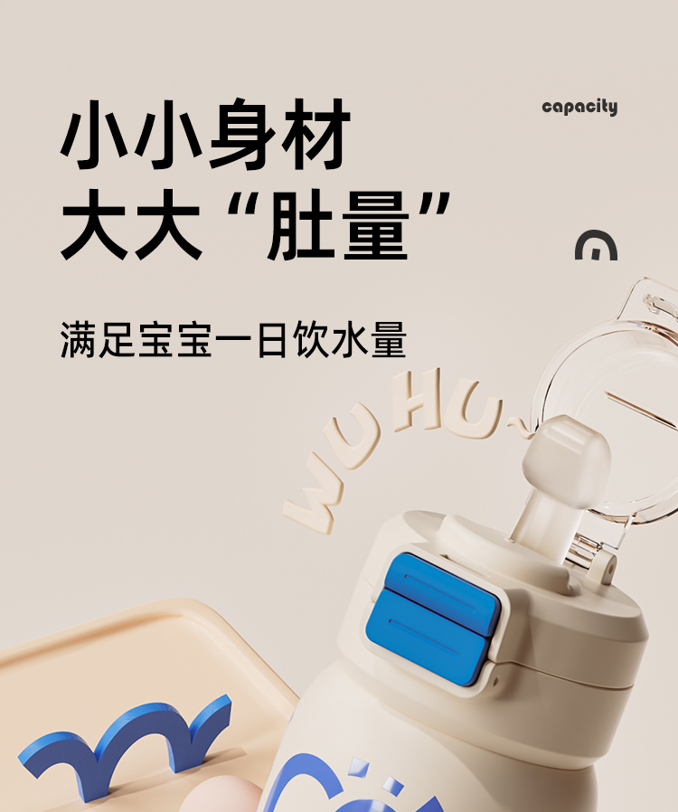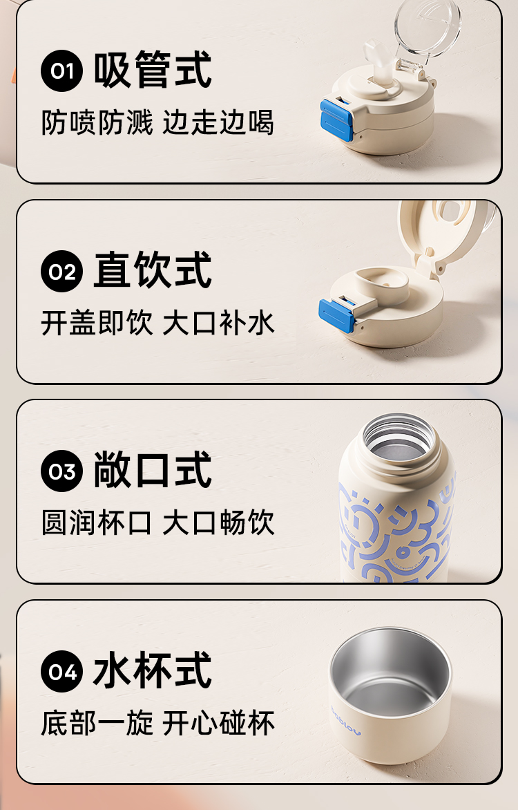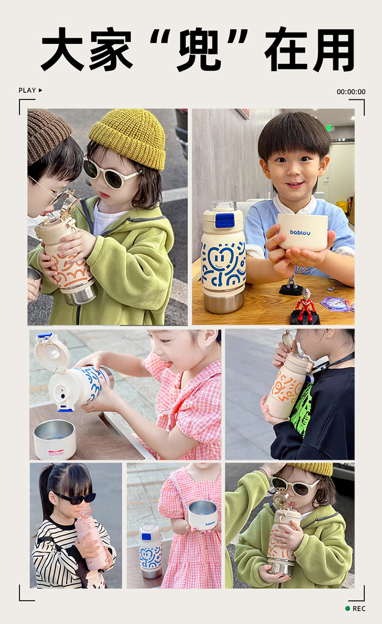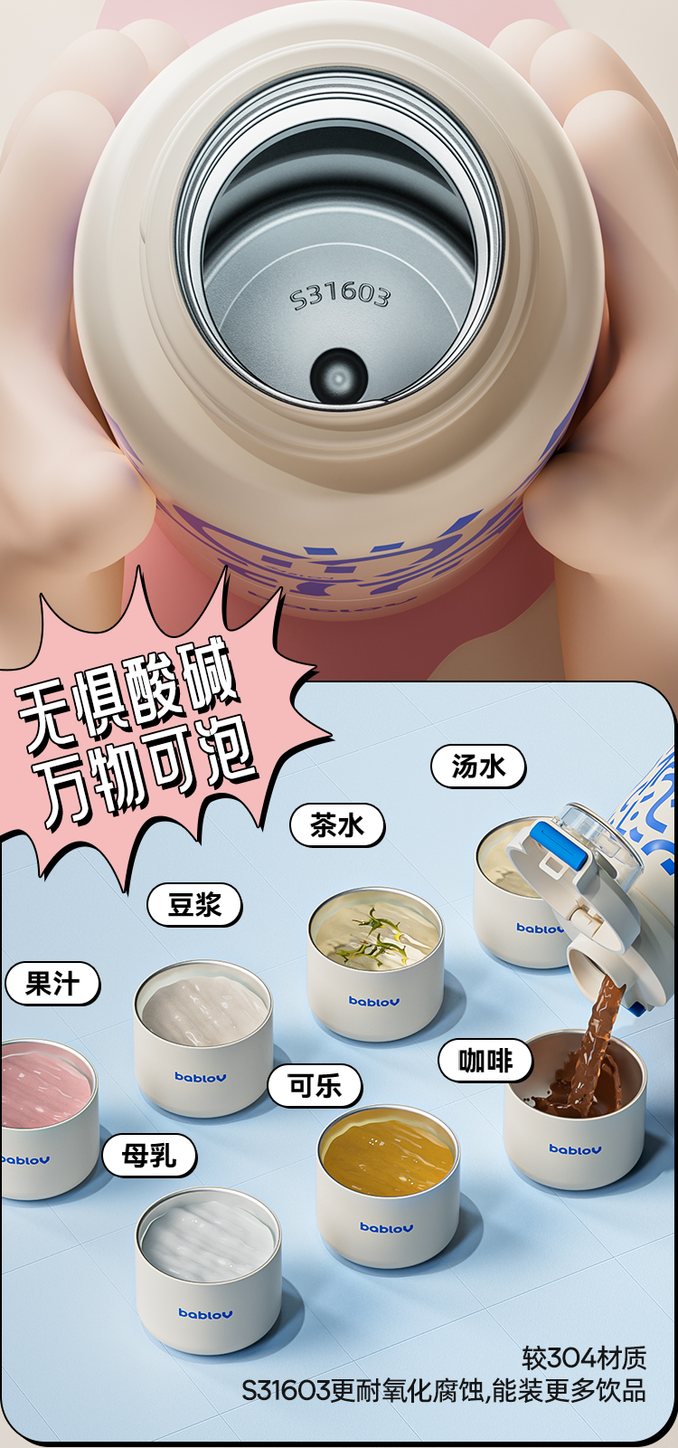 bablov儿童保温杯吸管水杯女孩食品级316L不锈钢男孩上学专用杯子