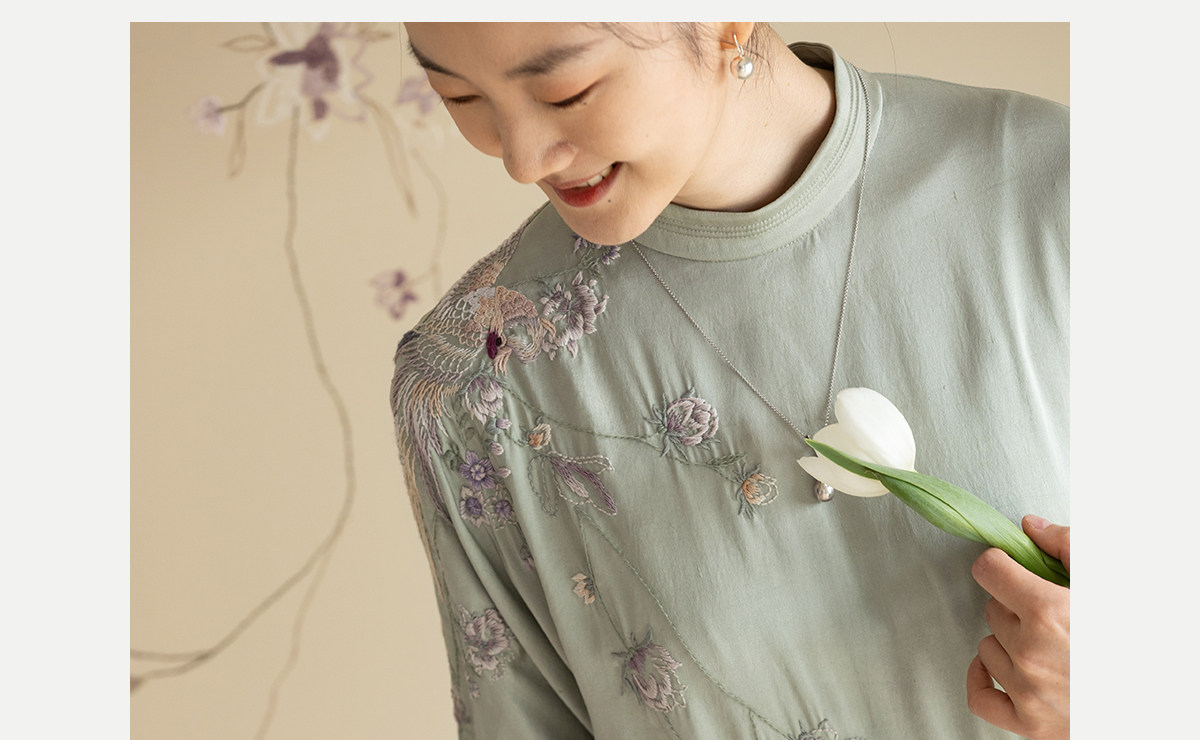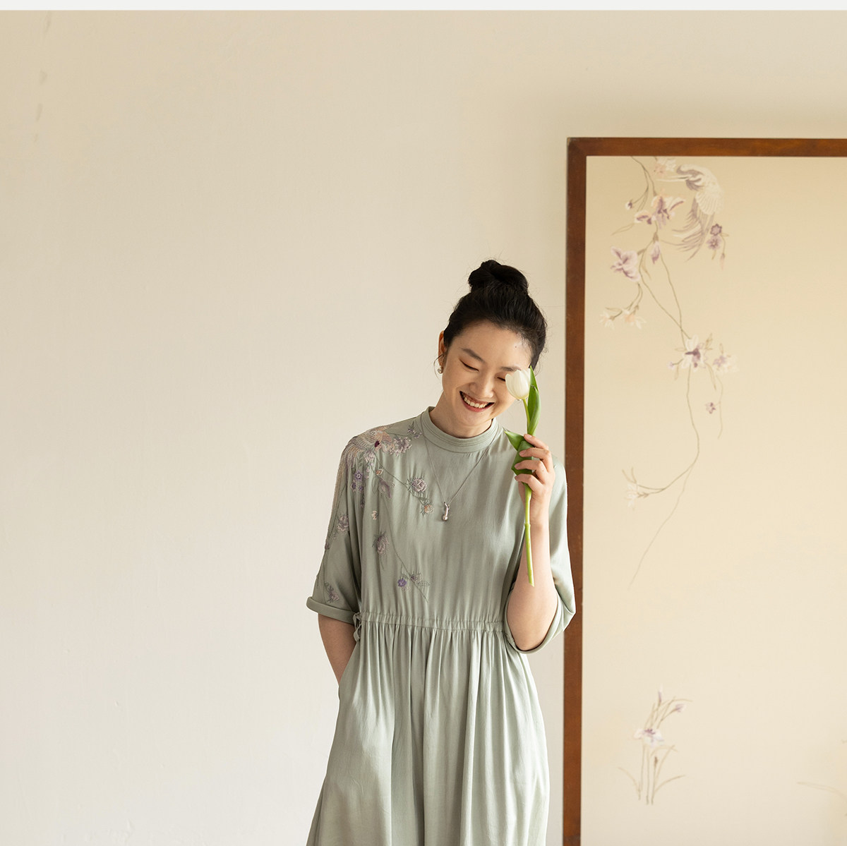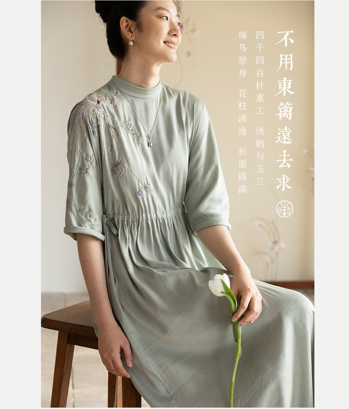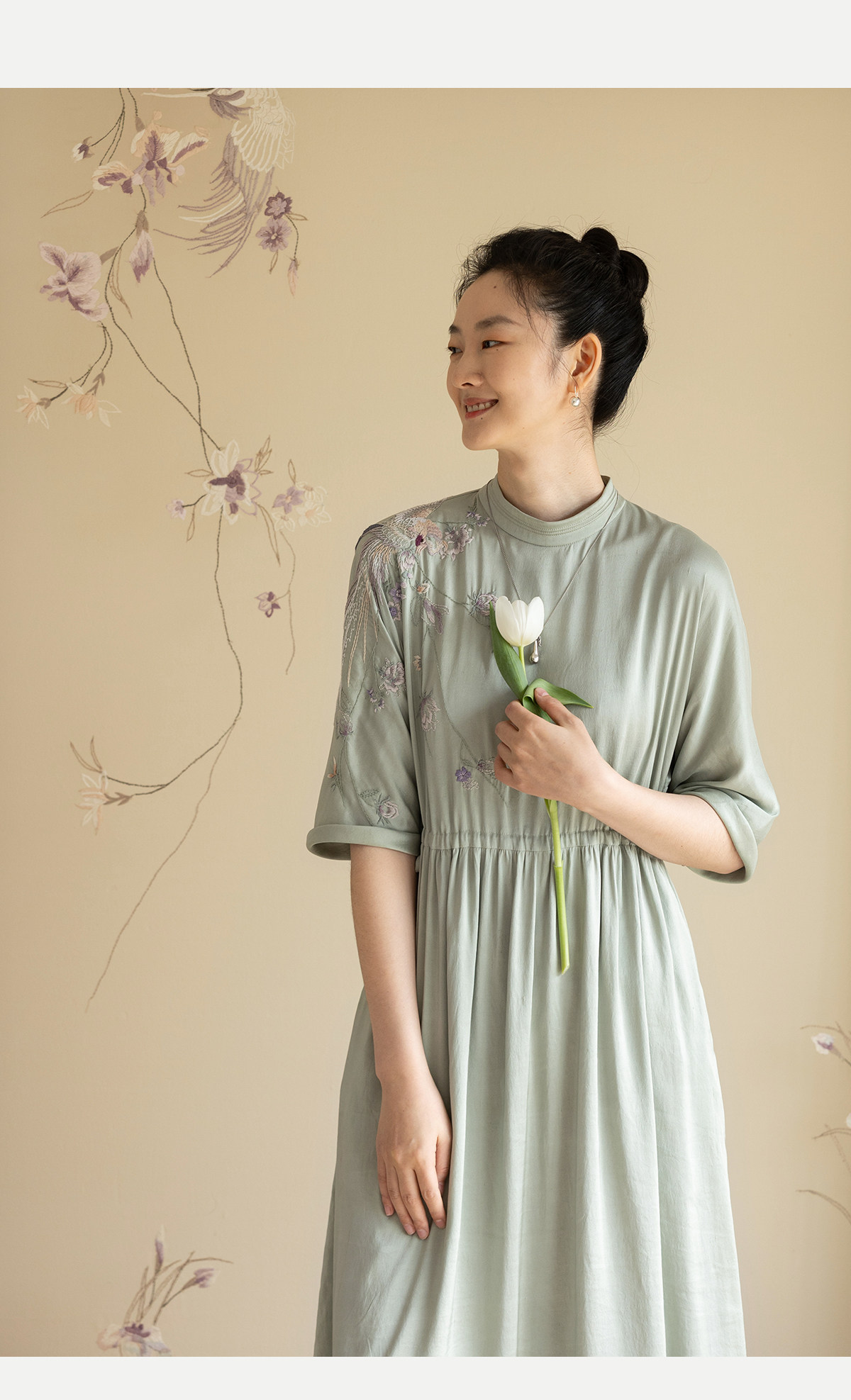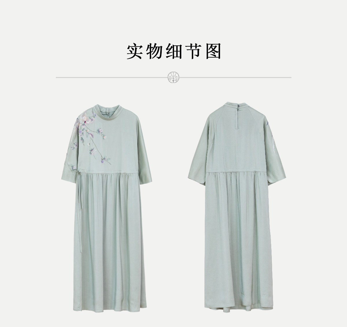牧衣游原创 22姆米重磅双宫绸重工手绣连衣裙桑蚕丝气质长裙 眠思