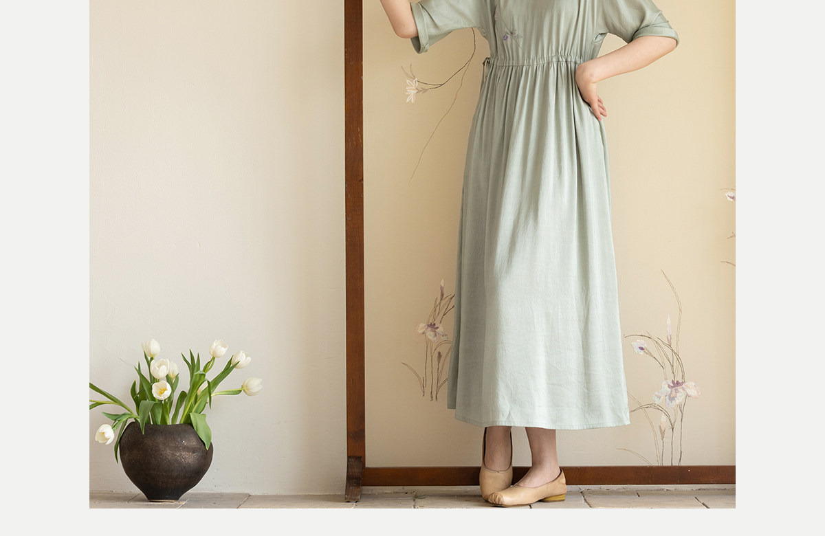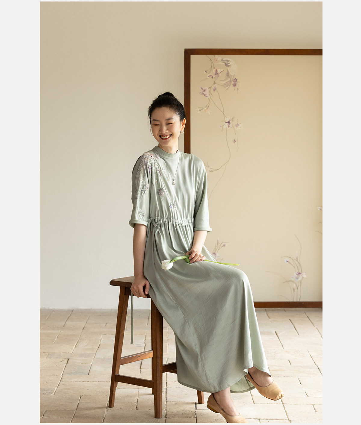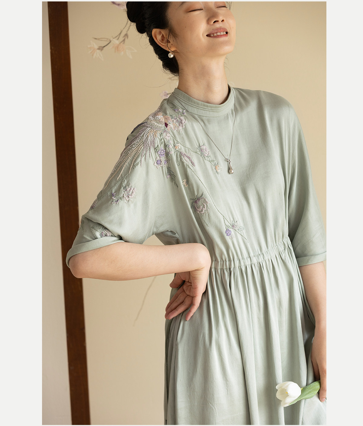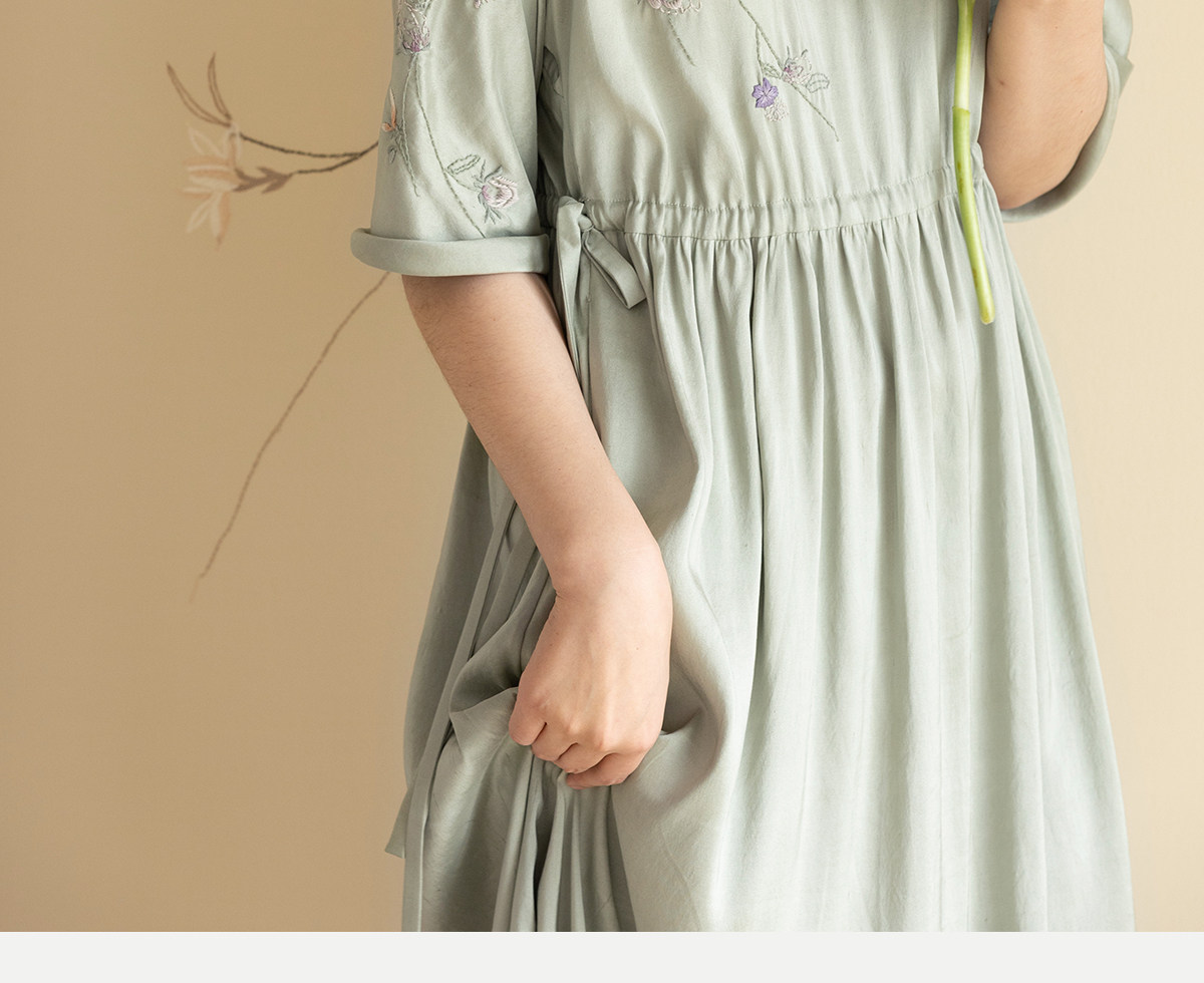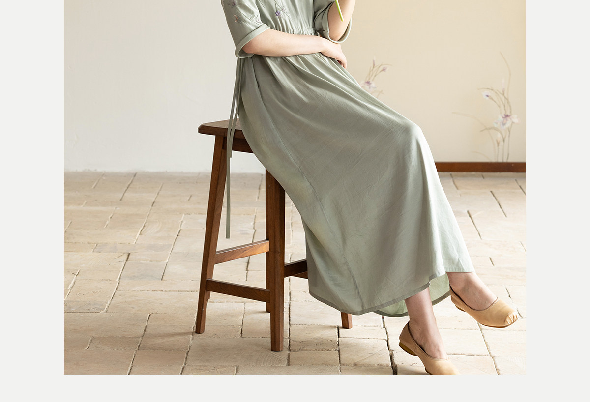 牧衣游原创 22姆米重磅双宫绸重工手绣连衣裙桑蚕丝气质长裙 眠思
