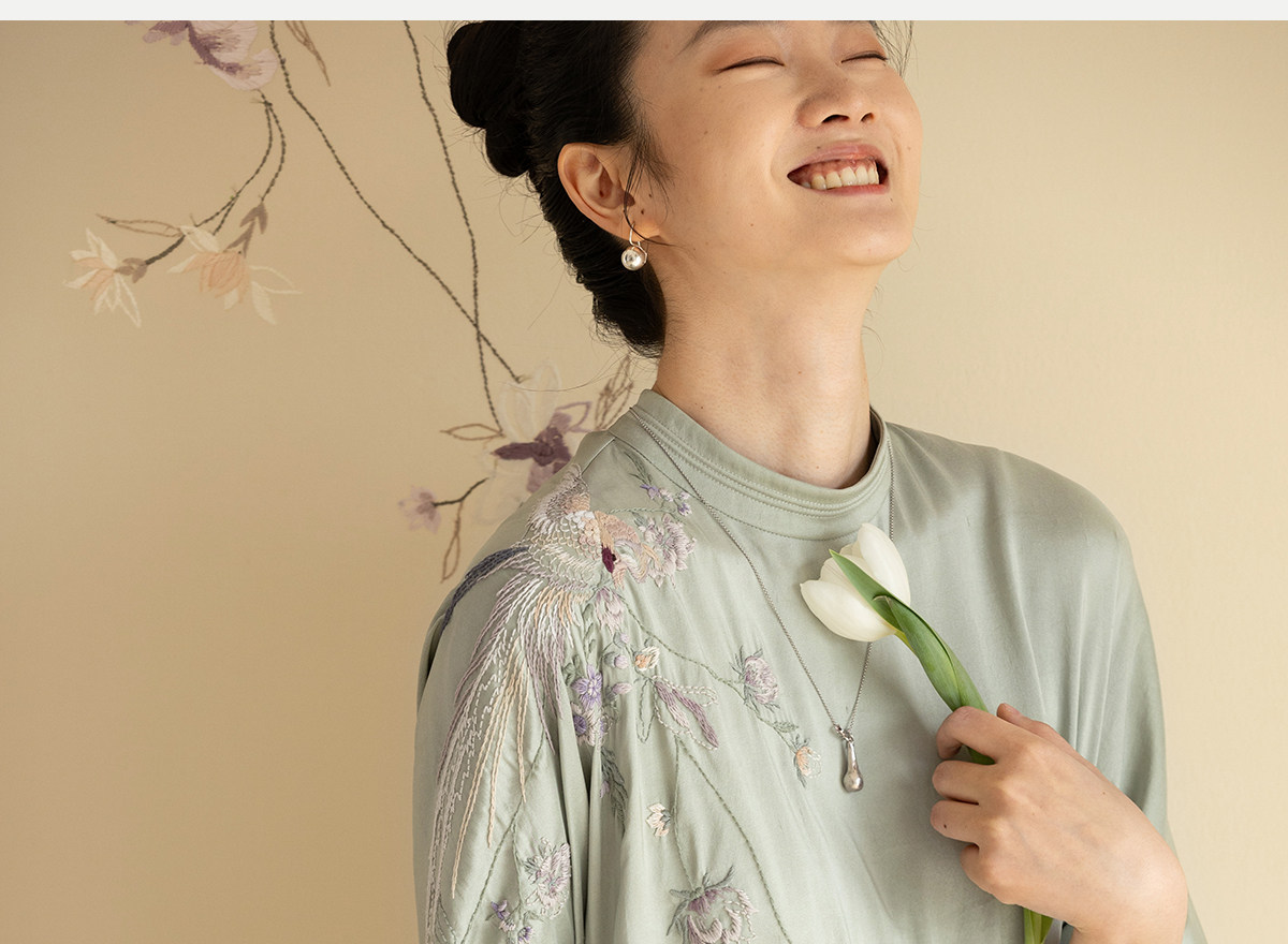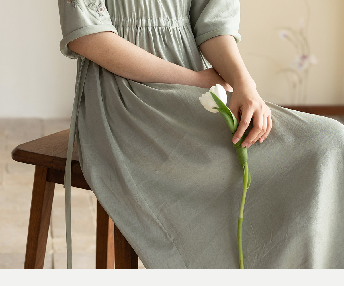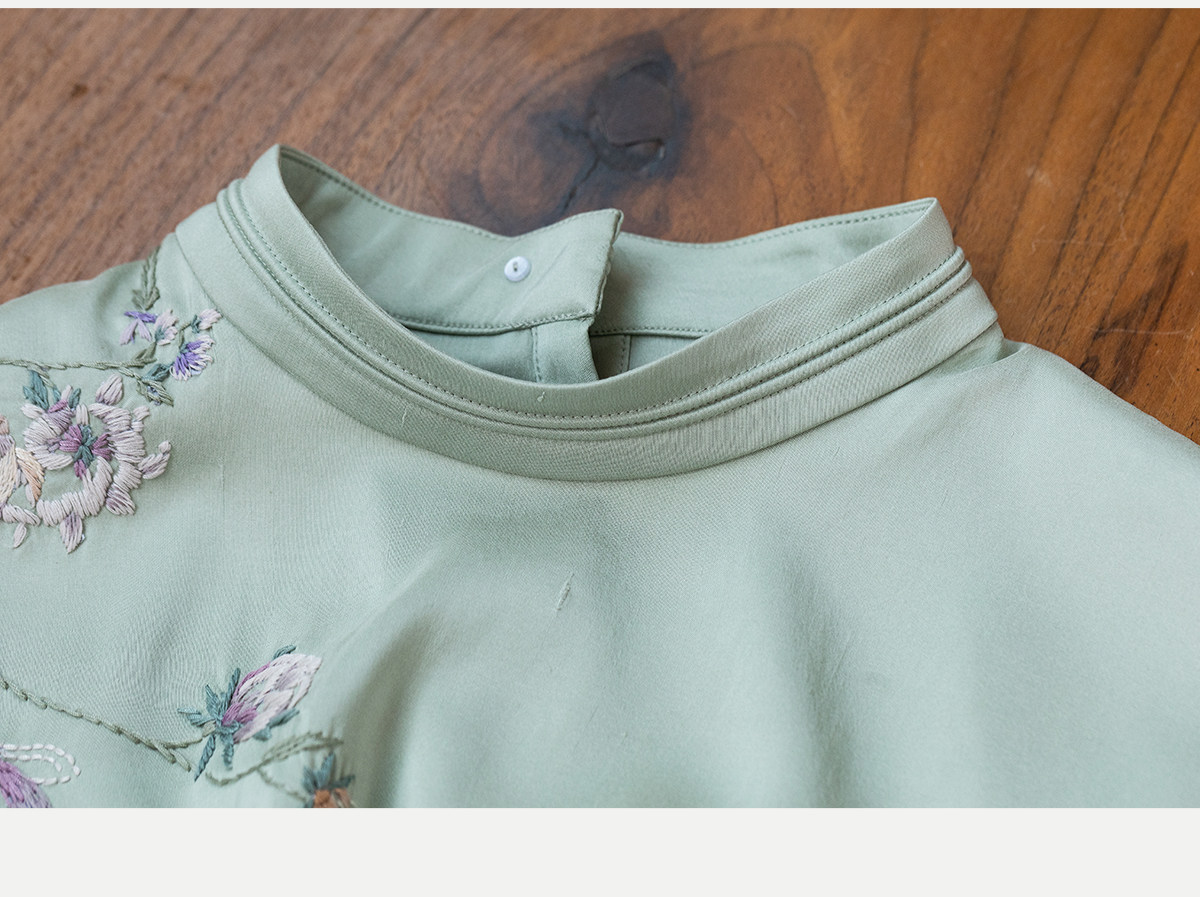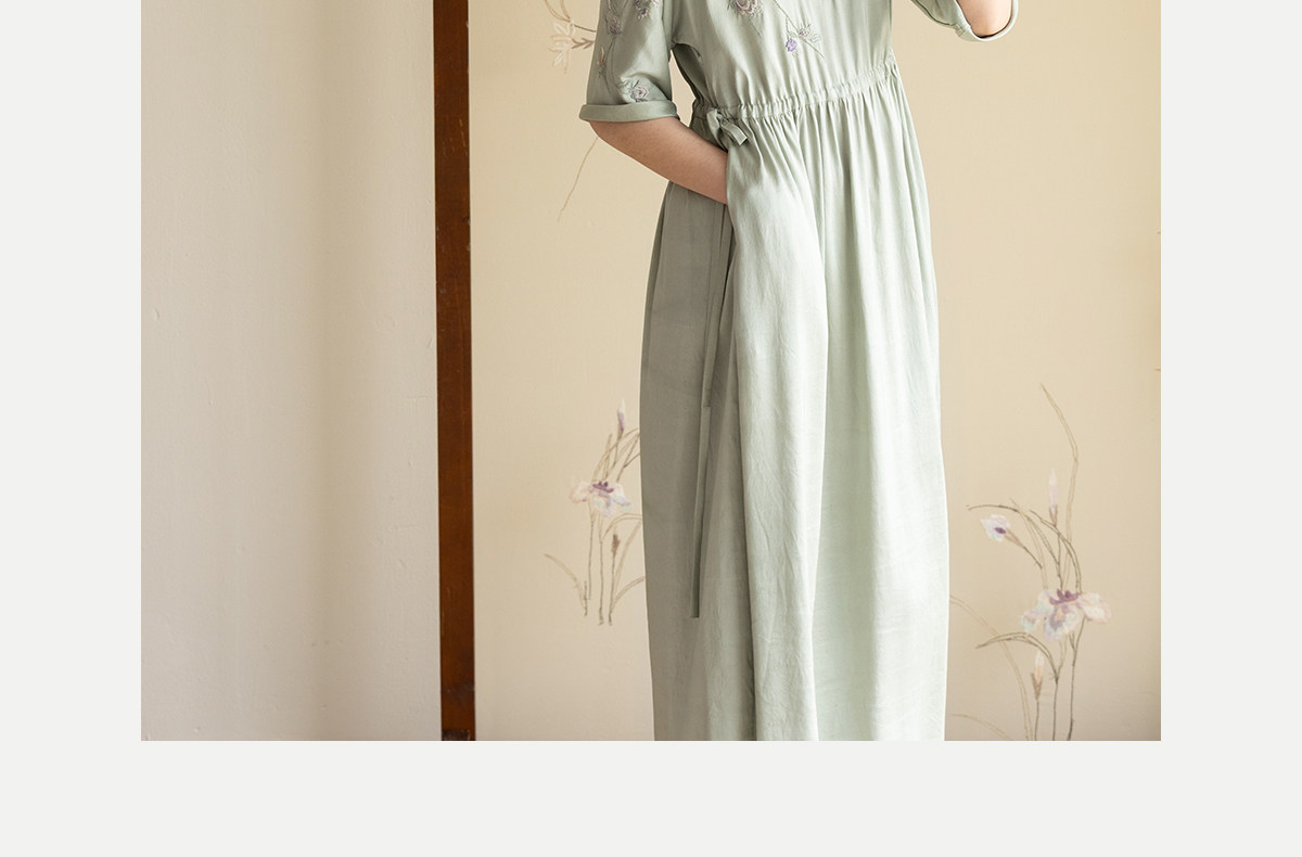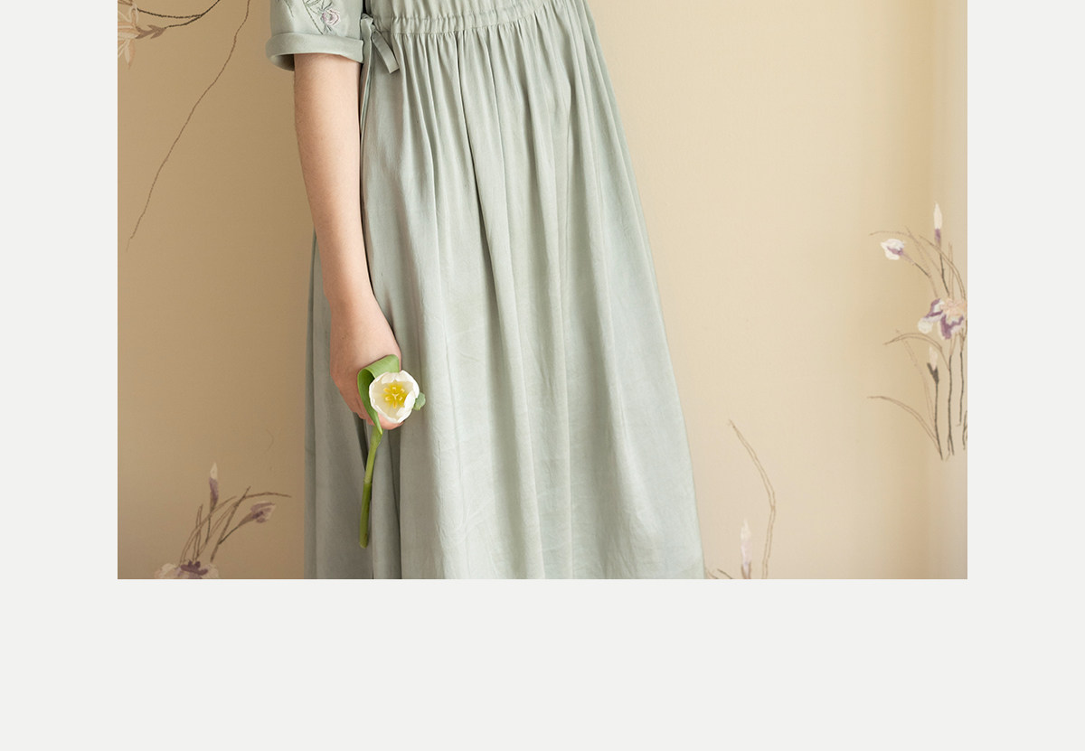 牧衣游原创 22姆米重磅双宫绸重工手绣连衣裙桑蚕丝气质长裙 眠思