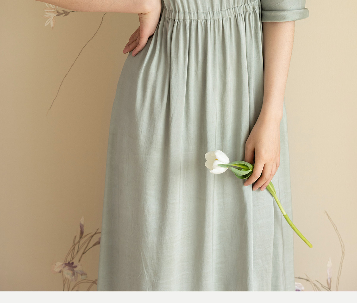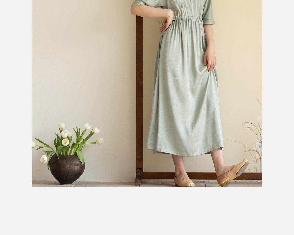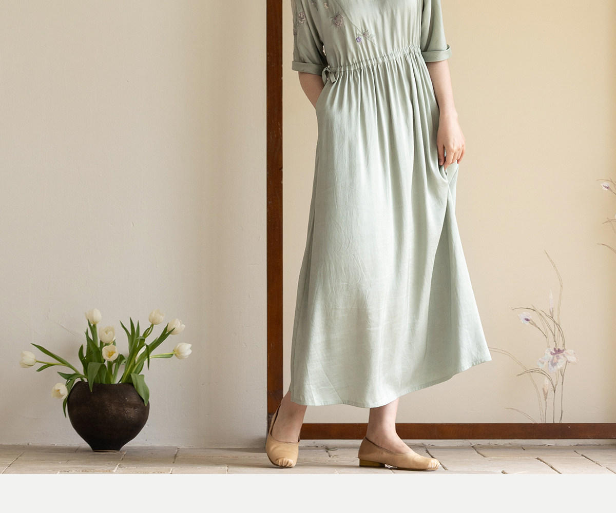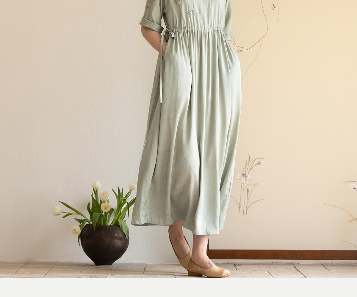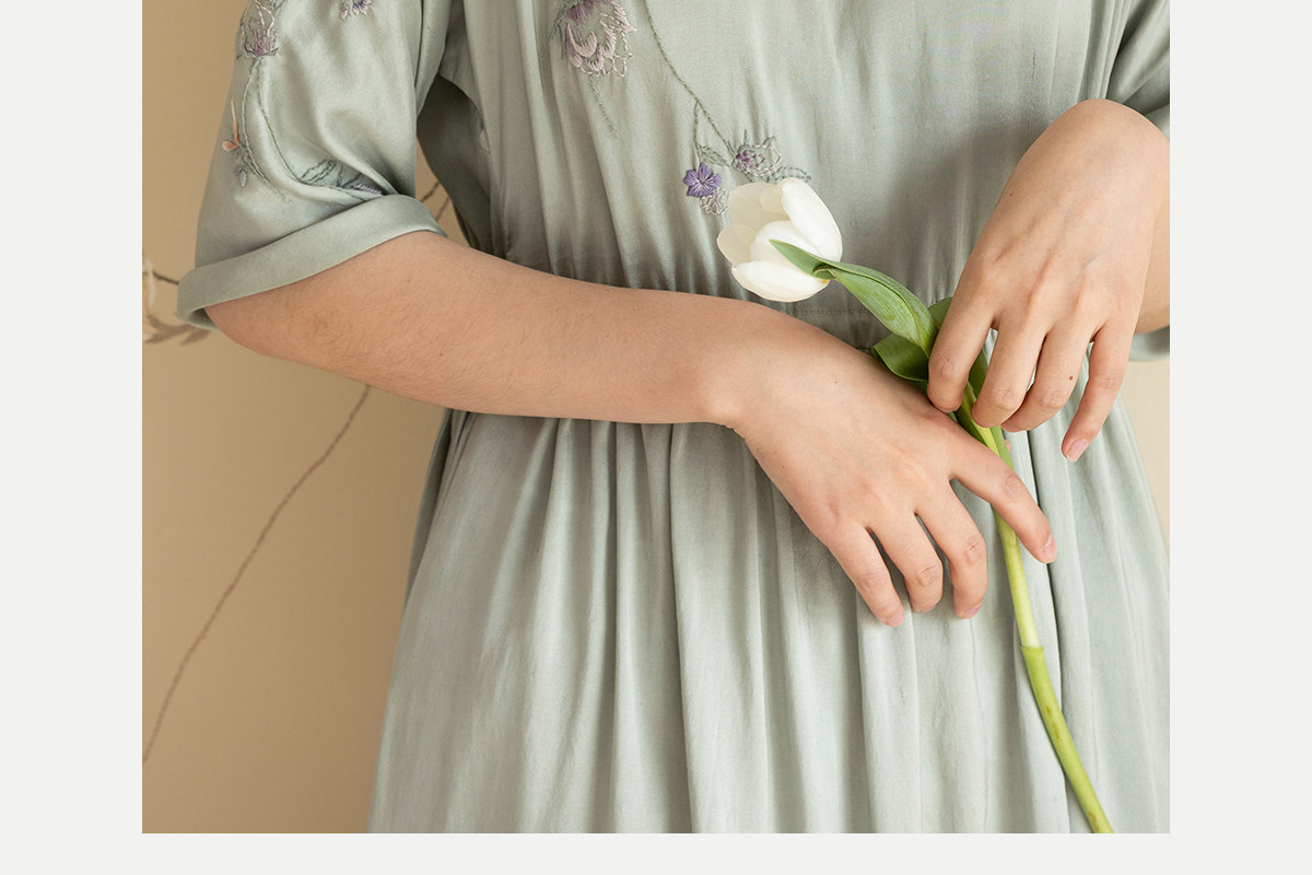 牧衣游原创 22姆米重磅双宫绸重工手绣连衣裙桑蚕丝气质长裙 眠思
