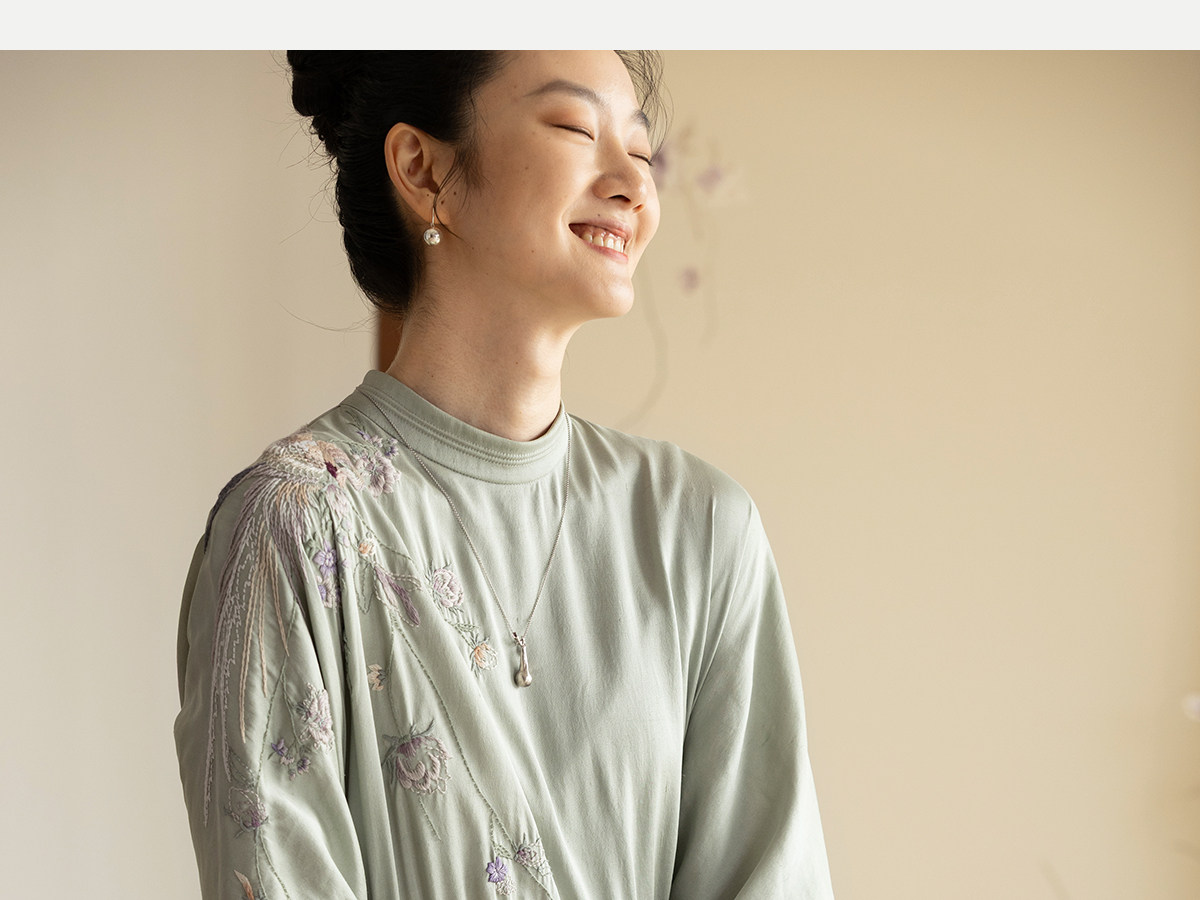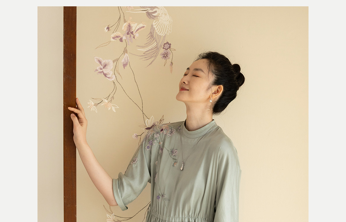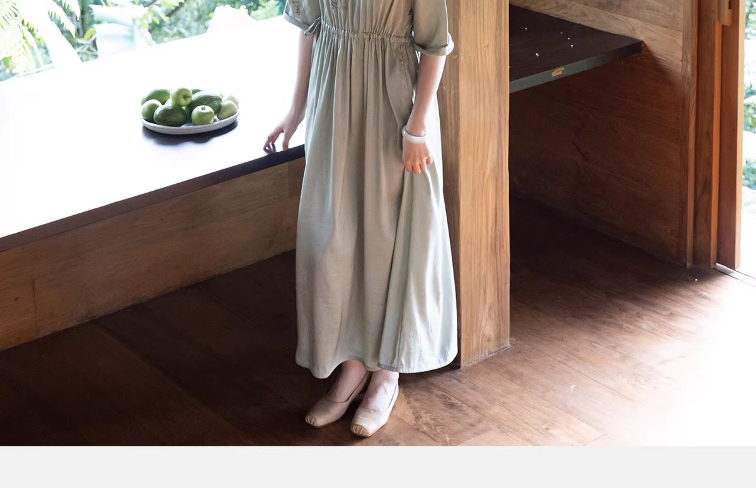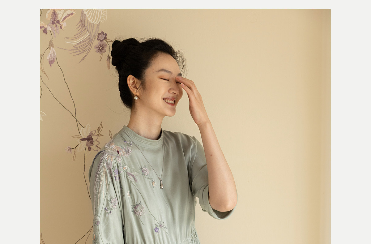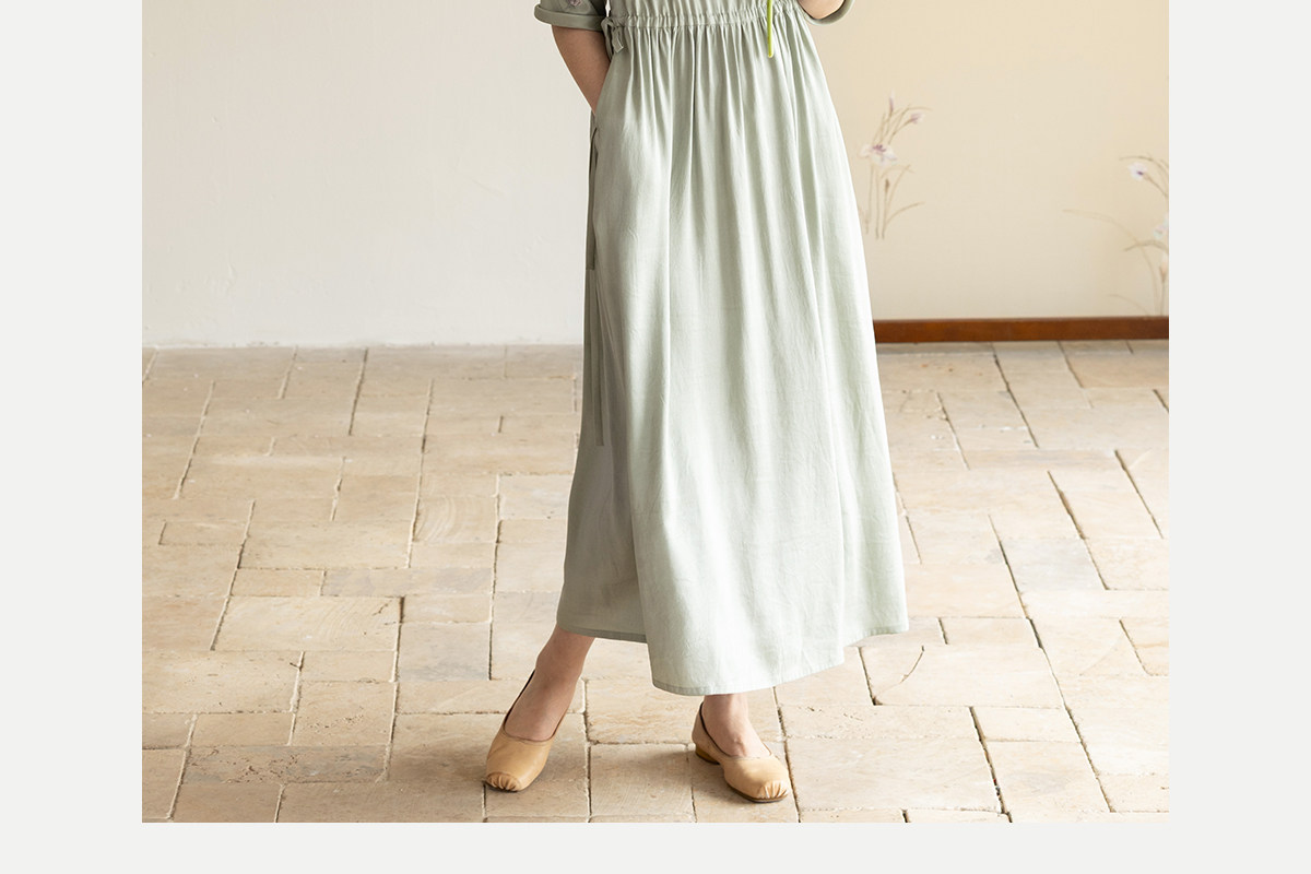 牧衣游原创 22姆米重磅双宫绸重工手绣连衣裙桑蚕丝气质长裙 眠思