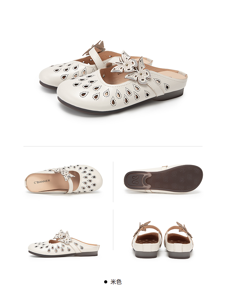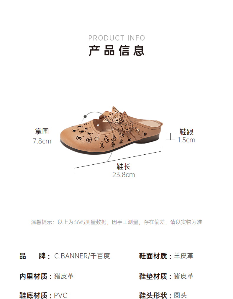 千百度平底拖鞋女季镂空蝴蝶结包头拖女鞋A24216810