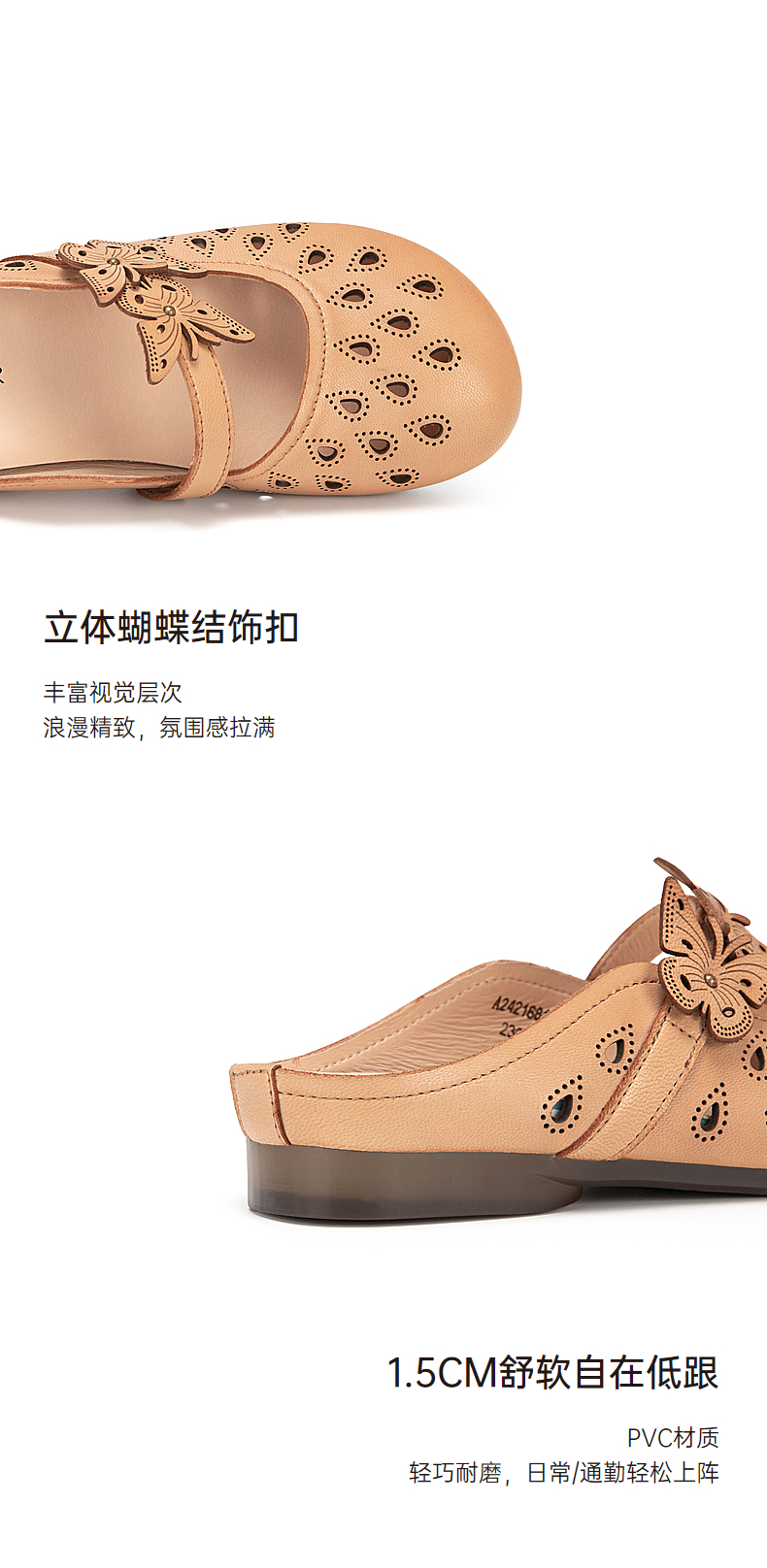 千百度夏季时装半凉气质肉桂卷静音鞋A23258205