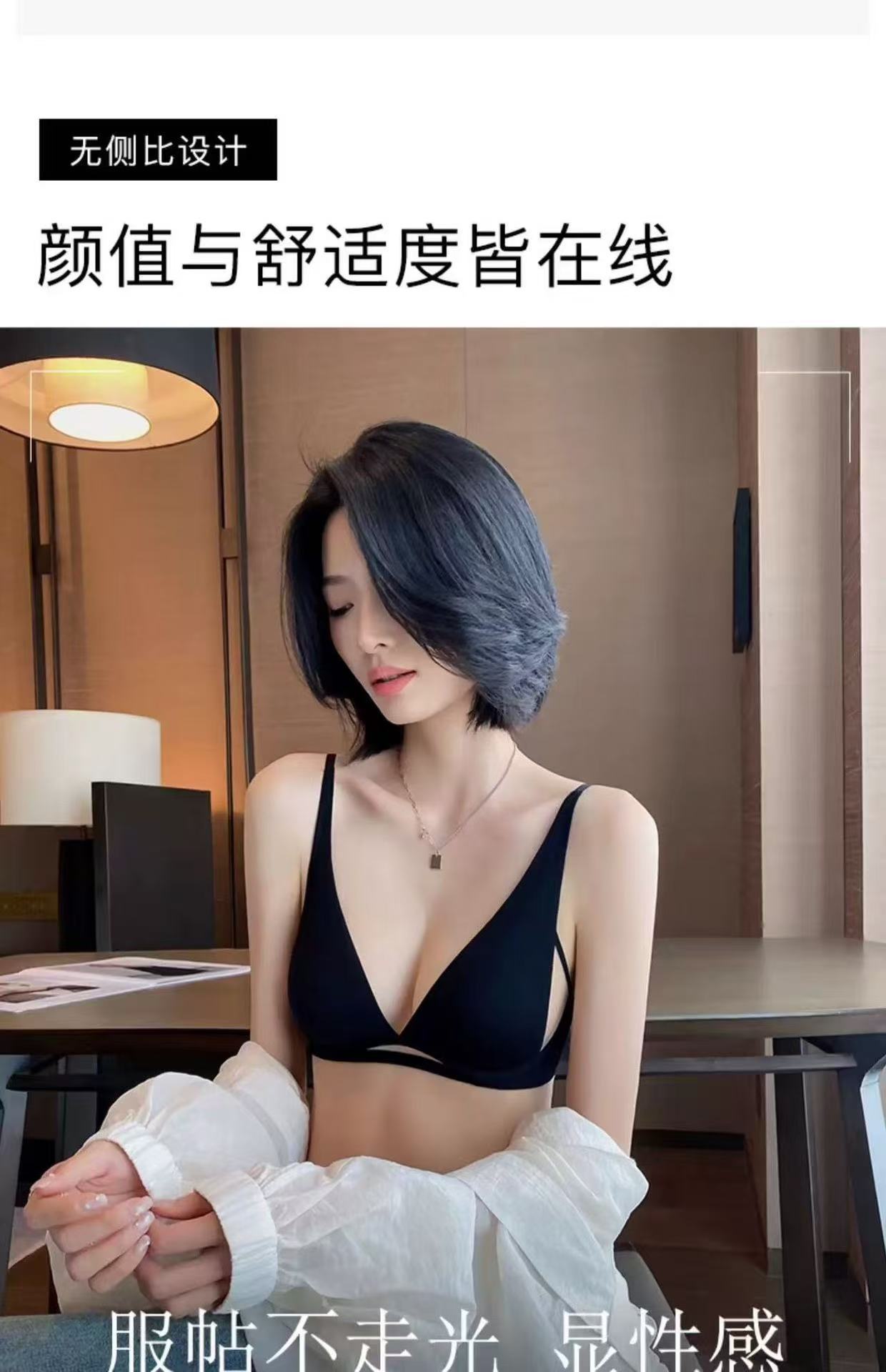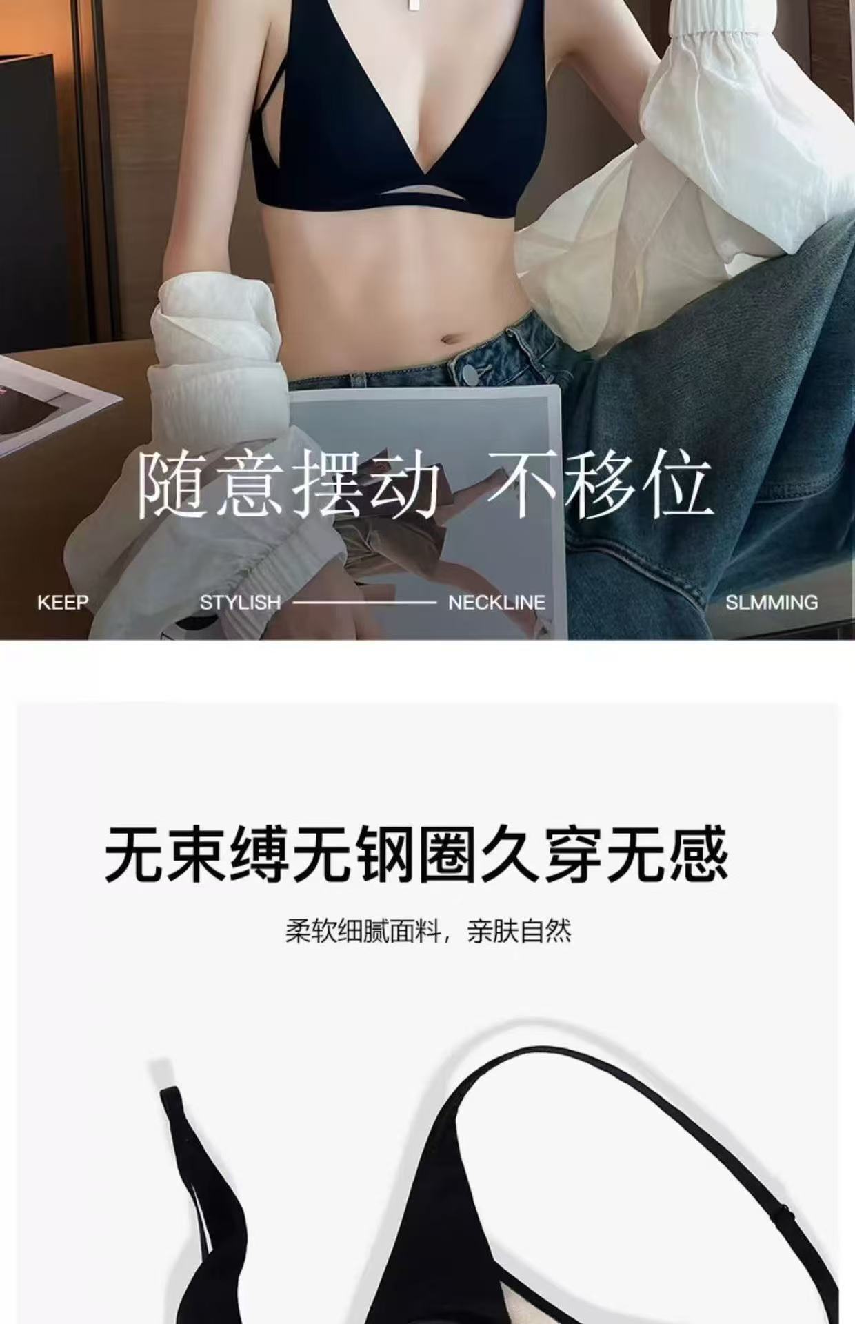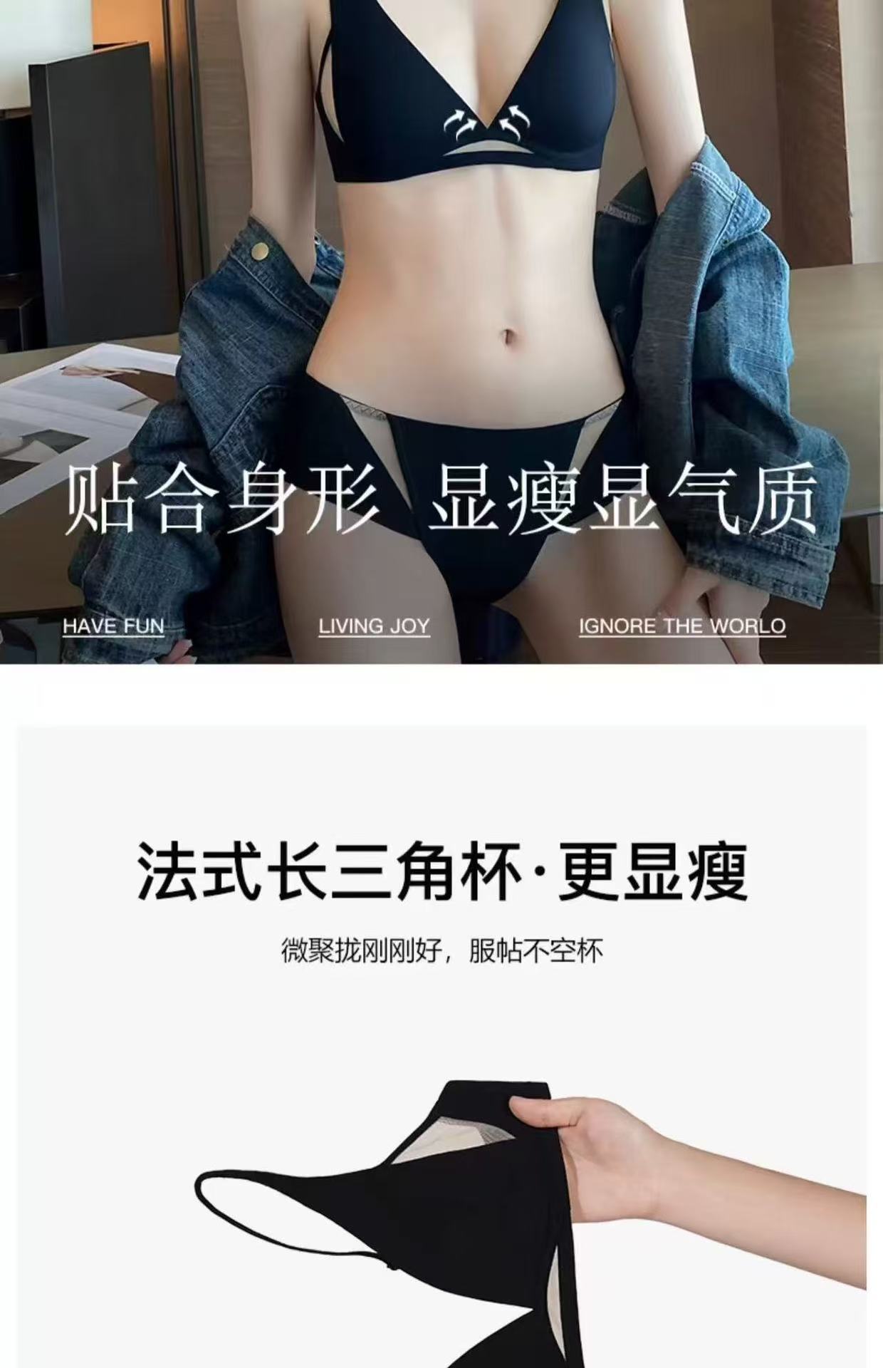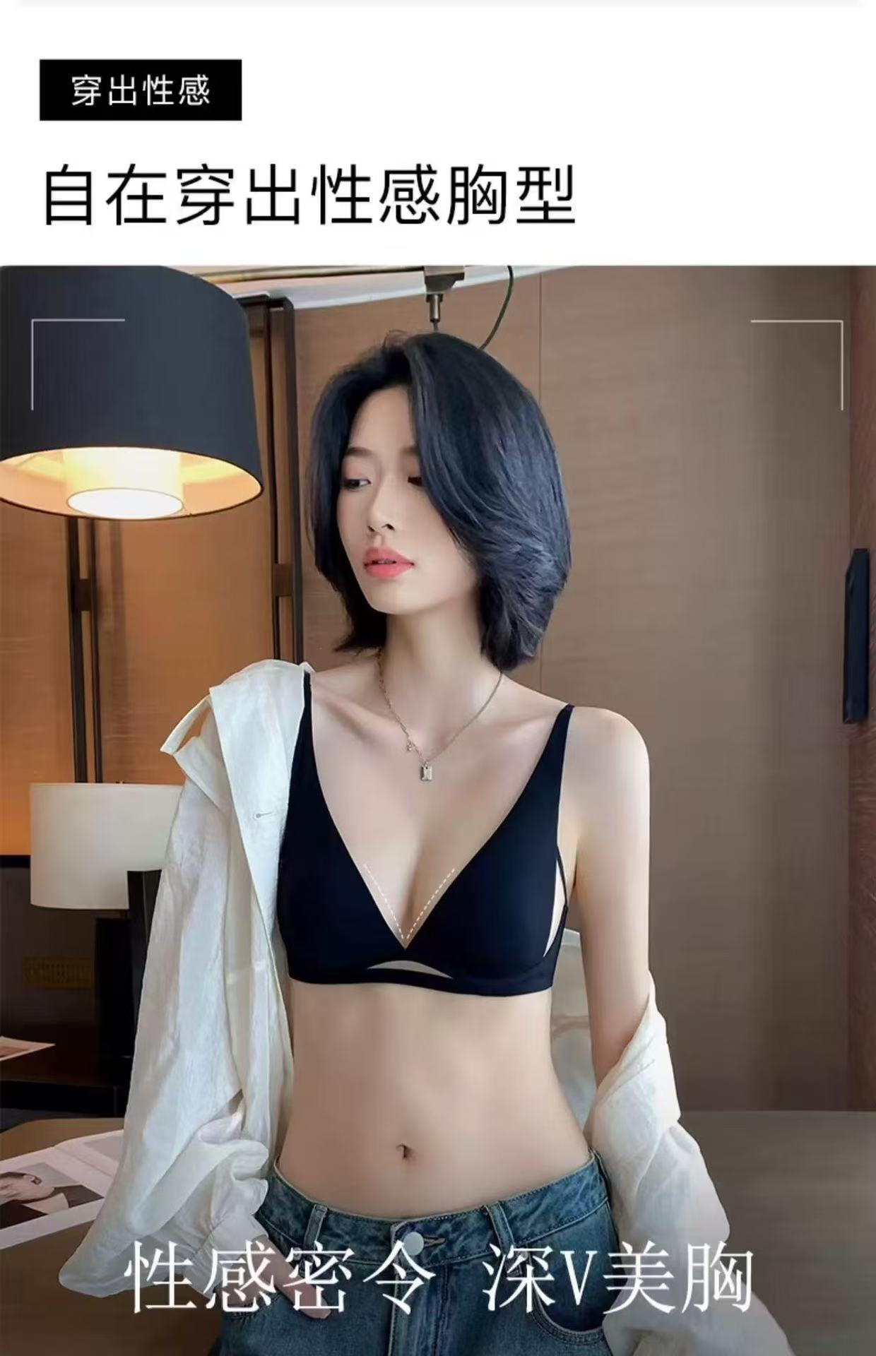 无痕新款透气法式内衣女兔耳杯无钢圈凉感舒适性感深v无痕文胸