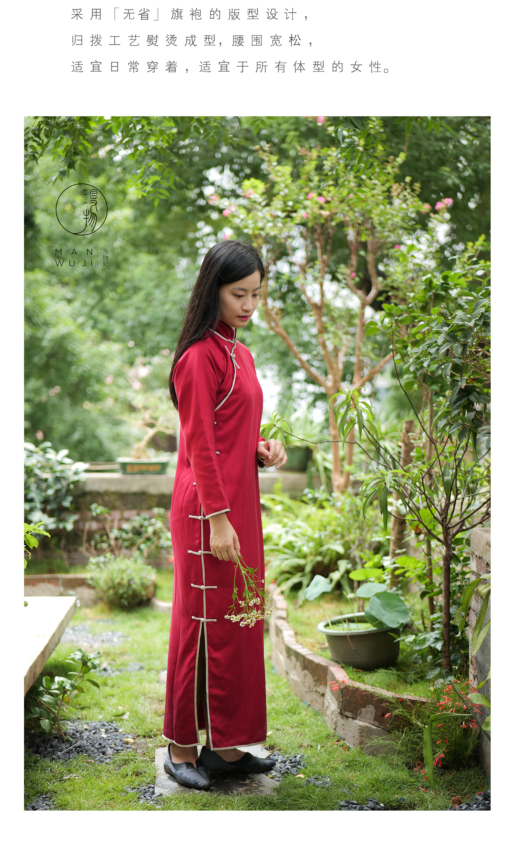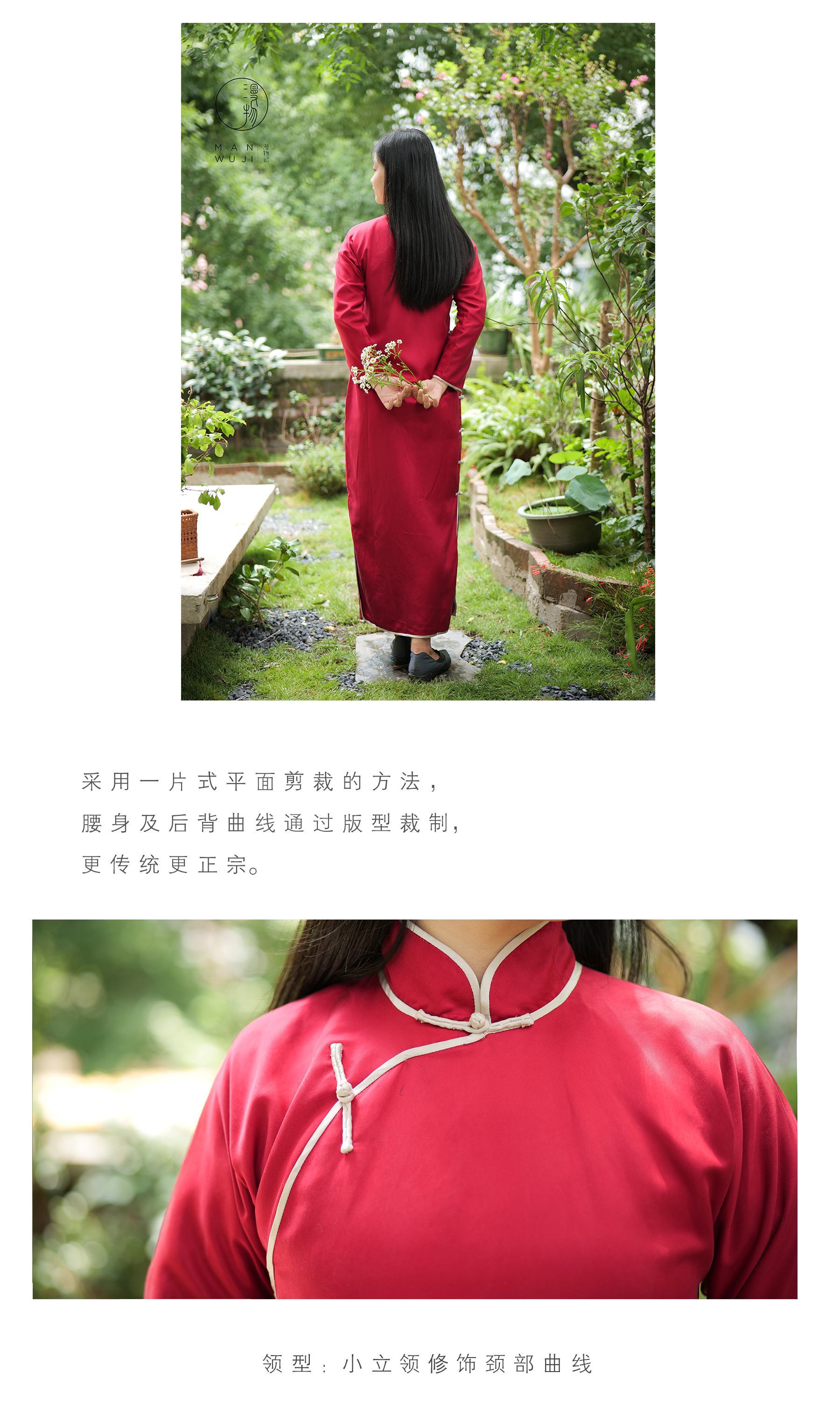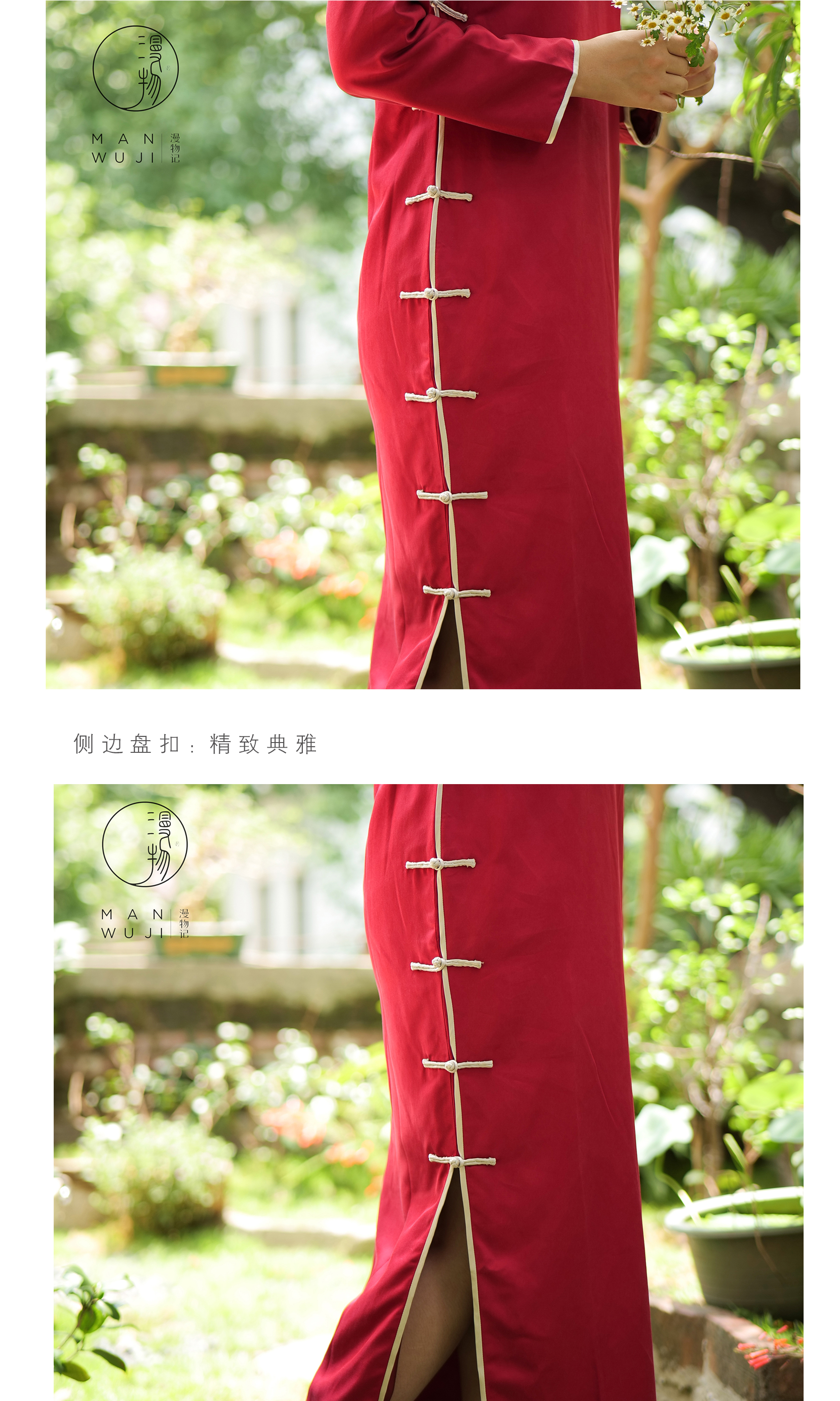 真丝剪花斜裁圆领旗袍MWJ-505