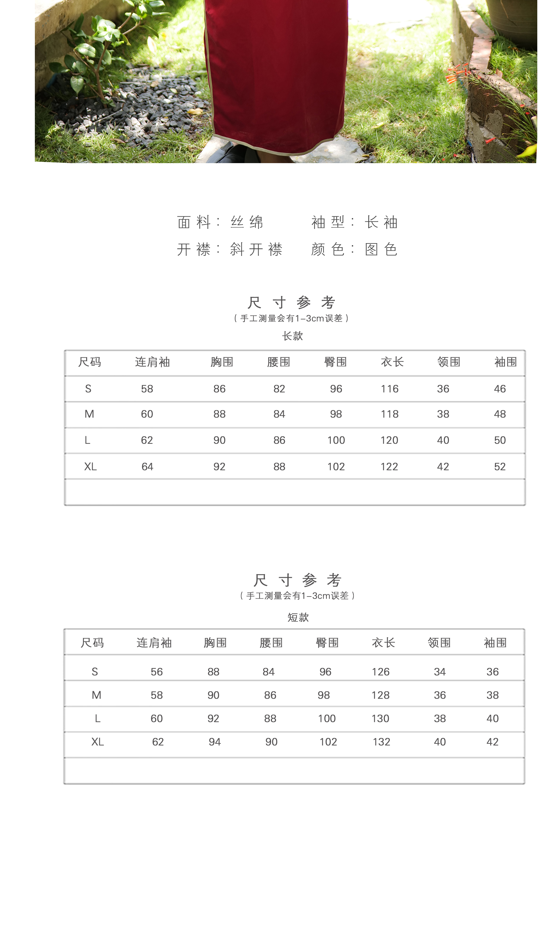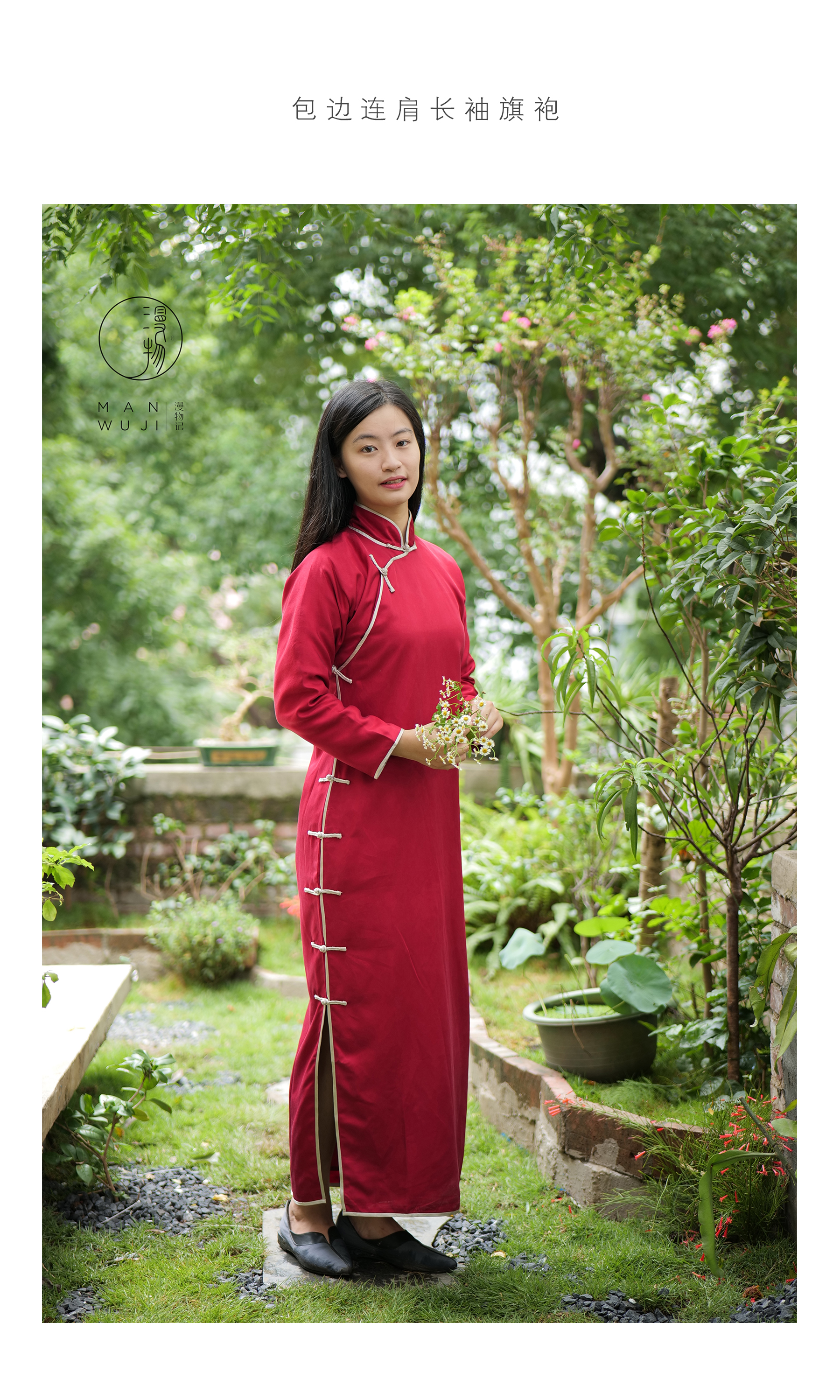 包边连肩长袖旗袍