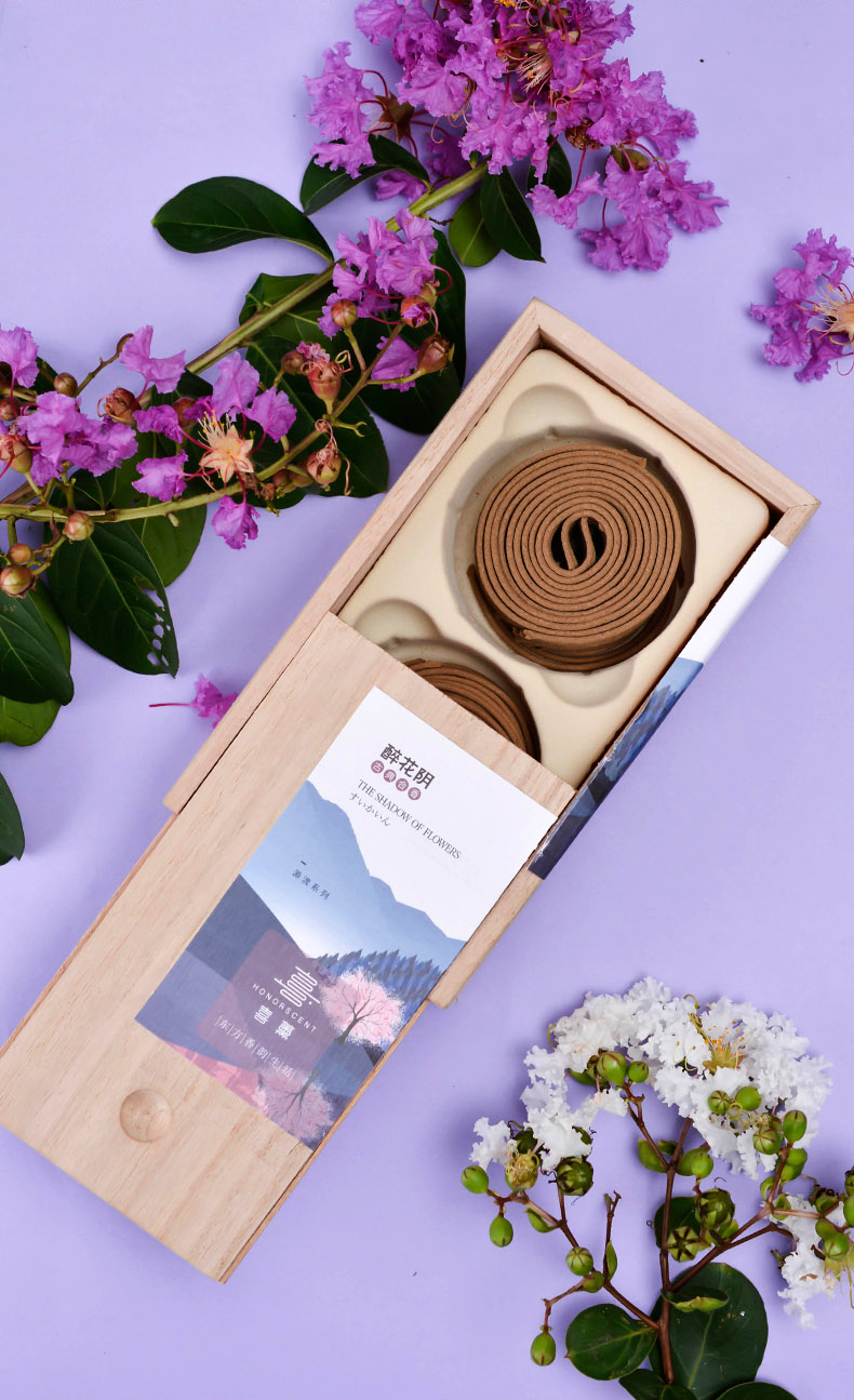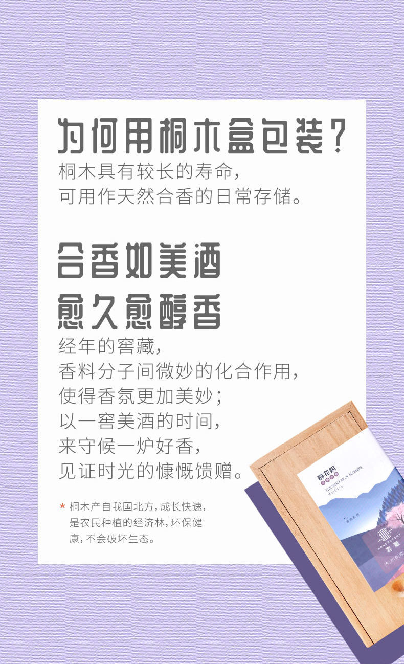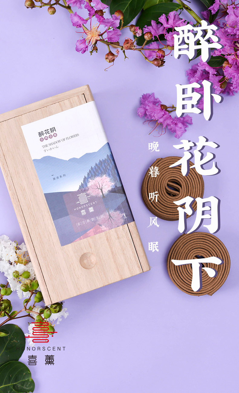醉花阴,古韵新调的新中式合香,以沉、檀为主料,以陈皮、玫瑰等复构调和出花香辛辣调,营造醉眠花荫下的沉浸香氛。
