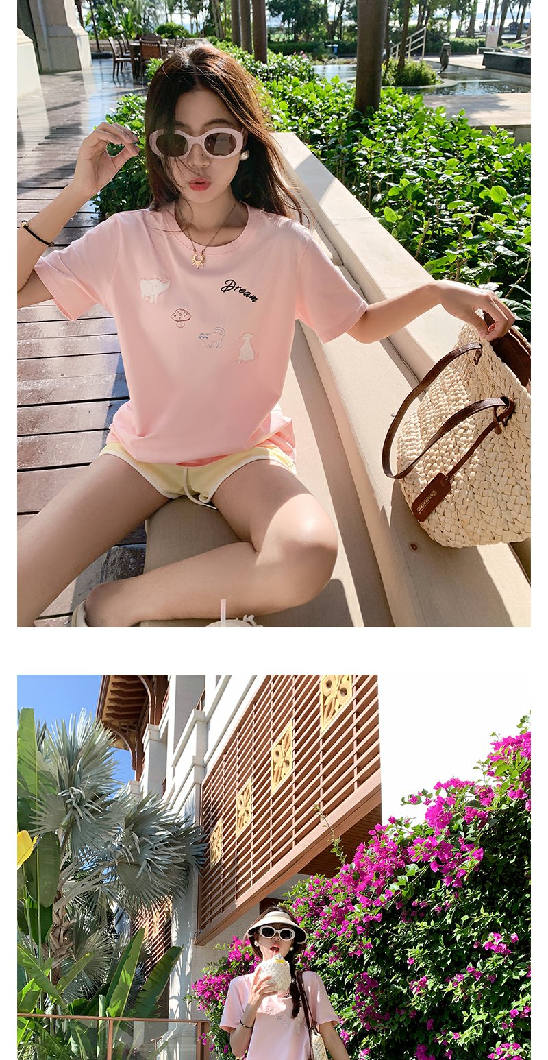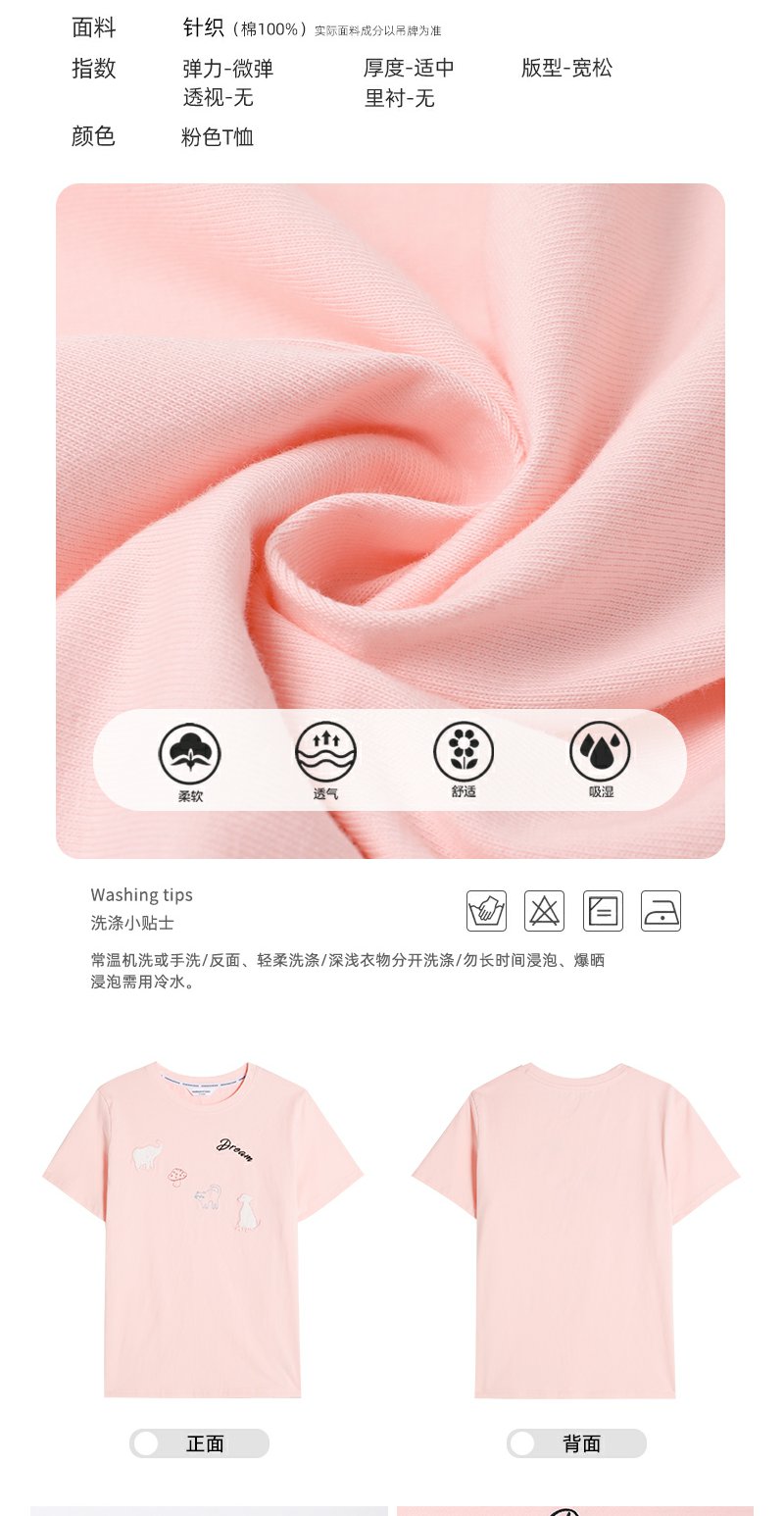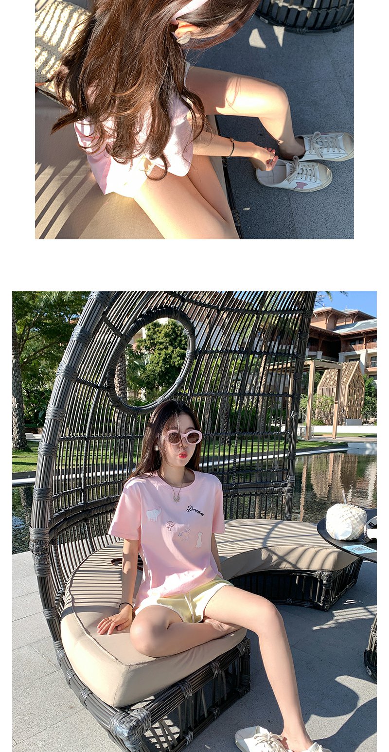 <曾小咸推荐>韩系卡通动物刺绣粉色短袖T恤