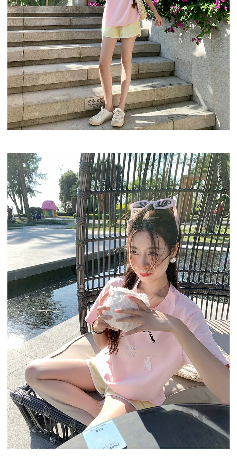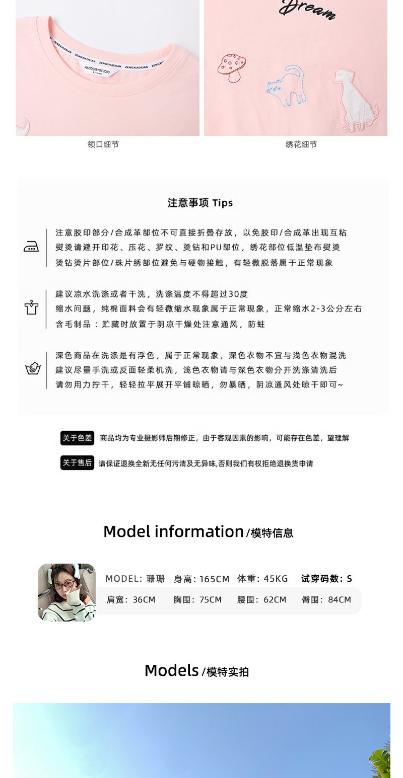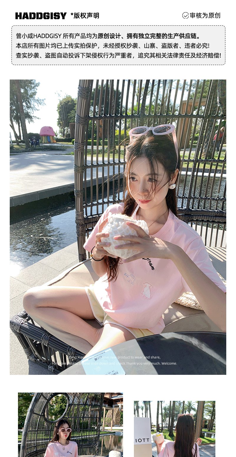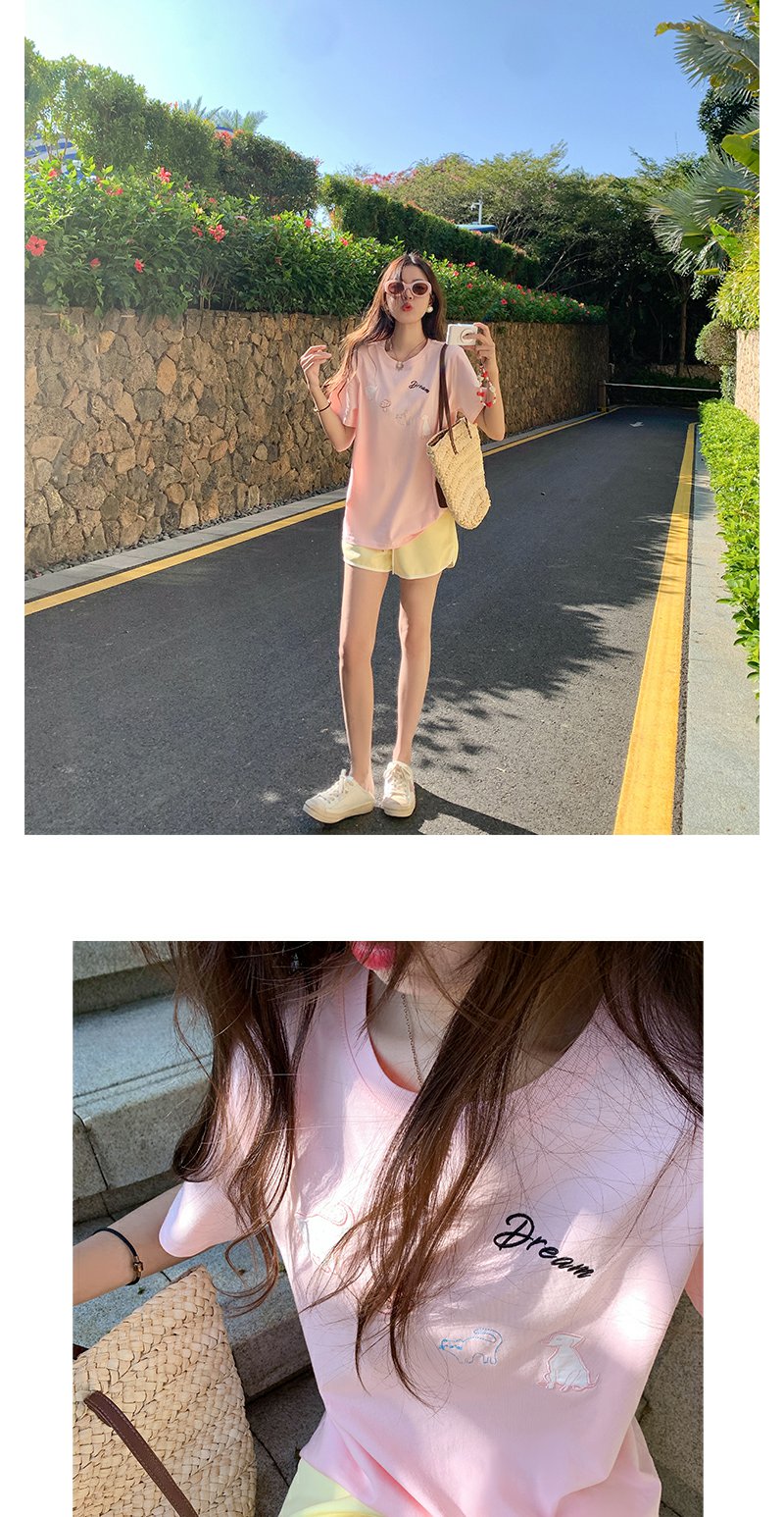 <曾小咸推荐>韩系卡通动物刺绣粉色短袖T恤