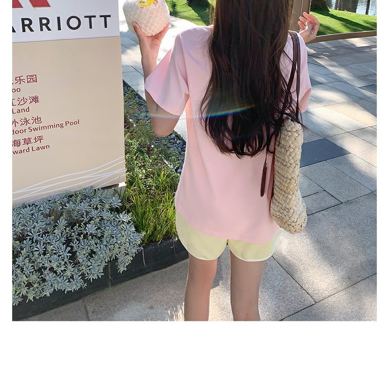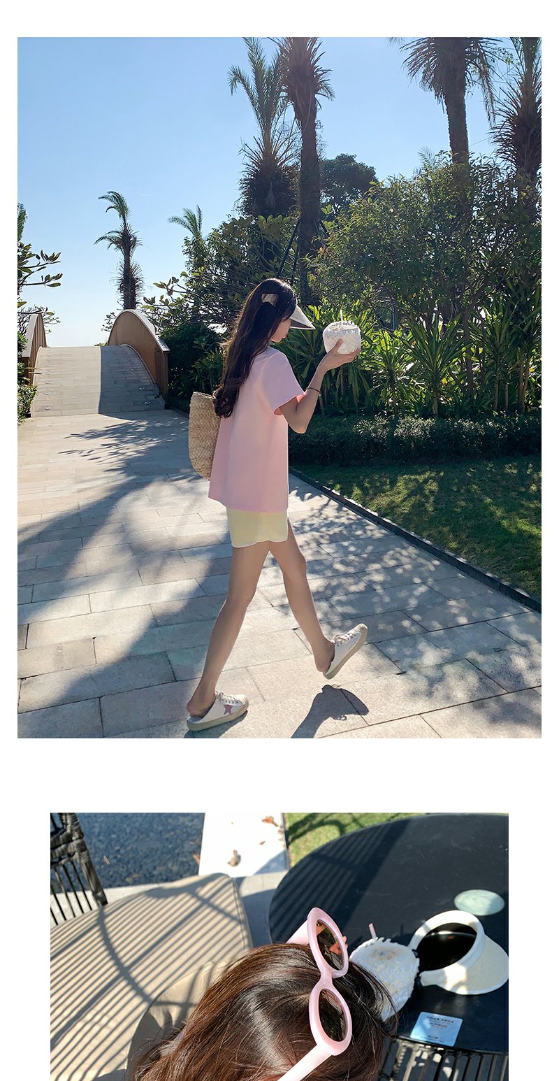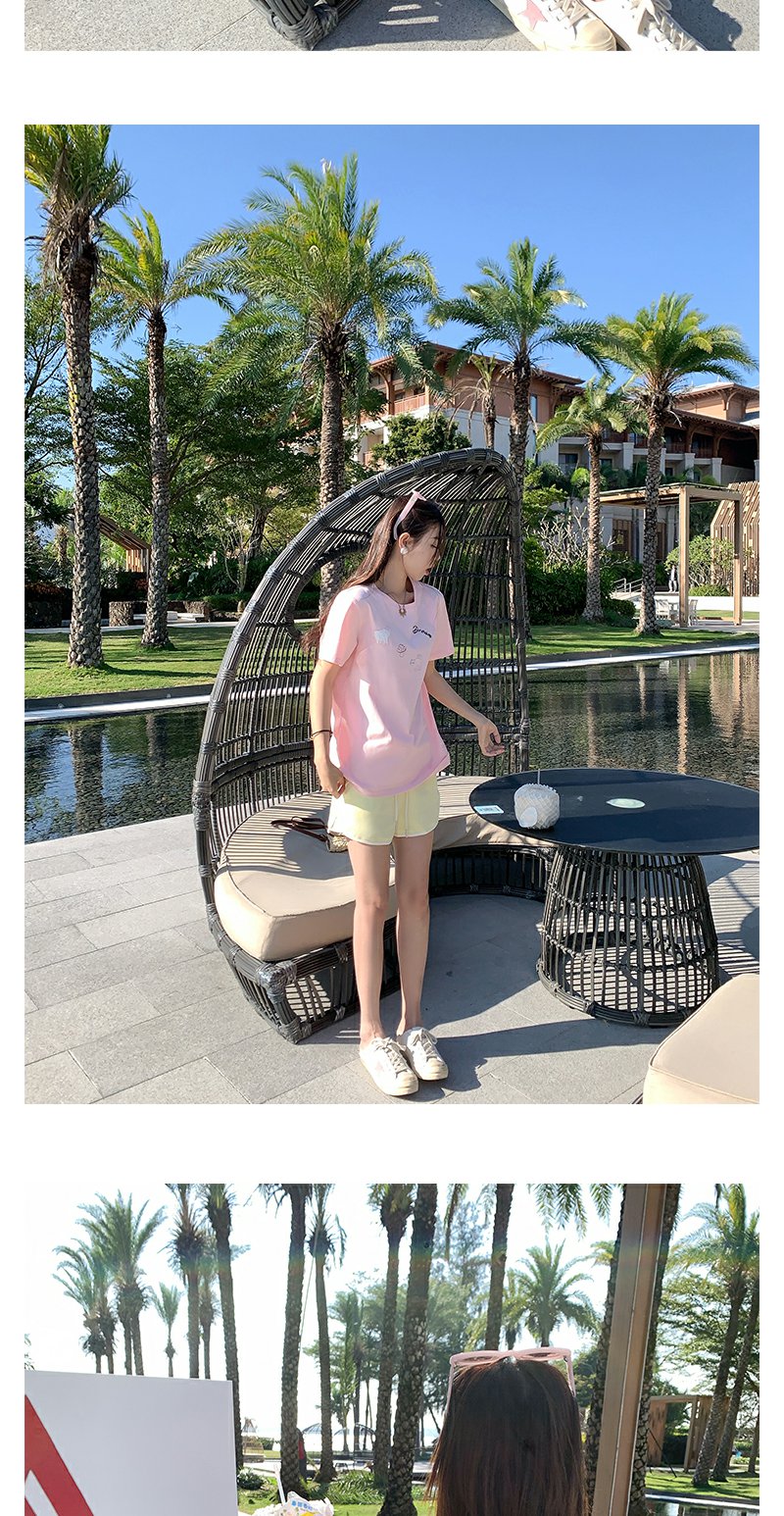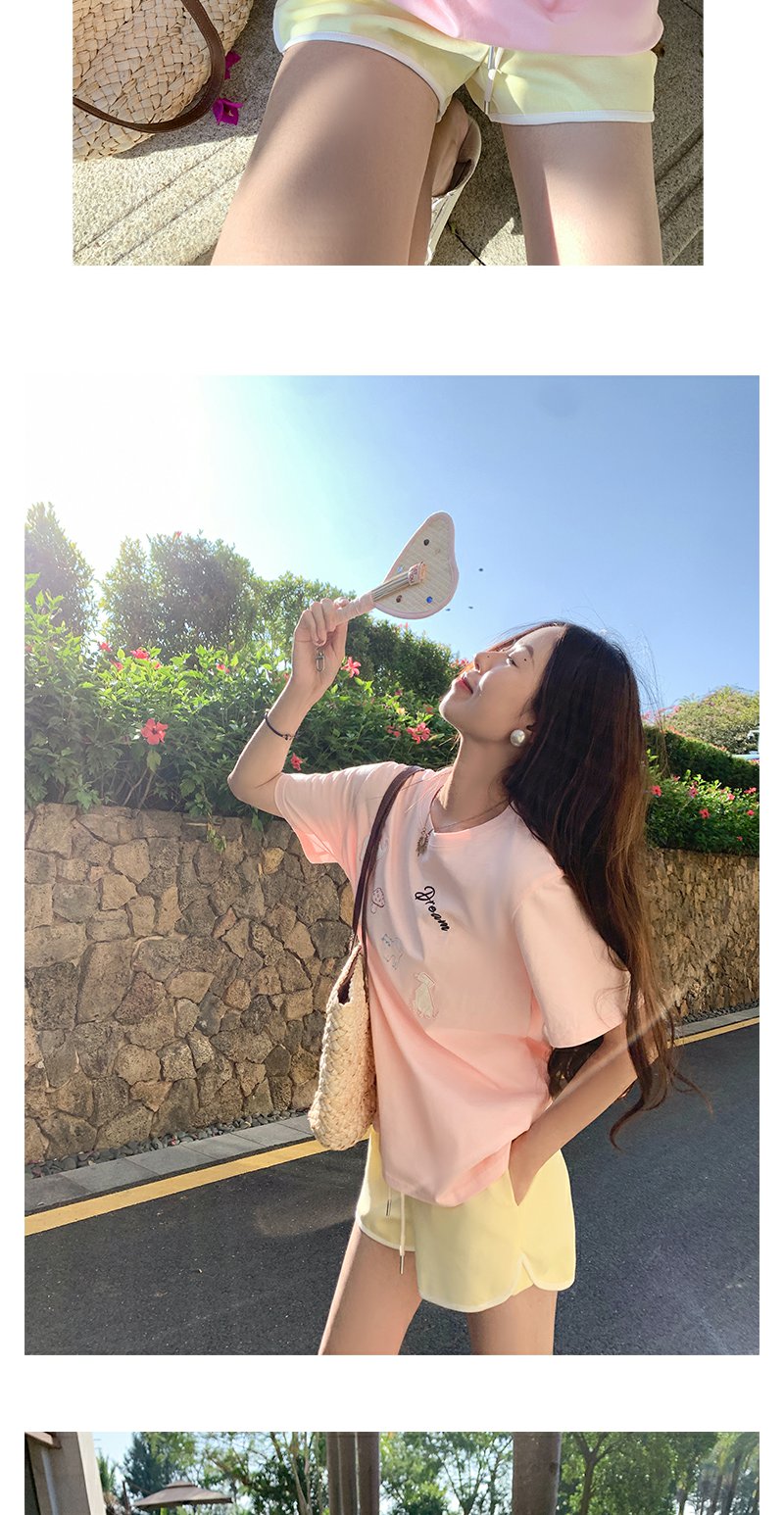 <曾小咸推荐>韩系卡通动物刺绣粉色短袖T恤