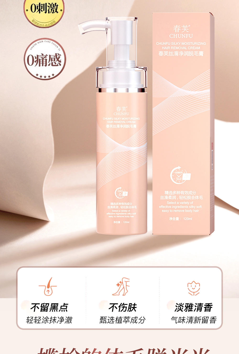 【新品!第二件半价!】夏季福利!刮板免费送!润泽肌肤,摆脱烦恼,春芙丝滑净润脱毛膏,温和无刺激,多部位通用,拥抱真正的美丽,让你焕然一新!