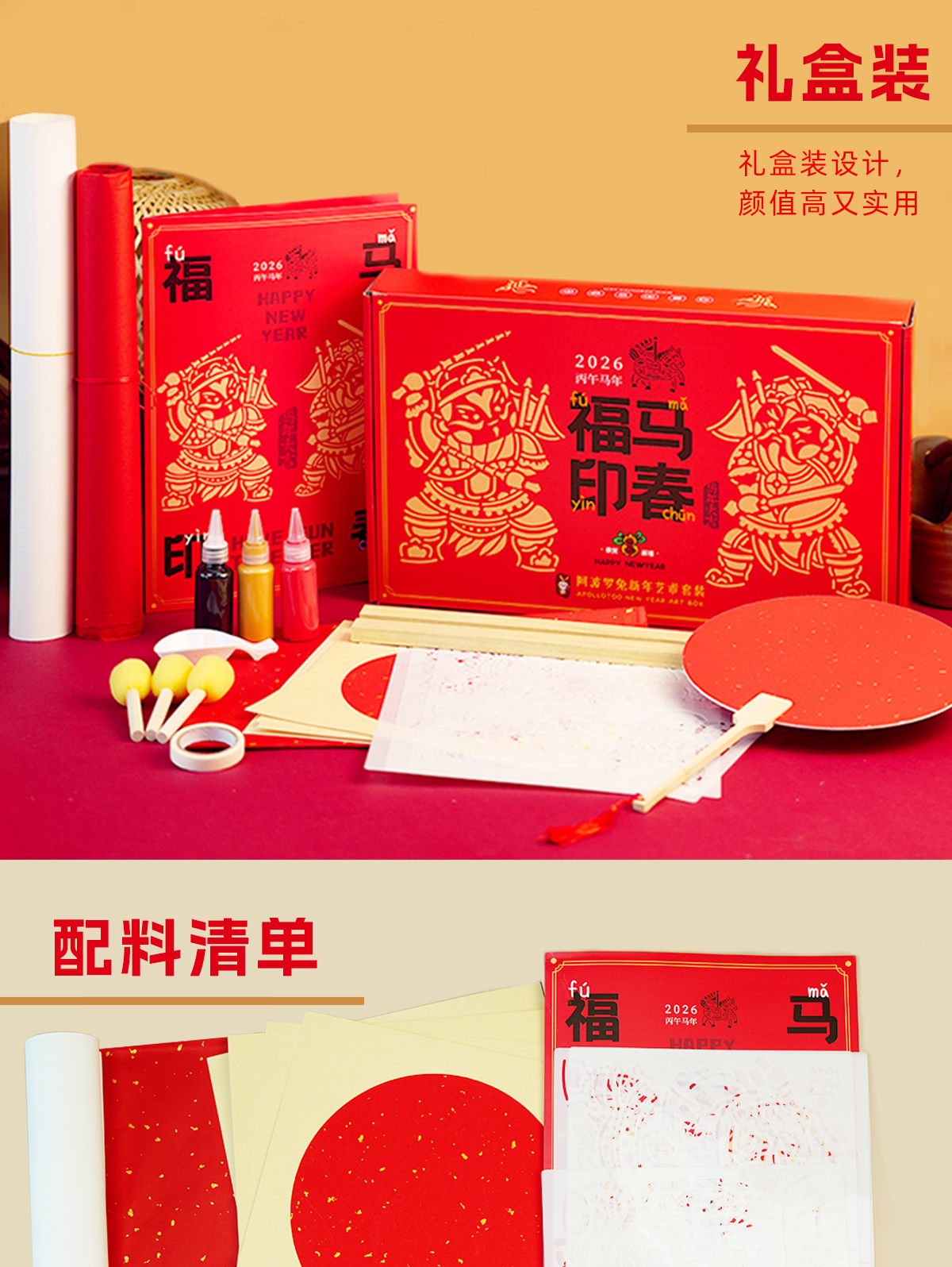 阿波罗兔福马印春【漏印】新年手工礼盒2026年春节福字玩具送男女孩新年礼物