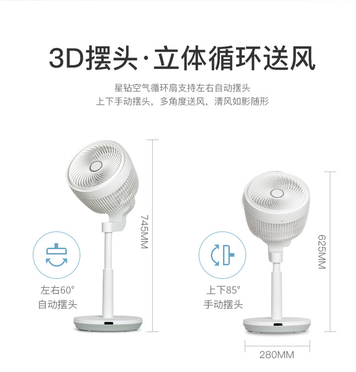 星钻空气循环扇家用节能静音落地扇涡轮对流台立式电风扇FSF-C