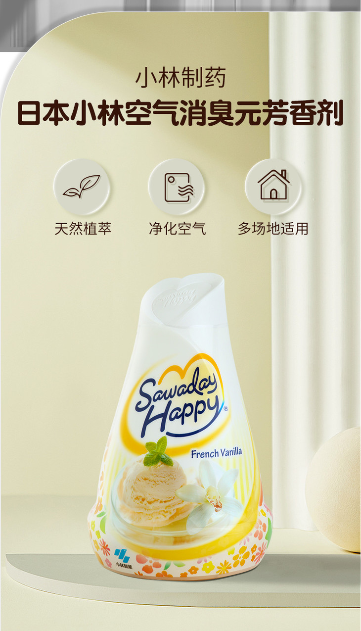 日本小林消臭元室内卧室厕所除臭衣物芳香空气清新剂固体香薰(心形玫瑰香) 150g(050675)