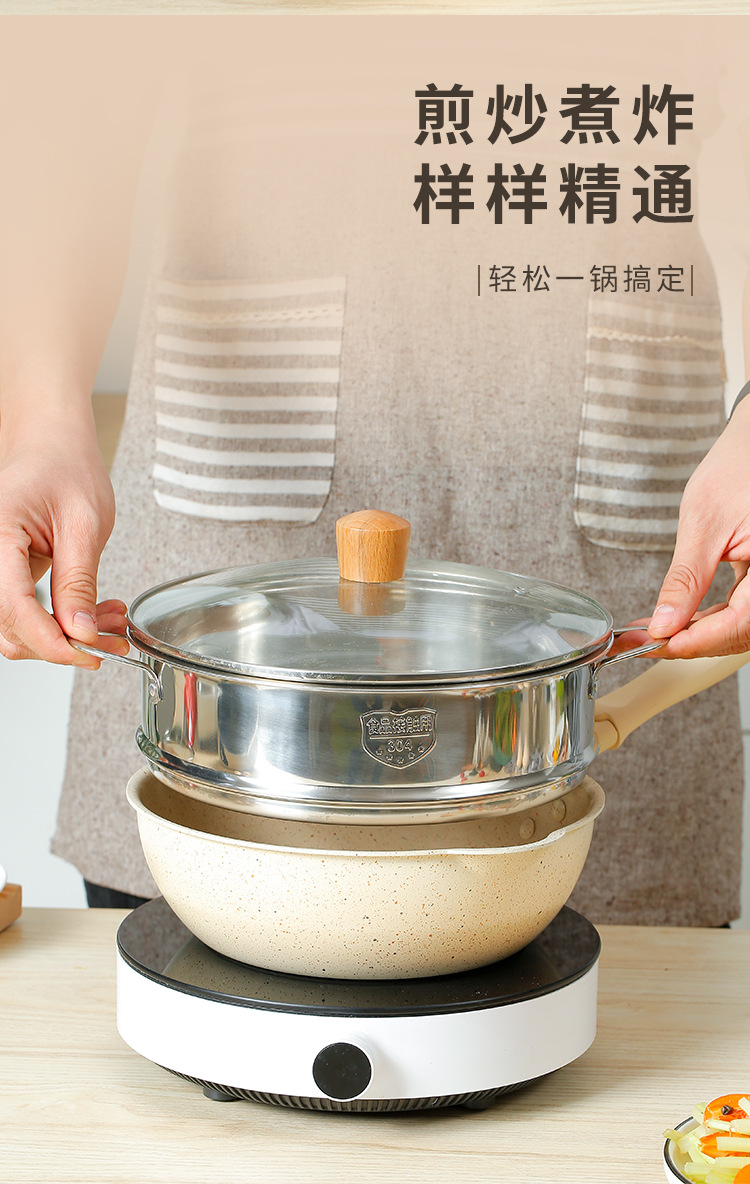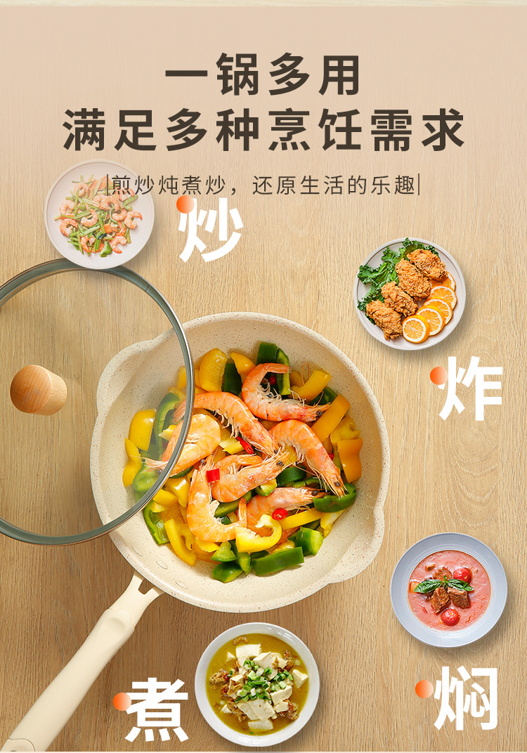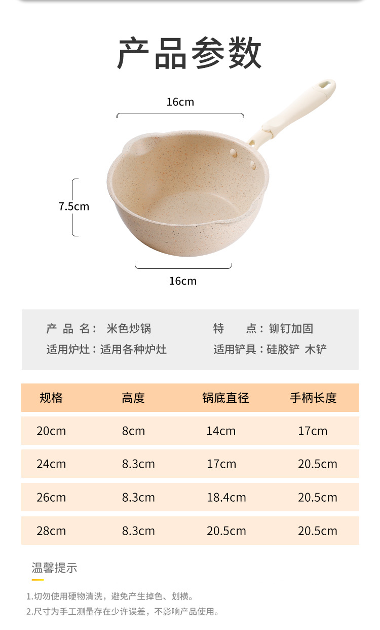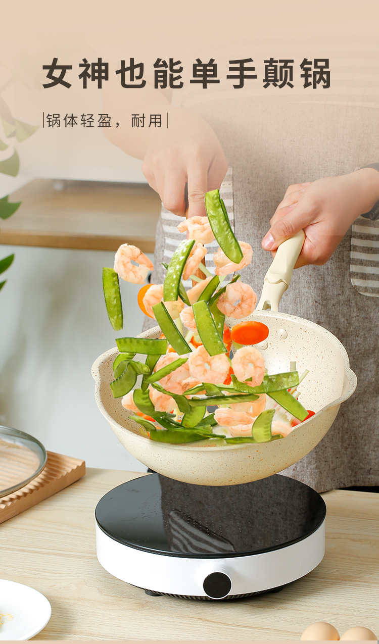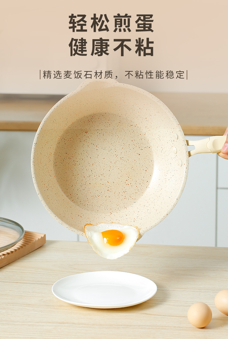 日式一人食小炒锅麦饭石小型不粘锅炒锅家用煎炒菜平底燃气灶适用