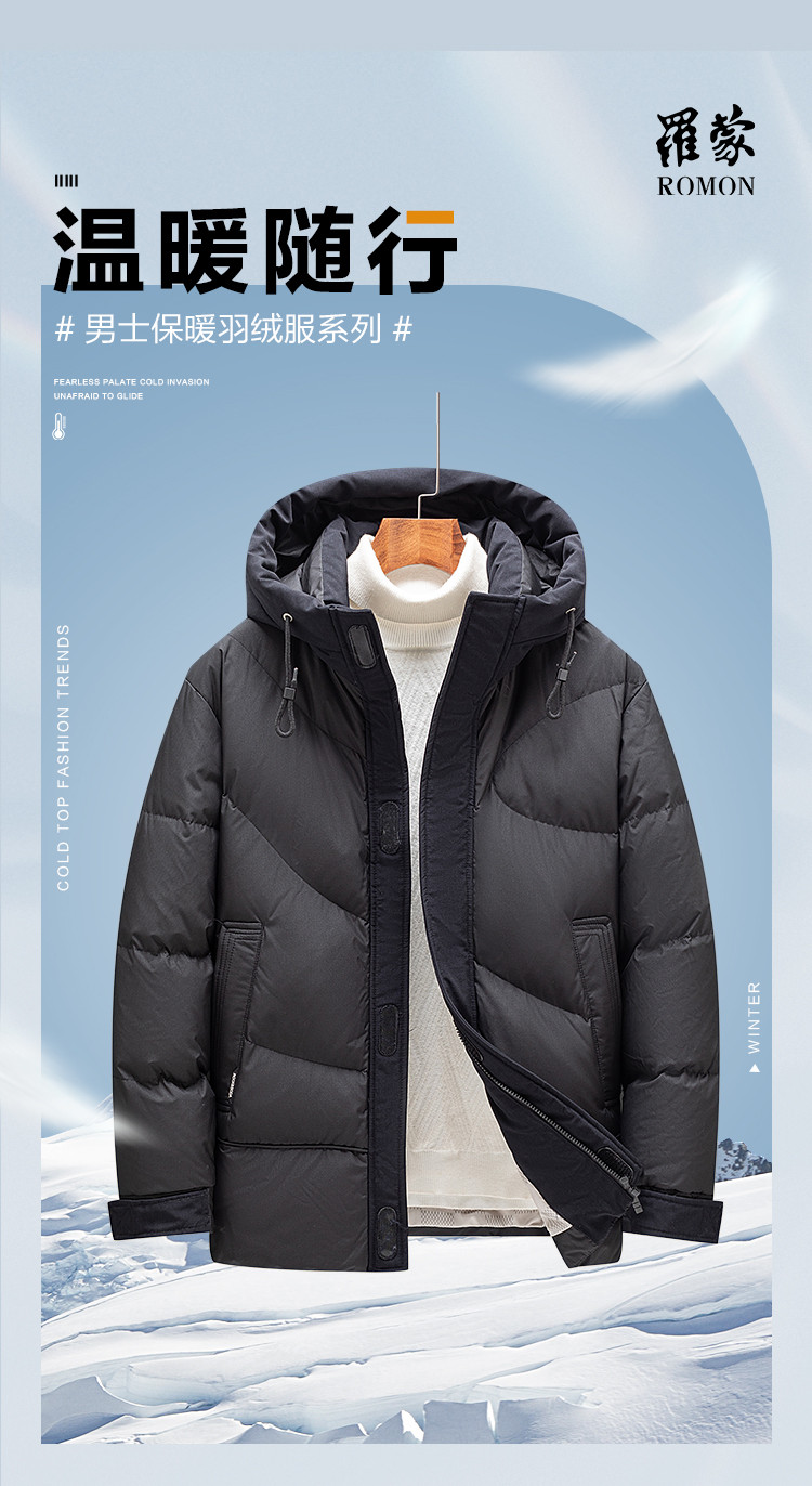 【面包服】罗蒙秋冬连帽羽绒服男短款男士羽绒服外套男工装夹克男羽绒服